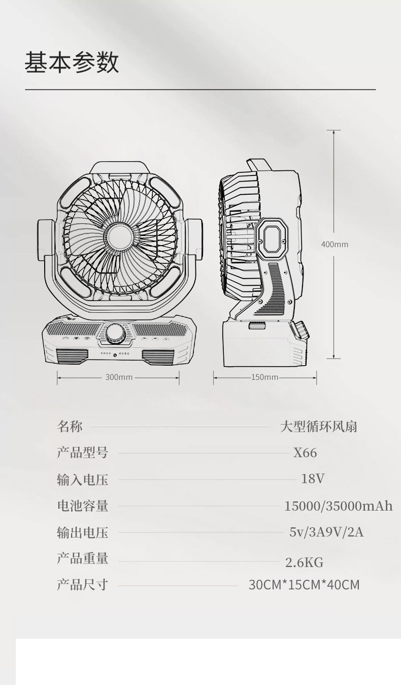 새로운 12 인치 초장 사이클 30,000 mA 360 도 회전 대형 사이클 팬 가정용 원격 제어 팬스토어 가기