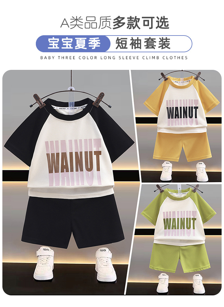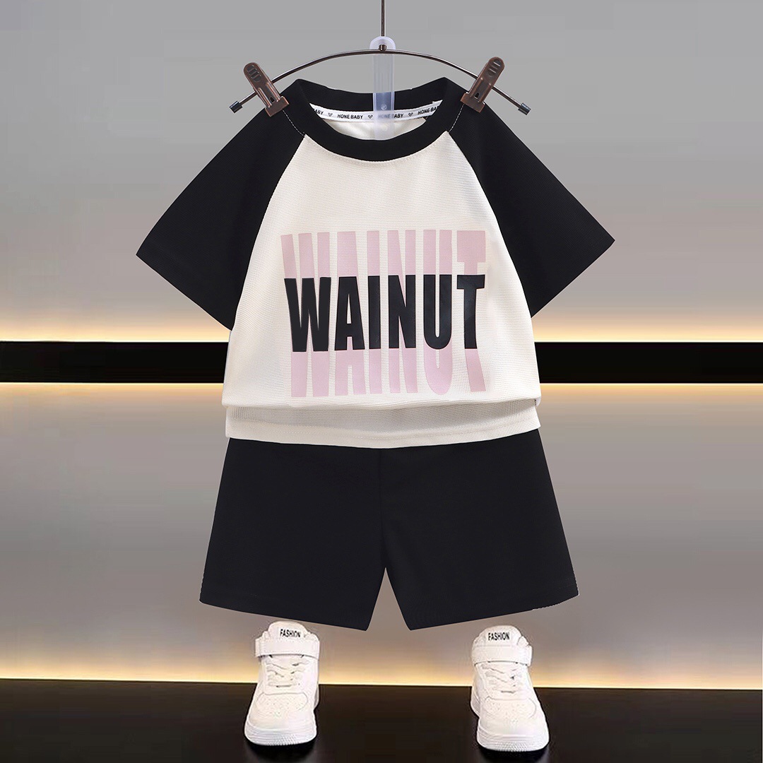 뉴 보이즈 티셔츠 세트 여름 바느질 반바지 투피스 크루넥 보이즈 캐주얼 한국식 트렌디 아동복