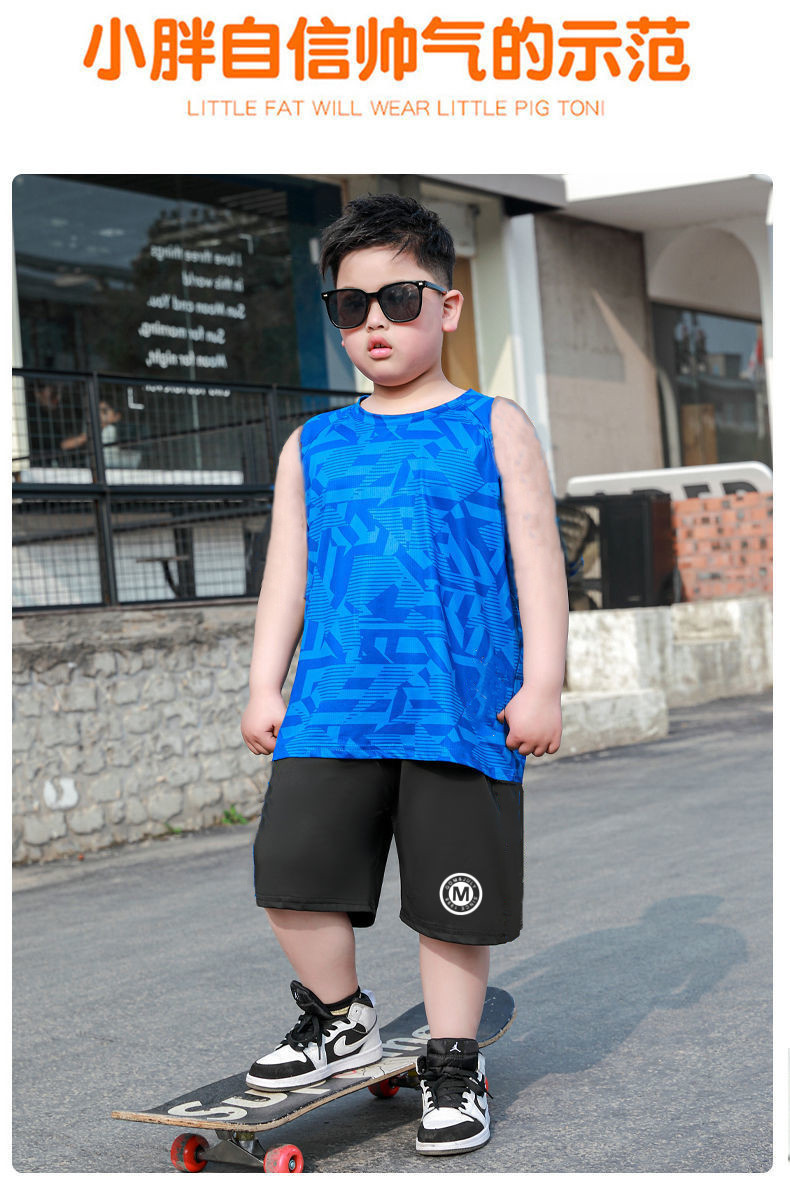 국경 간 아동복 뚱뚱한 소년 농구 세트 여름 착용 플러스 뚱뚱한 플러스 대형 소년 빠른 건조 조끼 소년 스포츠웨어