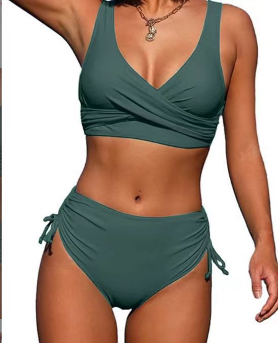 수영복 분할 비키니 단색 크로스 스트랩 아마존 높은 허리 수영복 유럽과 미국의 대외 무역 섹시한 비키