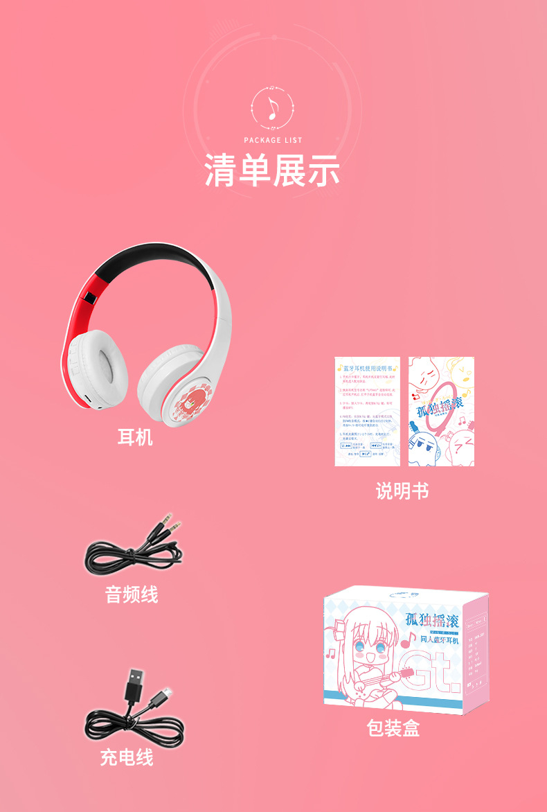 2 차원 외로운 록 애니메이션 주변 실제 무선 블루투스 헤드셋 Xiduo Yudai 헤드 장착 유선 카드스토어 가기