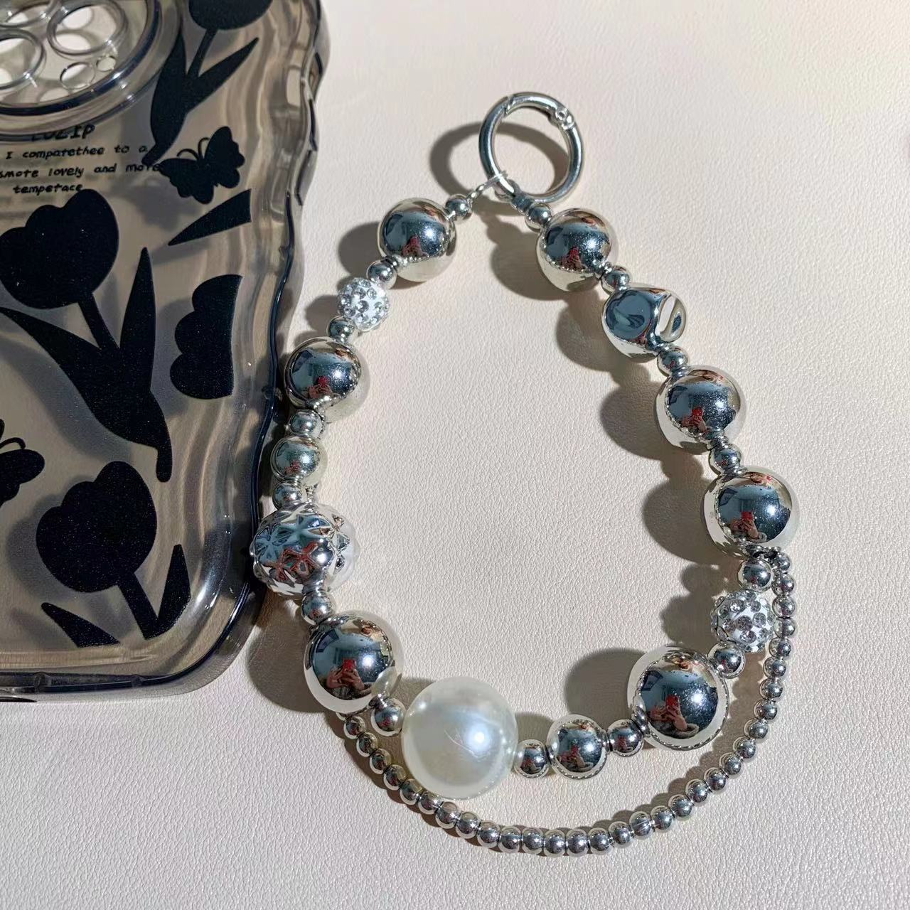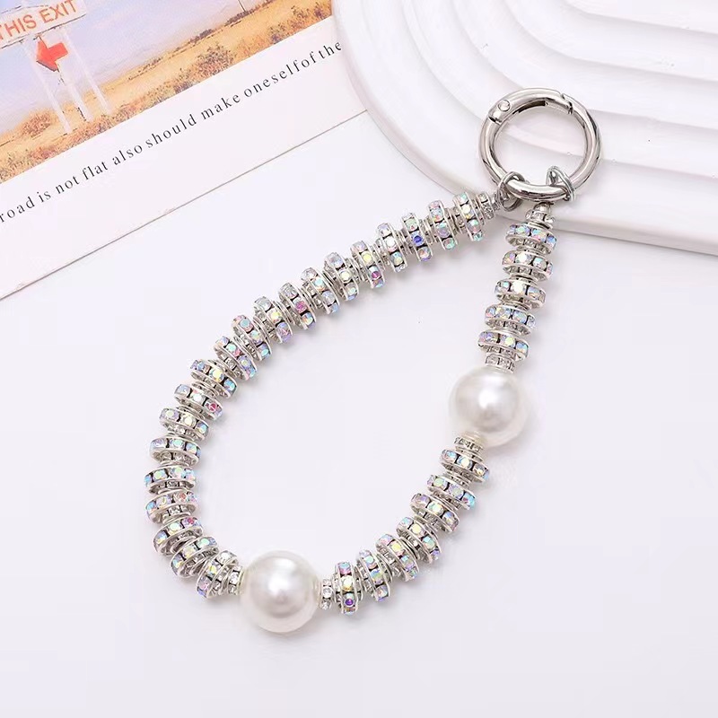 하이 엔드 패션 성격 창조적 인 더블 비즈 라인 스톤 핸드 체인 손목 밴드 짧은 끈 모조 다이아몬드 휴대 전화 끈