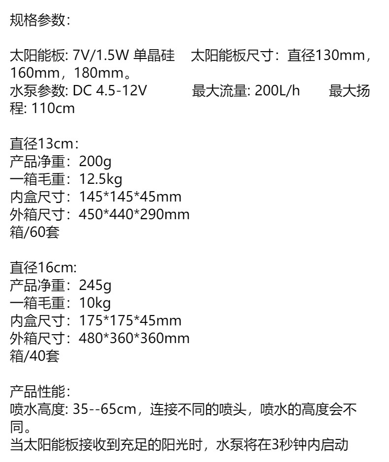 국경 간 태양 분수 수영장 정원 물 분수 야외 조류 목욕 안뜰 분수 떠 다니는 분수 제조 업체스토어 가기