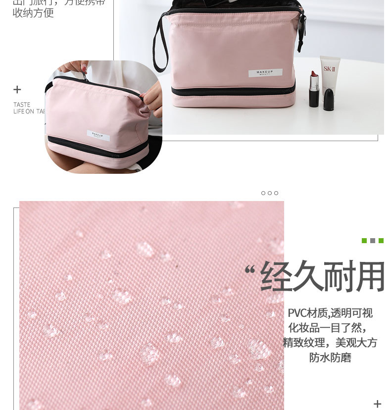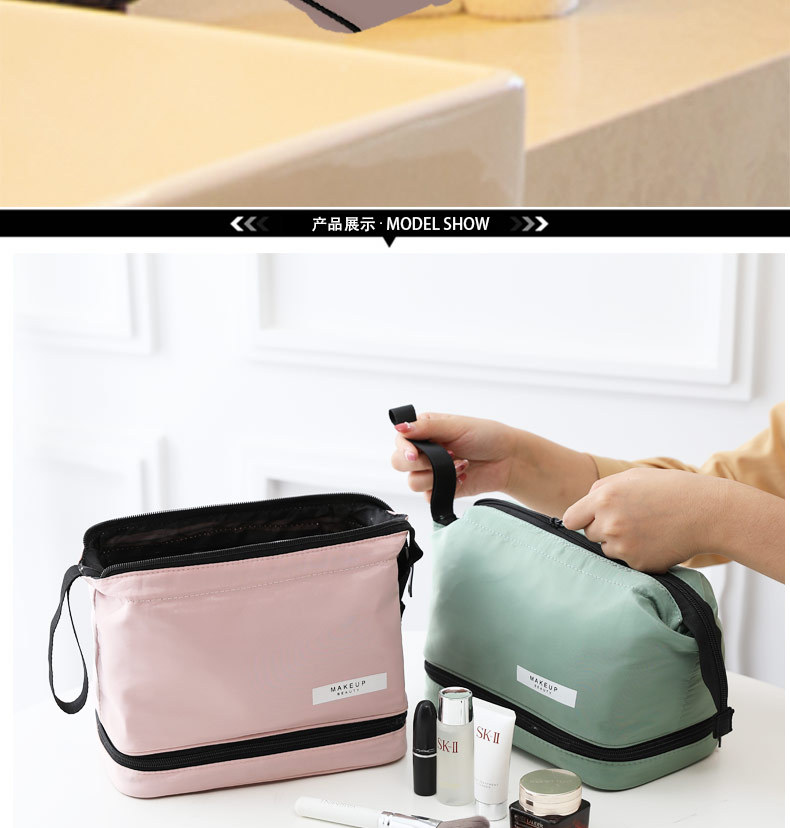 여행 더블 레이어 휴대용 화장품 가방 건조하고 젖은 분리 남성 세면 용품 화장품 보관 가방 여성