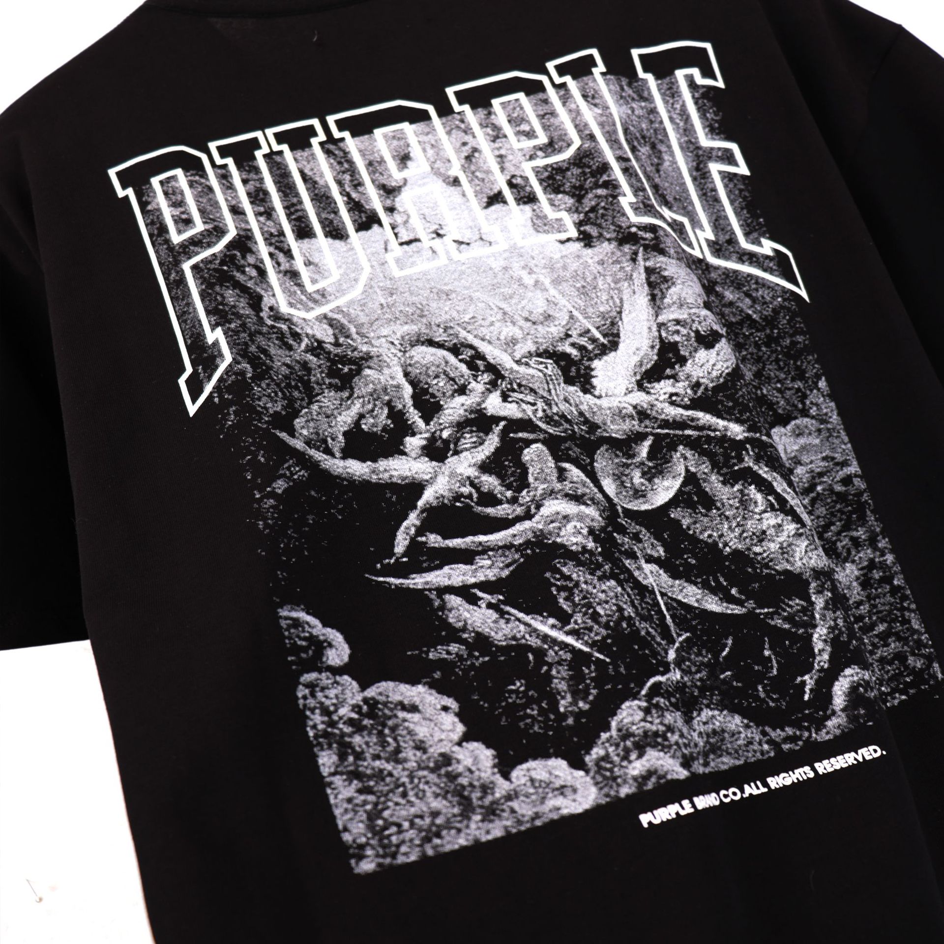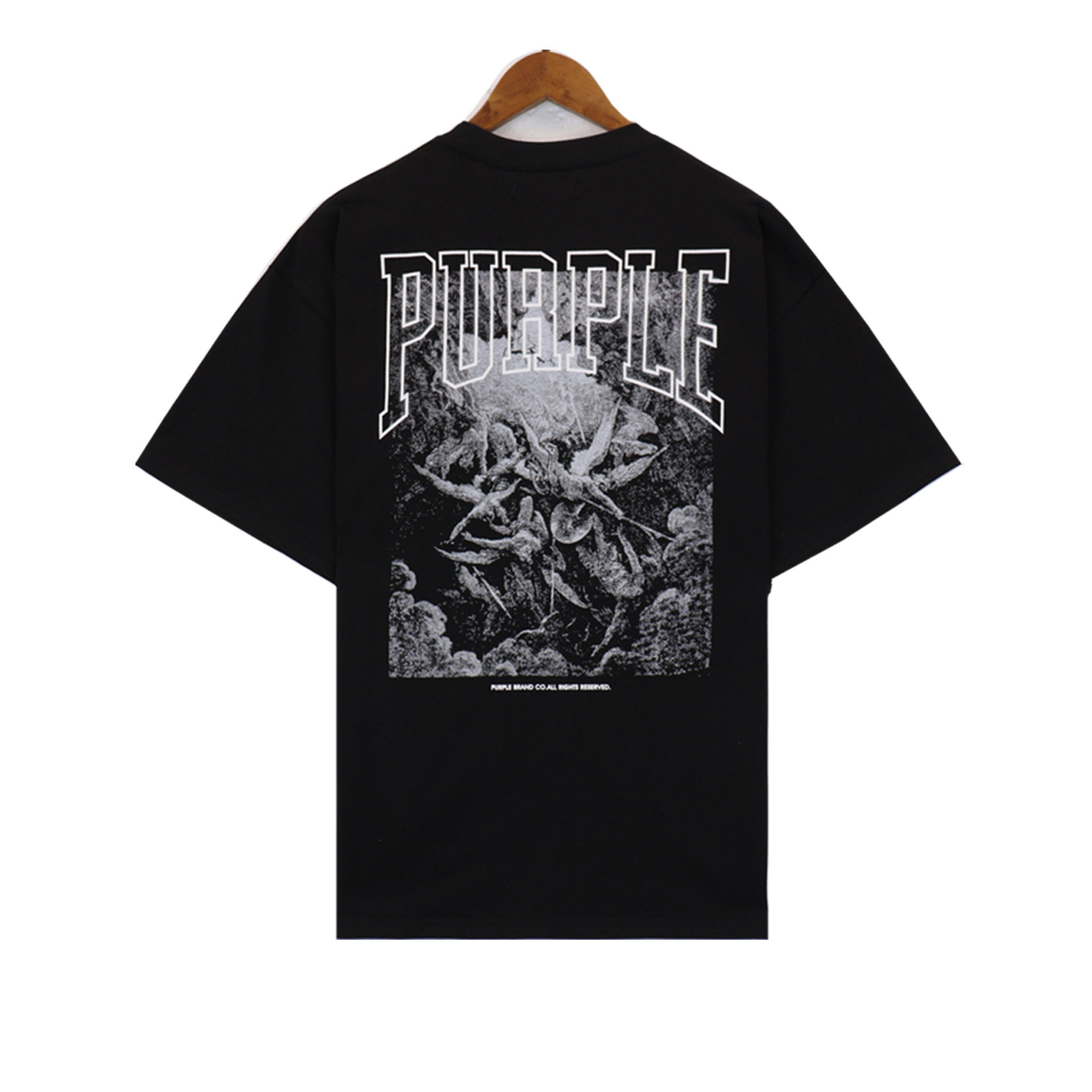 2024 여름 새로운 보라색 빈티지 유행 만화 인쇄 큰 크기 순수한 면 무거운 느슨한 지방 가이 베이스 Re