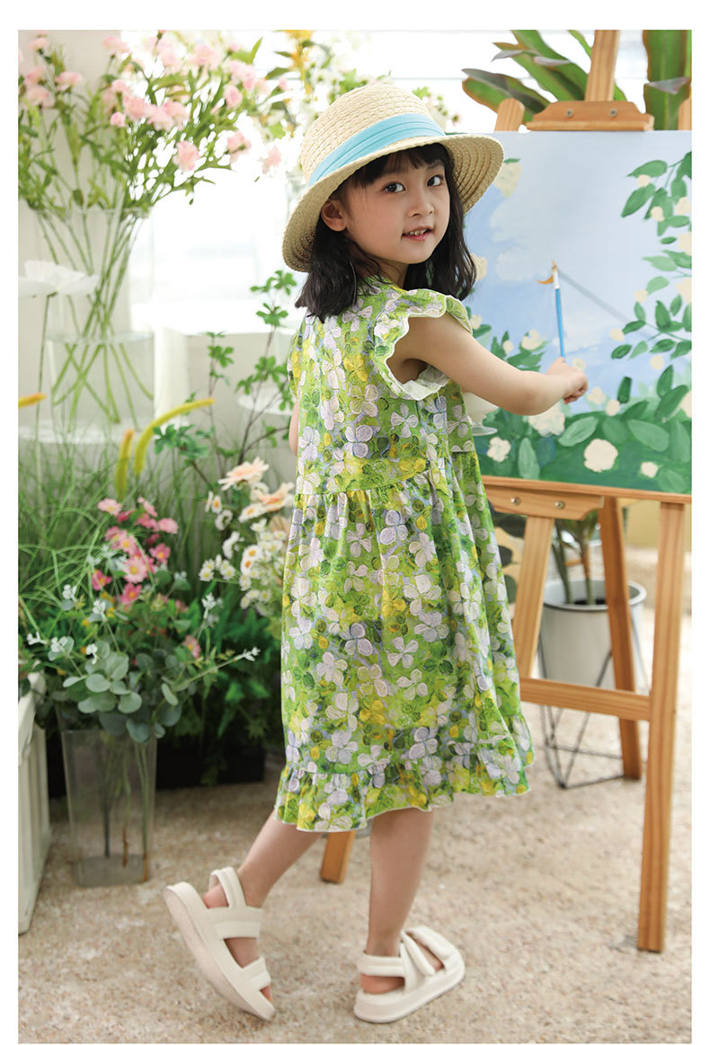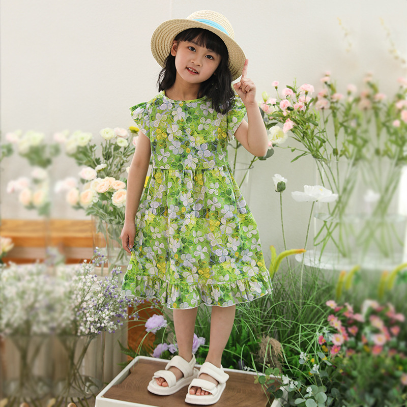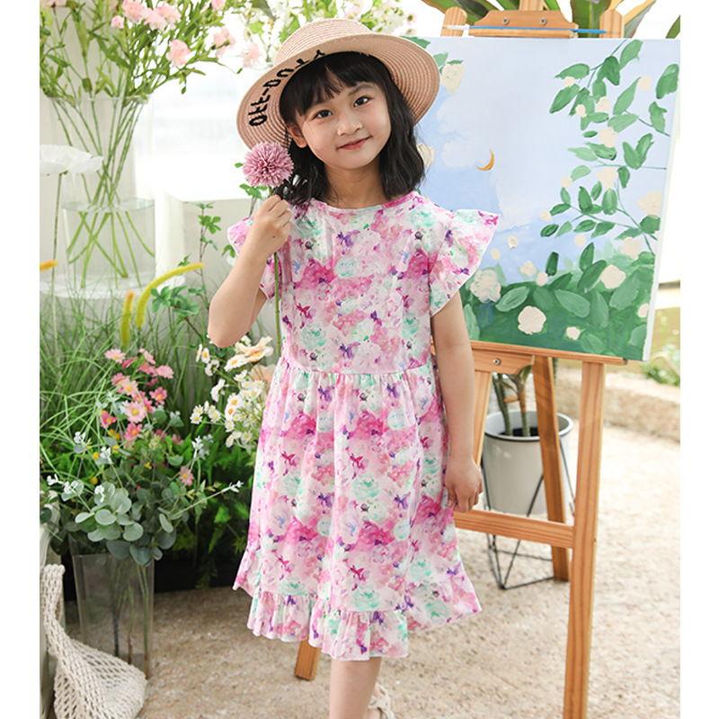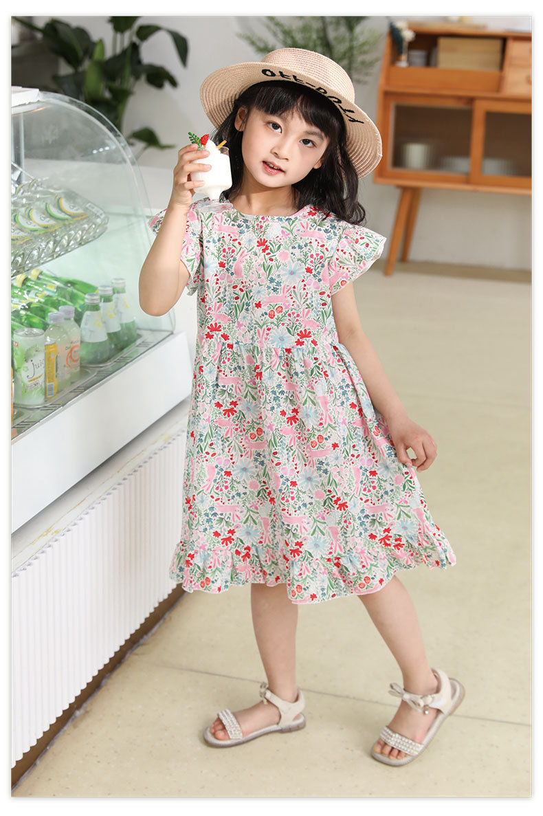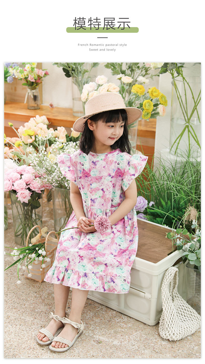여름 달콤한 중소형 어린이 소녀 아동복 만화 인쇄면 A 라인 스커트 원피스 어린이 원피스 머리카락 세대스토어 가기
