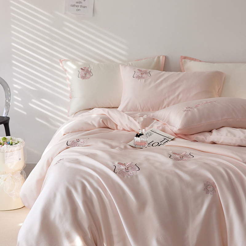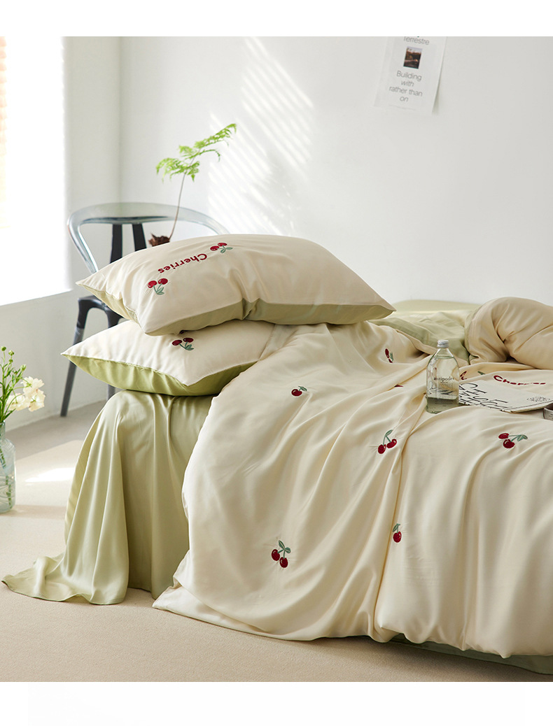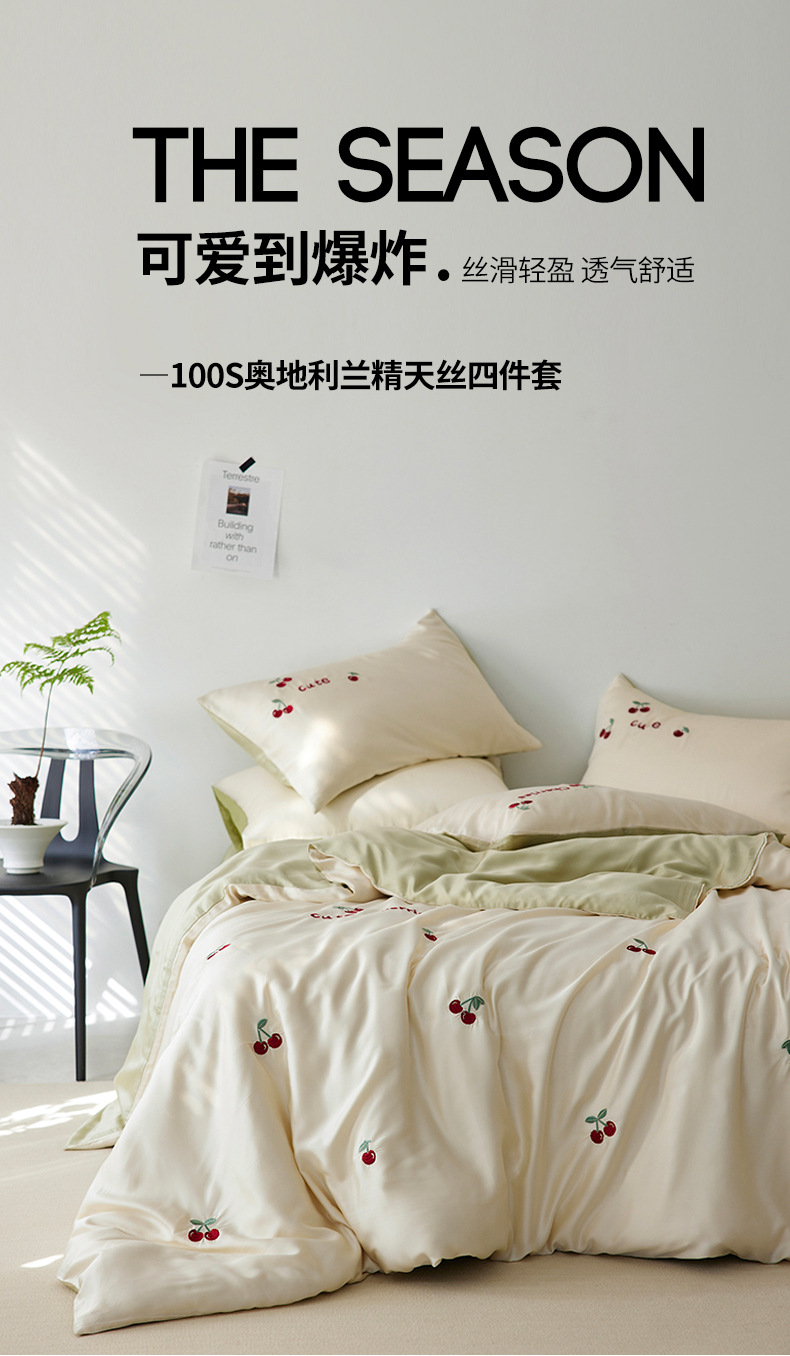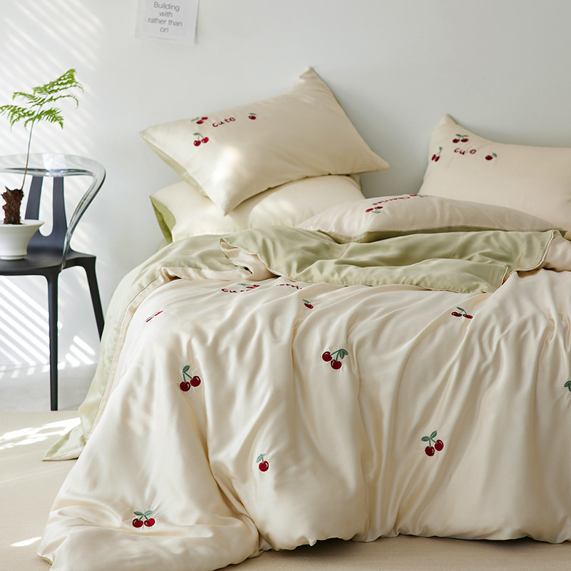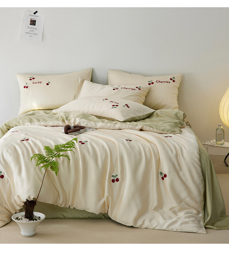 클래스 A 100 Lanjing Tencel 4 피스 세트 여름 아이스 실크 퀼트 커버 침대 시트 모자 하이 엔드 Silky 슬리핑 알몸 침실스토어 가기