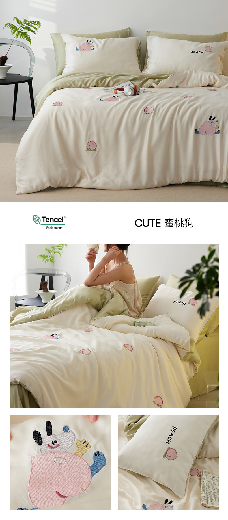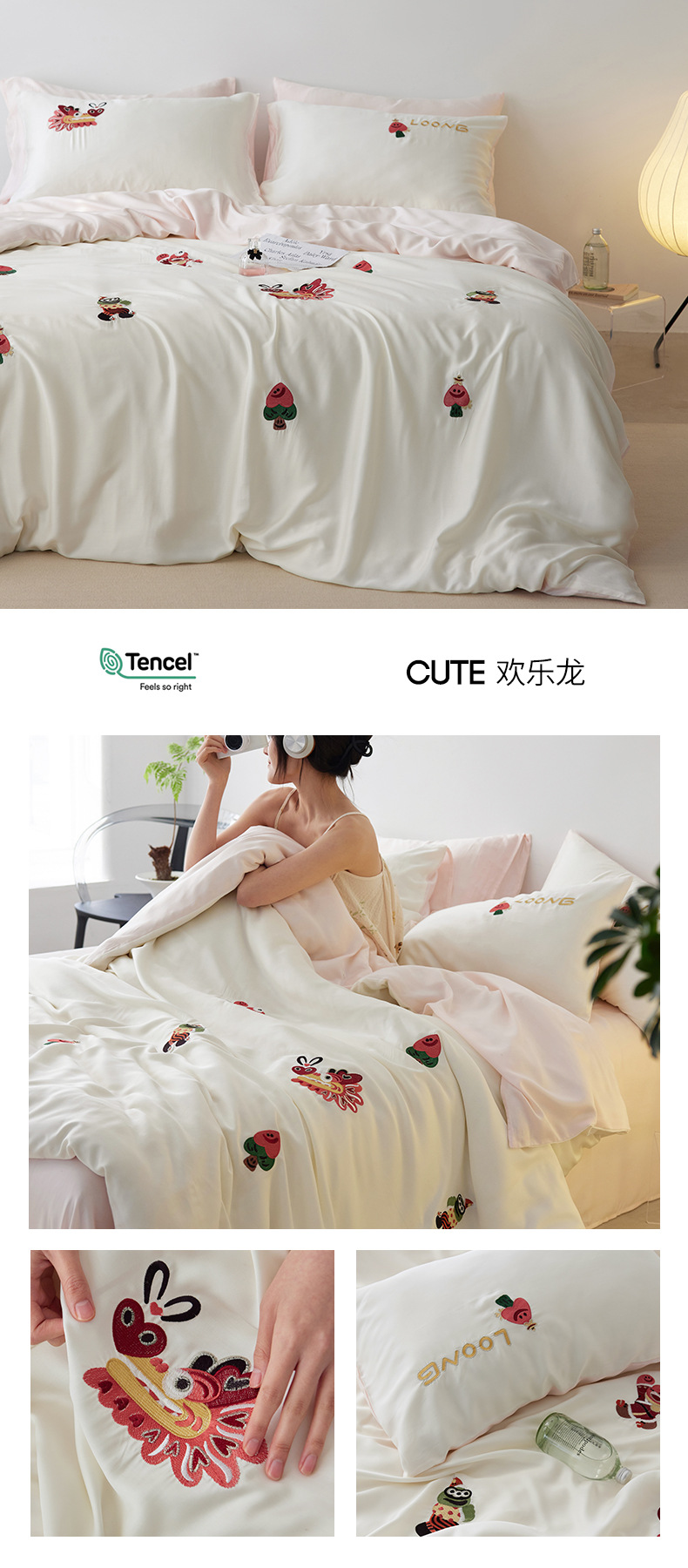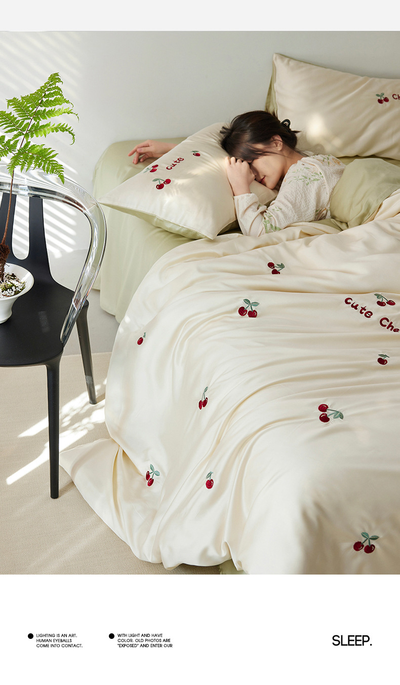 클래스 A 100 Lanjing Tencel 4 피스 세트 여름 아이스 실크 퀼트 커버 침대 시트 모자 하이 엔드 Silky 슬리핑 알몸 침실스토어 가기