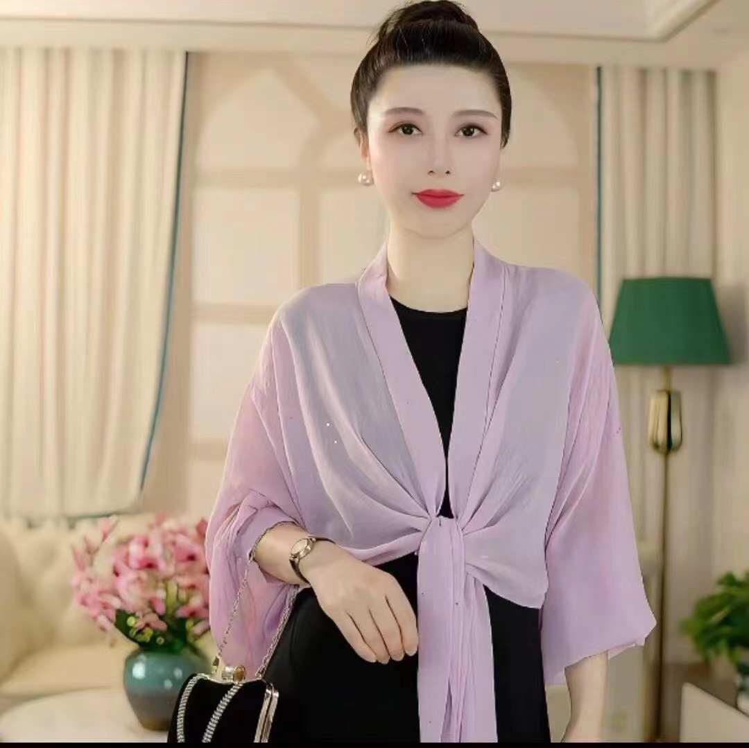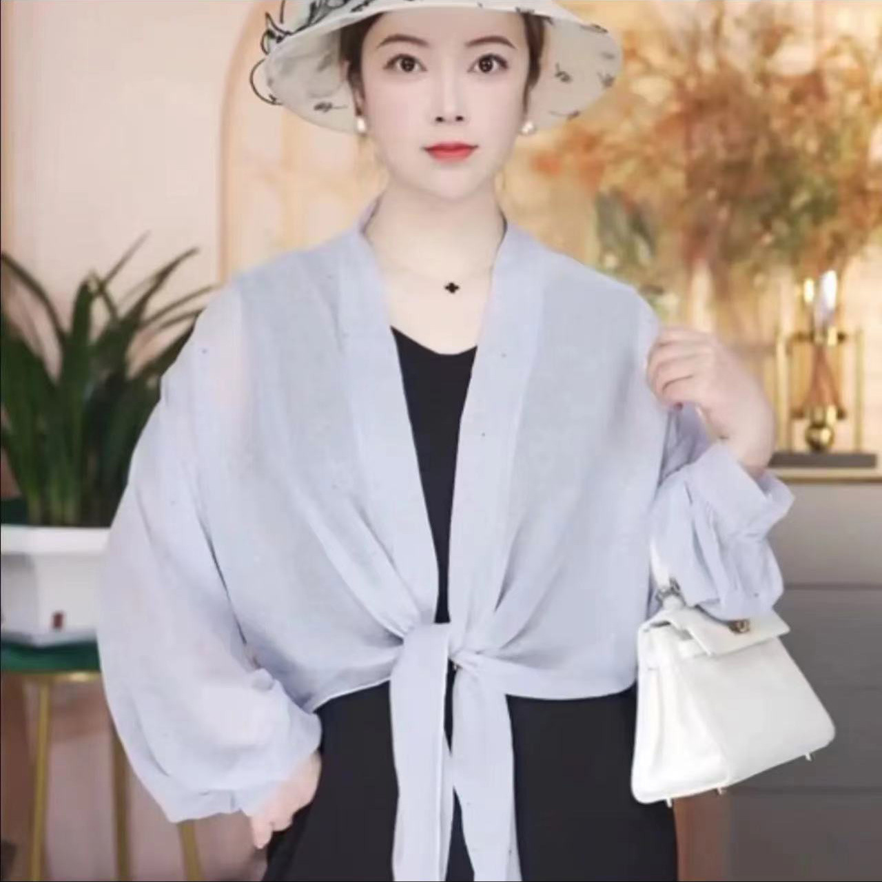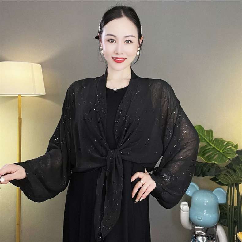 [스타 숄] 스팽글 쉬폰 와이드 소매 선 스크린 의류 여름 얇은 긴 소매 선 스크린 목도리 패션 올 매치스토어 가기