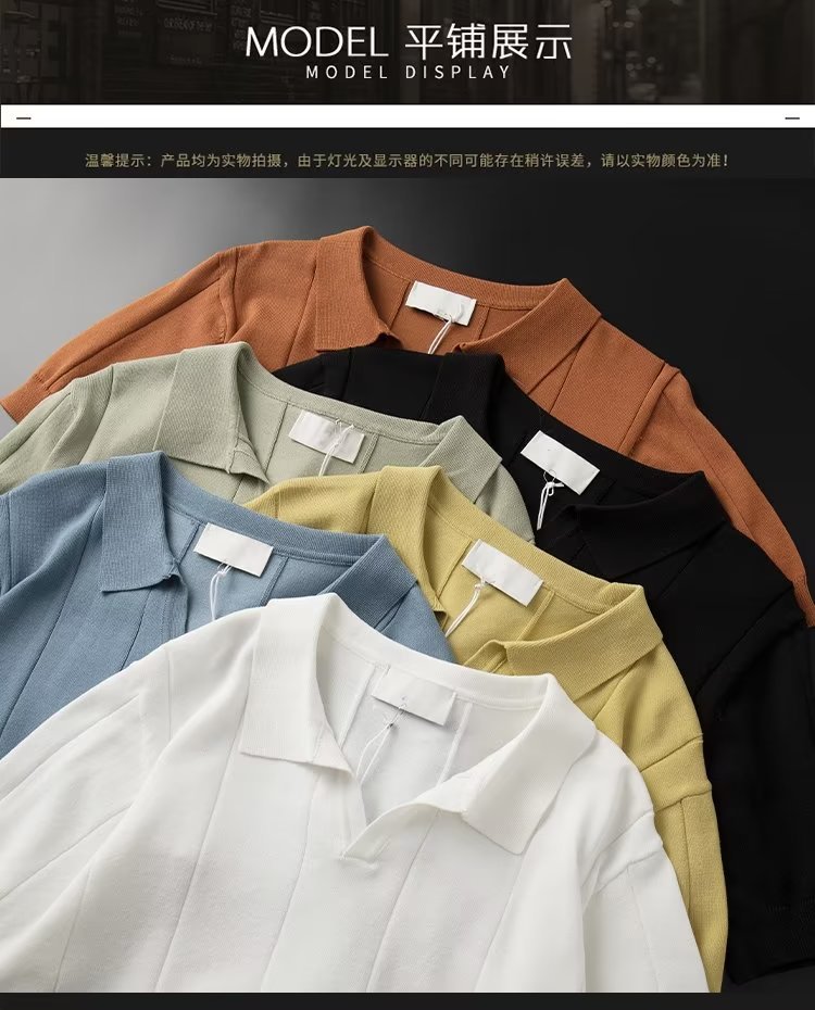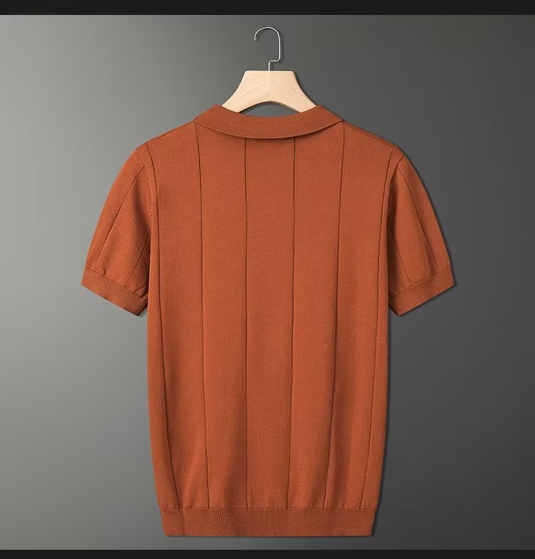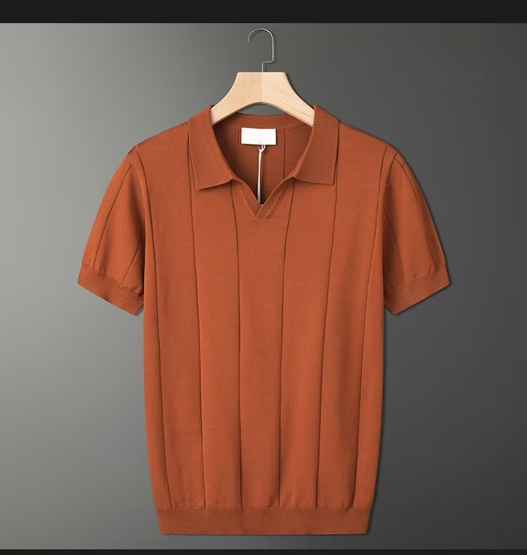 가벼운 성숙한 스타일 아이스 실크 니트 티셔츠 남자 여름 얇은 통기성 반팔 폴로 셔츠 한국 느슨한 반소매 탑