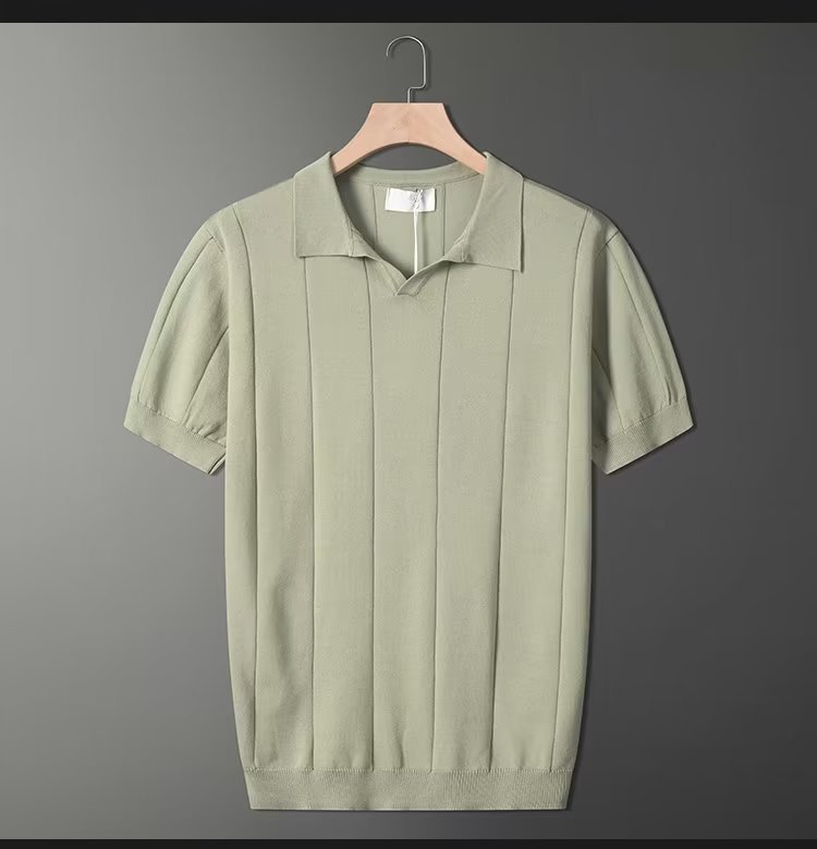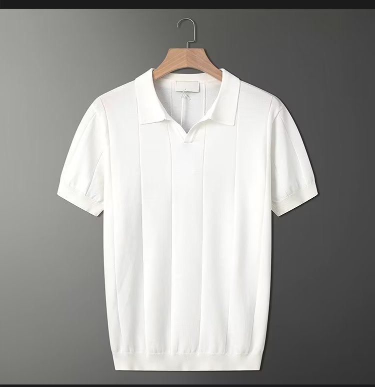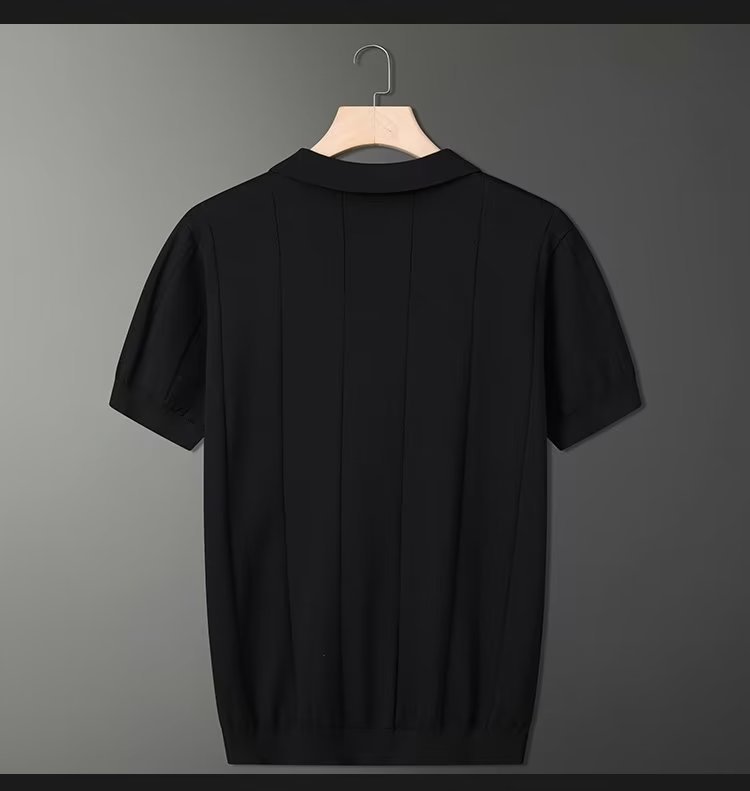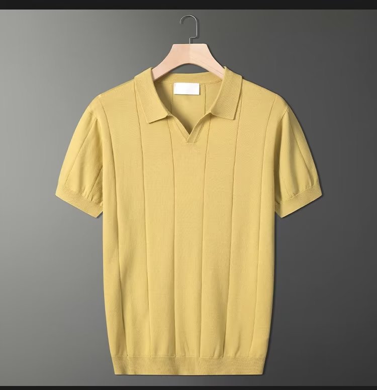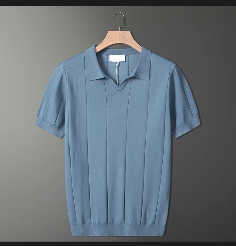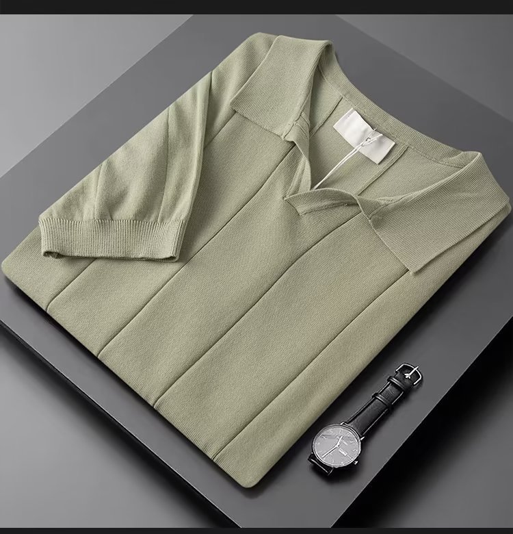 가벼운 성숙한 스타일 아이스 실크 니트 티셔츠 남자 여름 얇은 통기성 반팔 폴로 셔츠 한국 느슨한 반소매 탑스토어 가기