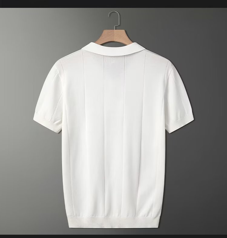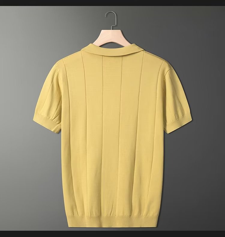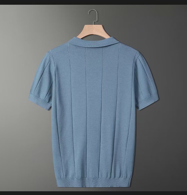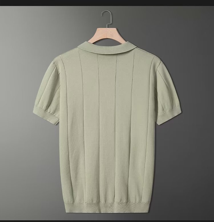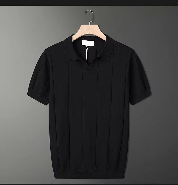 가벼운 성숙한 스타일 아이스 실크 니트 티셔츠 남자 여름 얇은 통기성 반팔 폴로 셔츠 한국 느슨한 반소매 탑스토어 가기