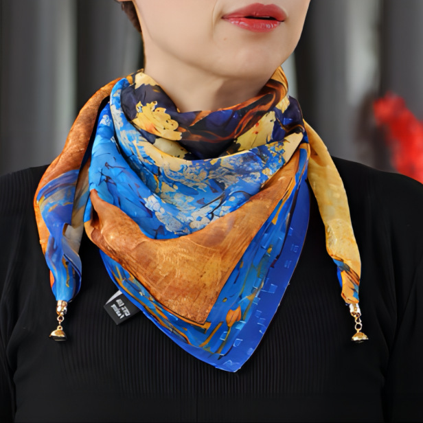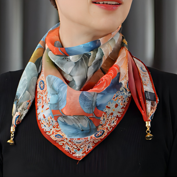 [컷 꽃 유약 원사 마그네틱 버튼 삼각형 스카프] 다기능 자기 버튼 조커 스카프 새로운 선 스크린 목 보호 새로운 스타일