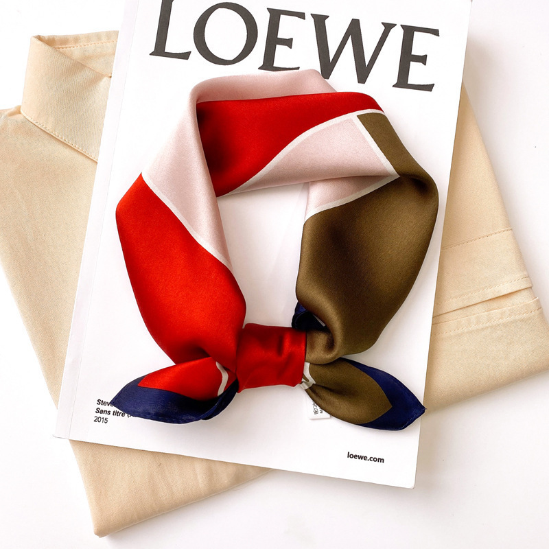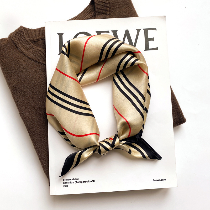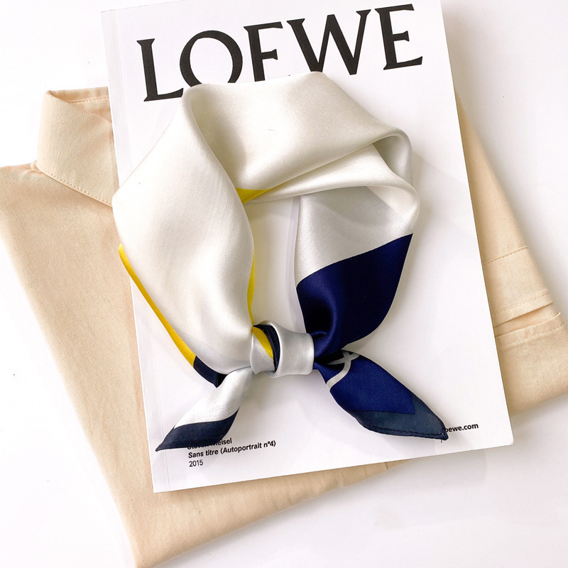 실크 스카프 가을 새로운 뽕나무 실크 작은 광장 스카프 한국 패션 여성 해바라기 빈티지 스카프