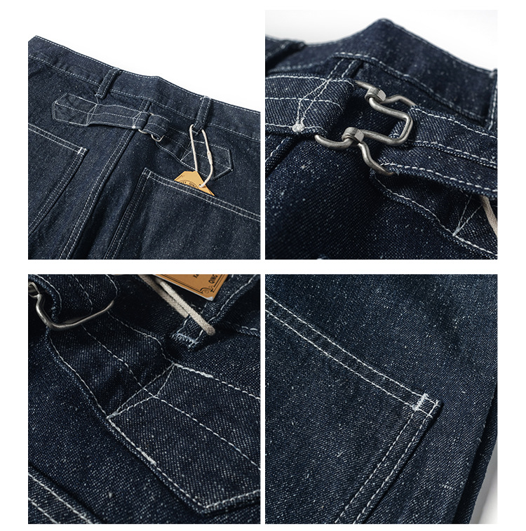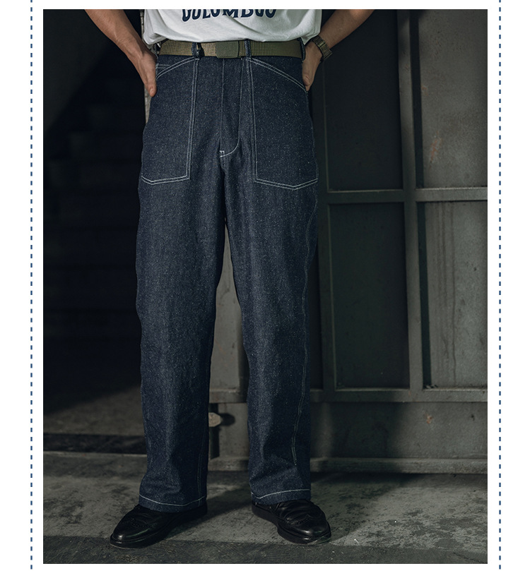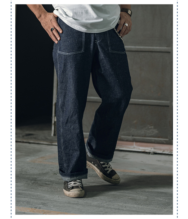 Qing Tian, 아메리칸 스타일 레트로 파리 버클 펄 원사 레드 이어 타닌 Ami Kaji 루즈 스트레이트 청바지 남성 수정