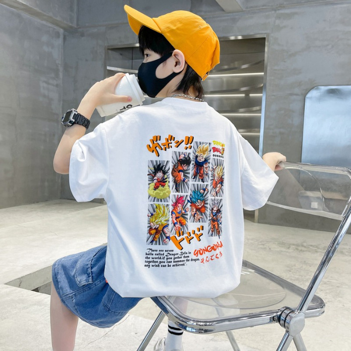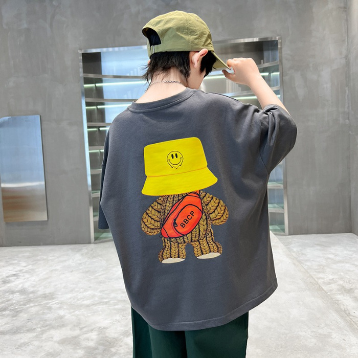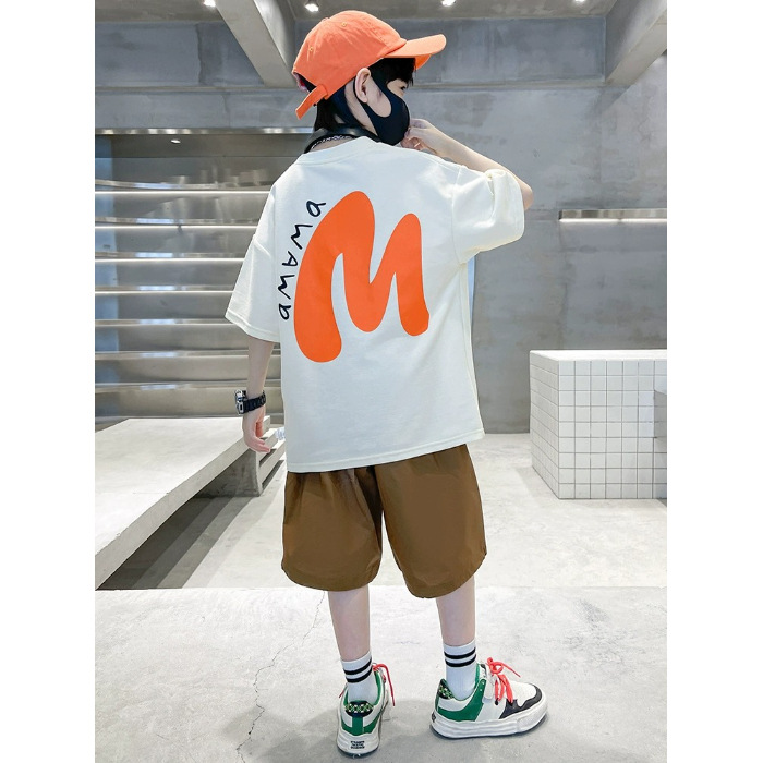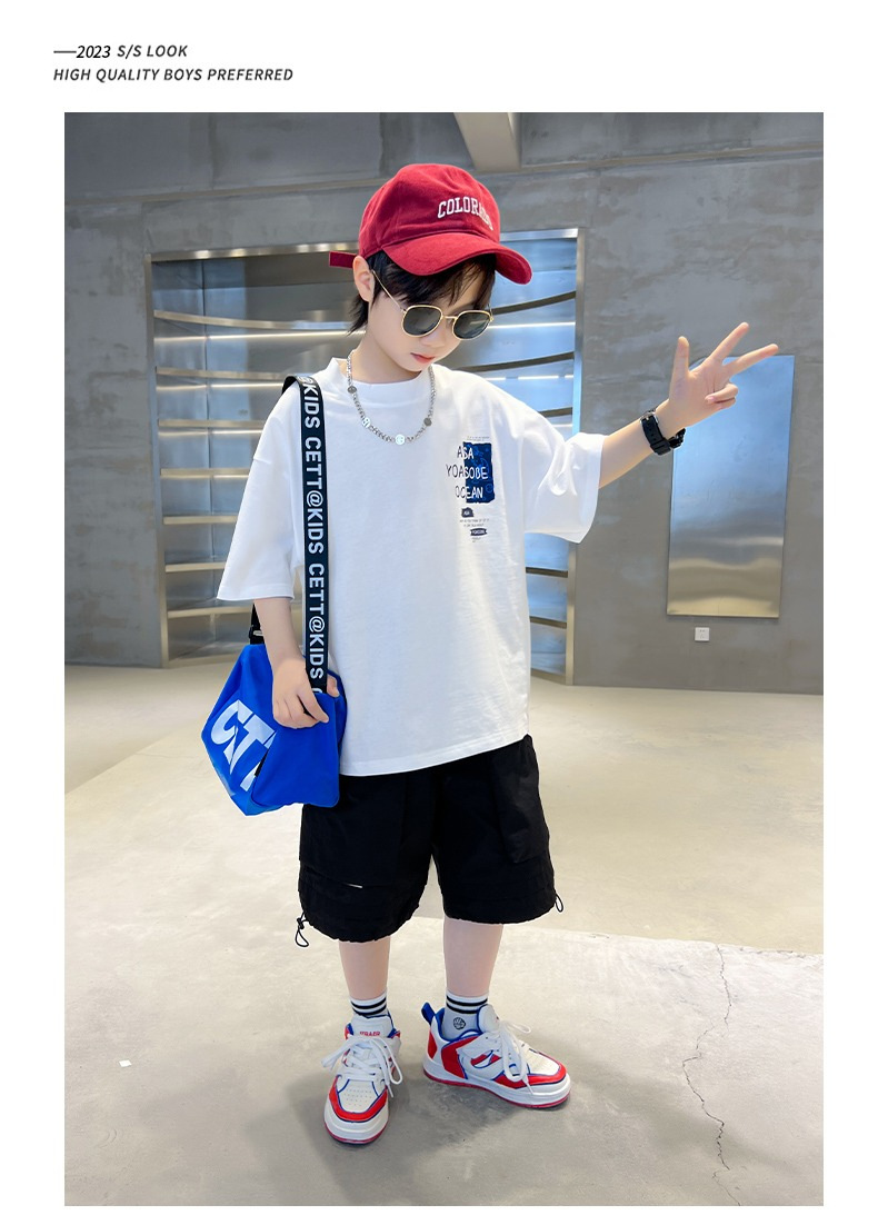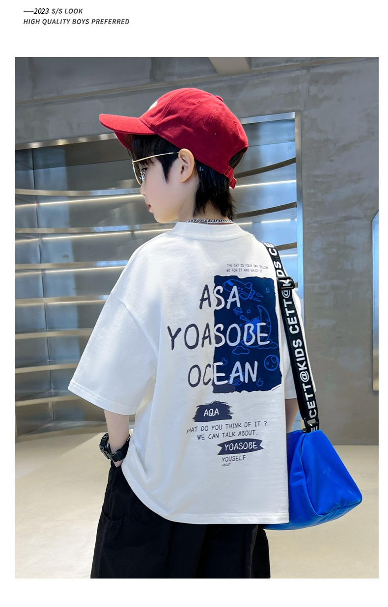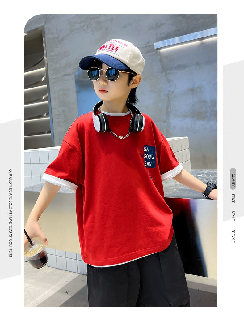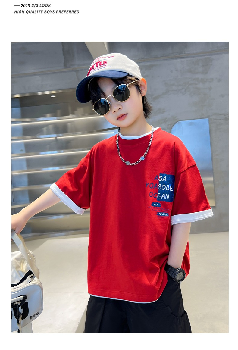 소년 티셔츠 반팔 2025 새로운 여름 초등학생 거리 순수 코튼 레드 반팔 탑 여름 소년 유행 T스토어 가기