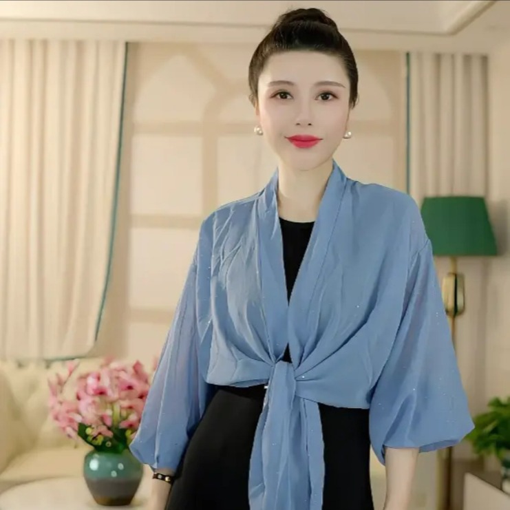 [세퀸 와이드 슬리브] 유행 올매치 기질 한국식 에어컨 태양 보호 여행 비치 태양 보호 목도리