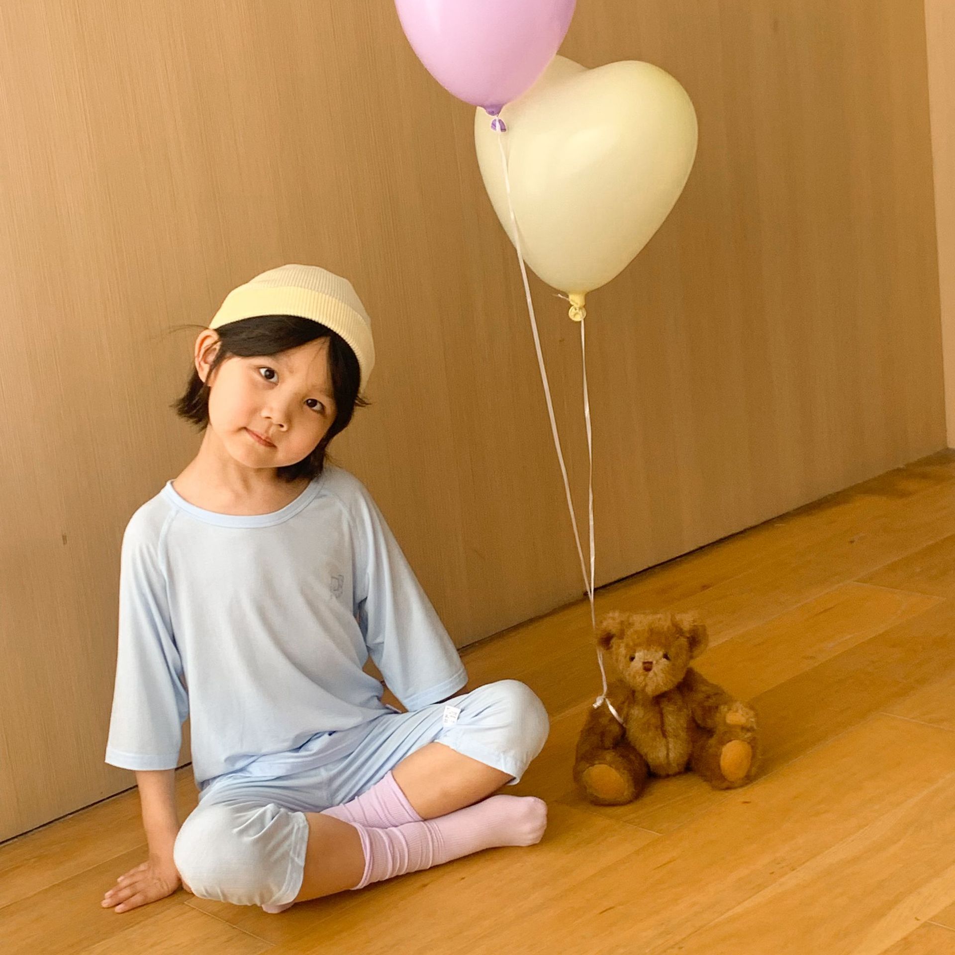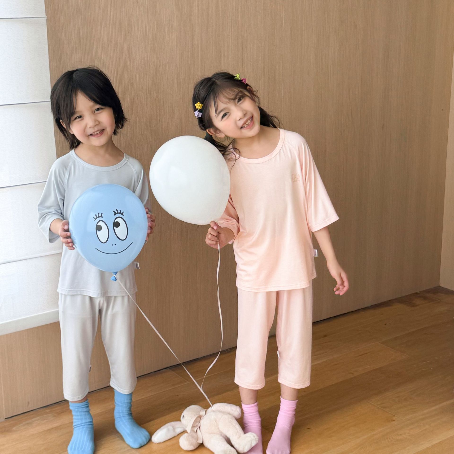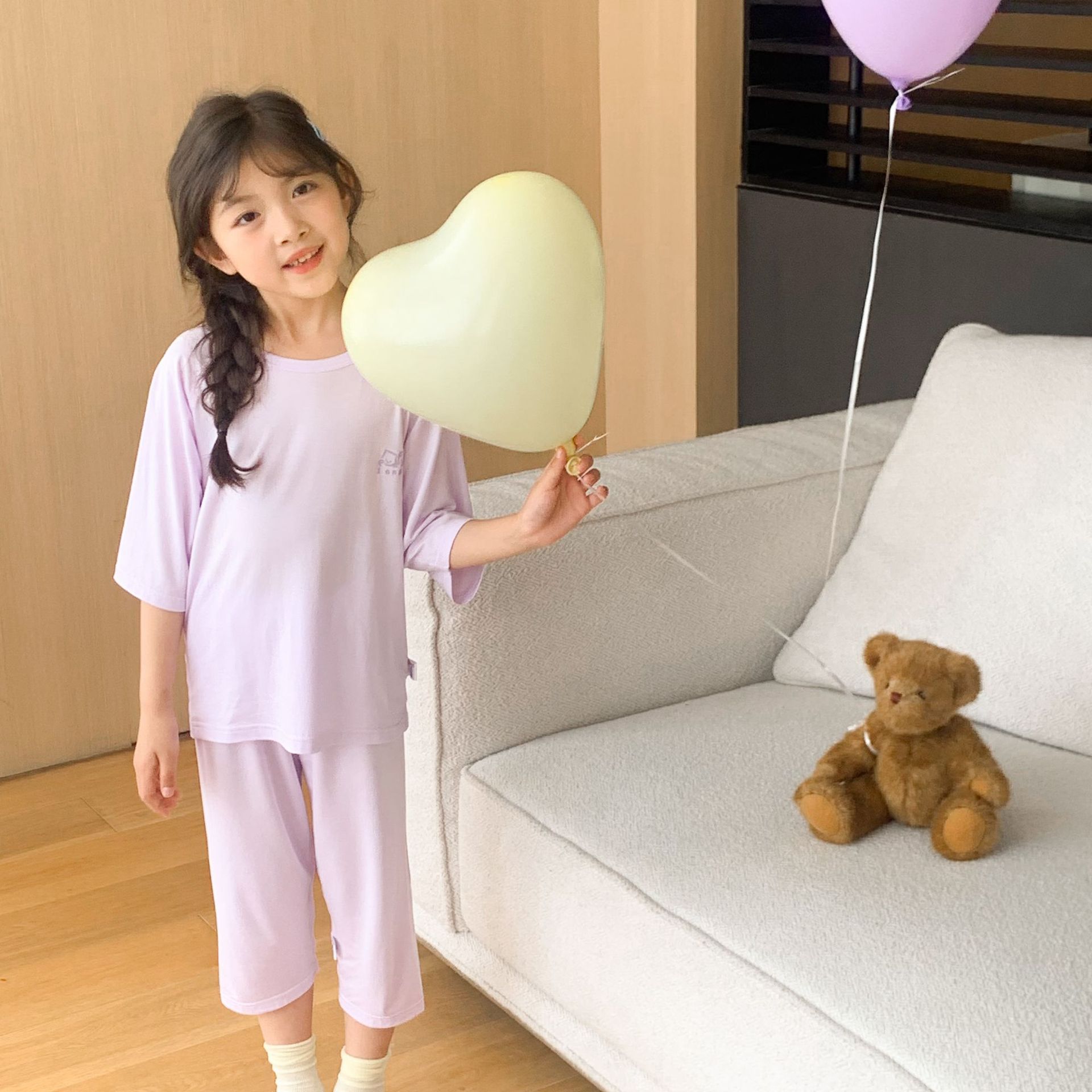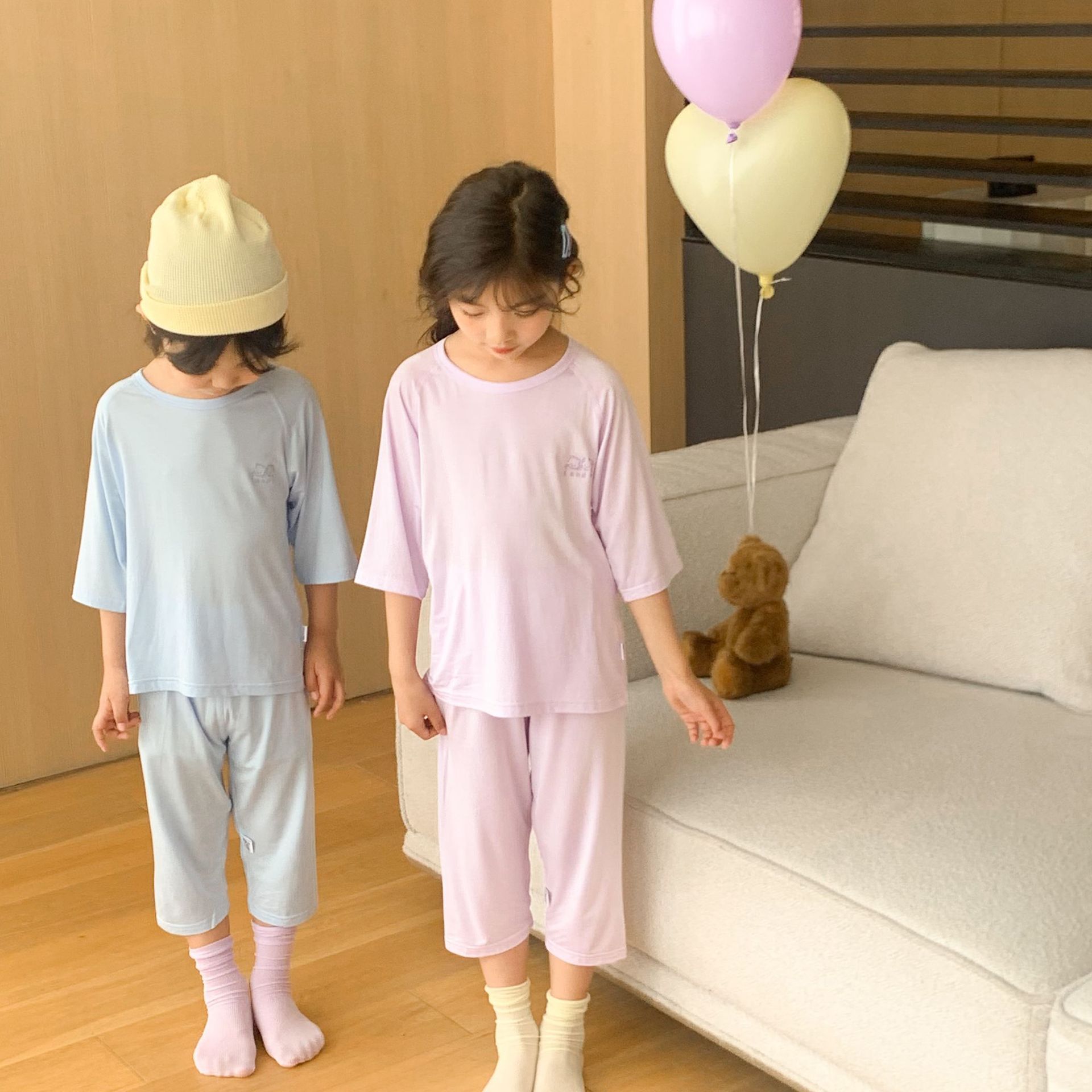 어린이 텐셀 파자마 라글란 슬리브 세트 큰 아이와 소녀 여름 에어컨 세트 남성 보물 여성의 보물없는 홈 옷스토어 가기