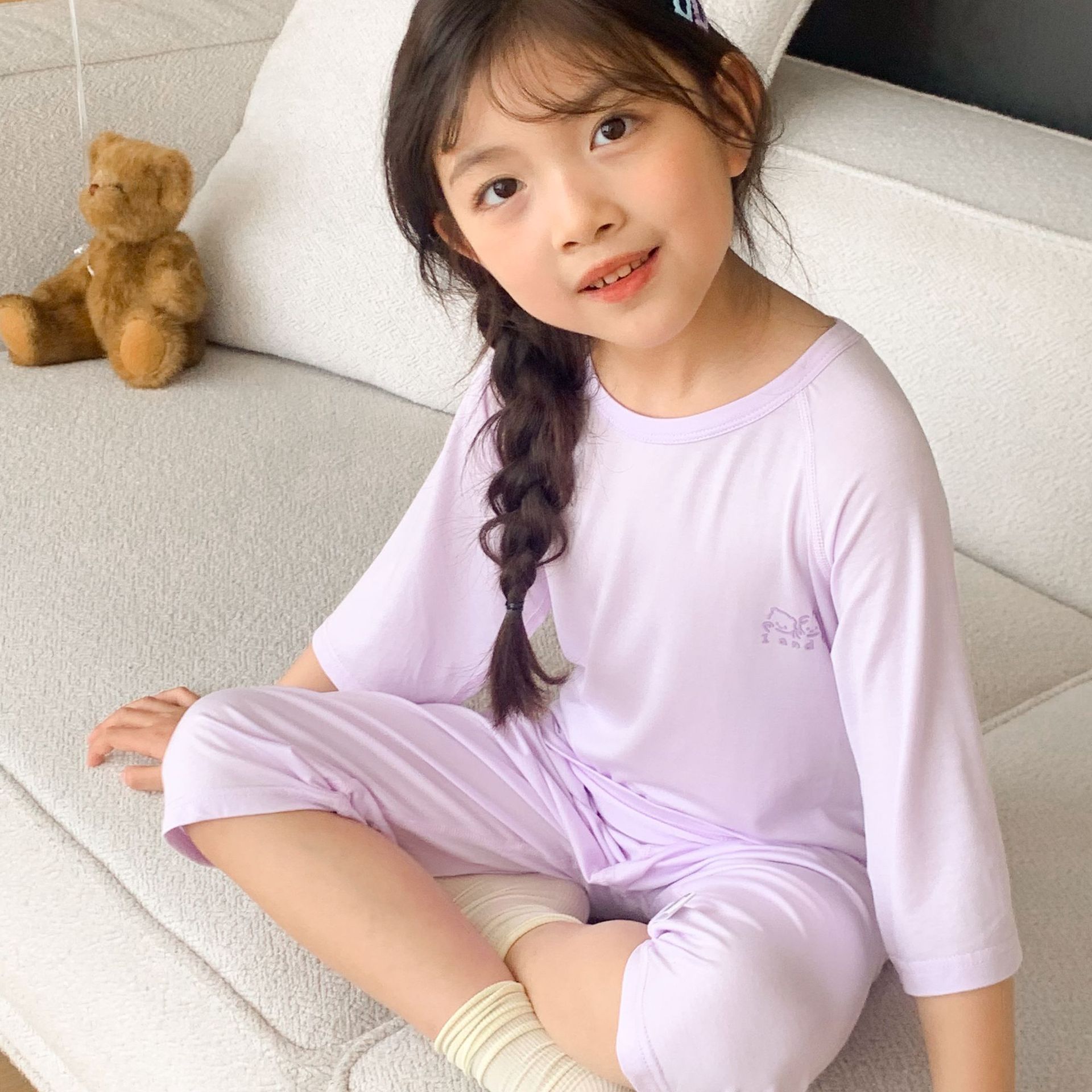 어린이 텐셀 파자마 라글란 슬리브 세트 큰 아이와 소녀 여름 에어컨 세트 남성 보물 여성의 보물없는 홈 옷