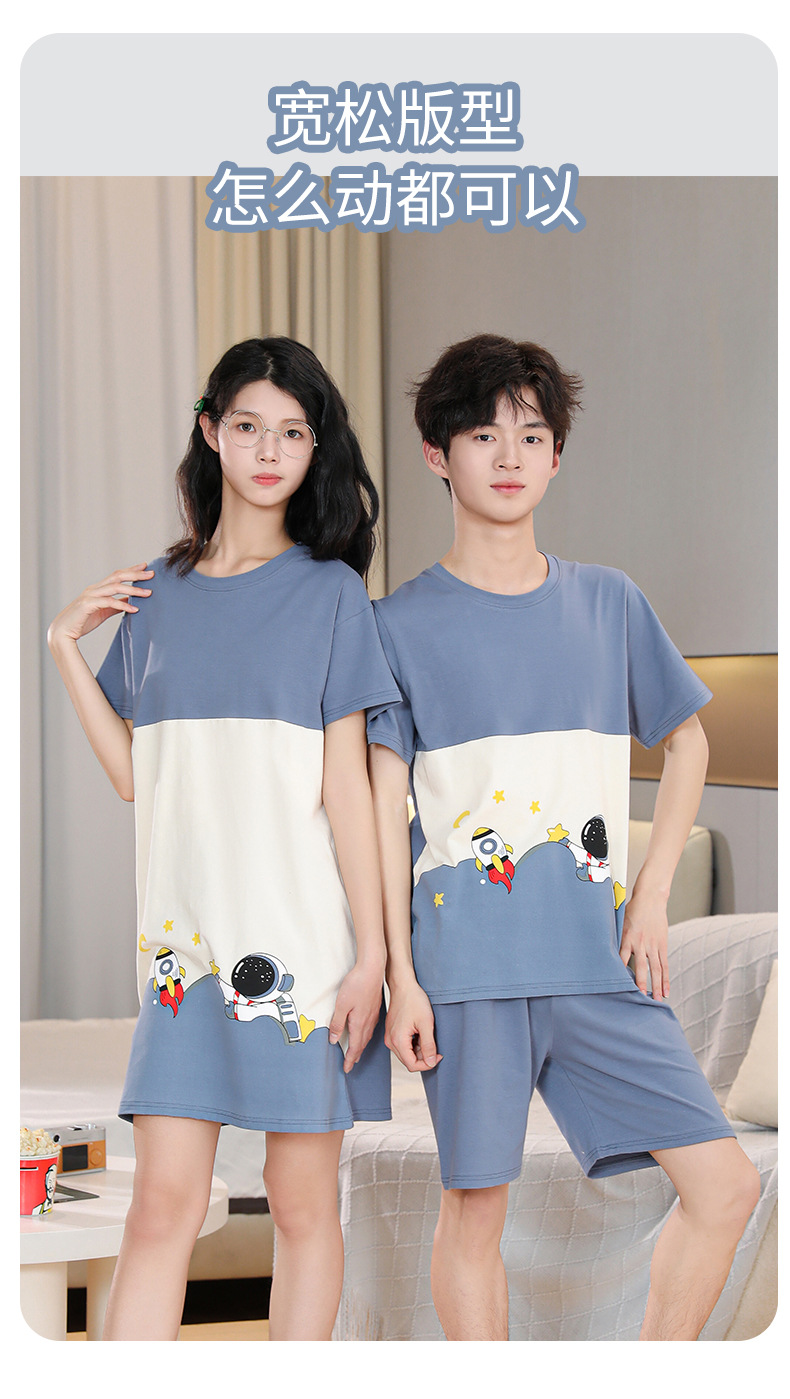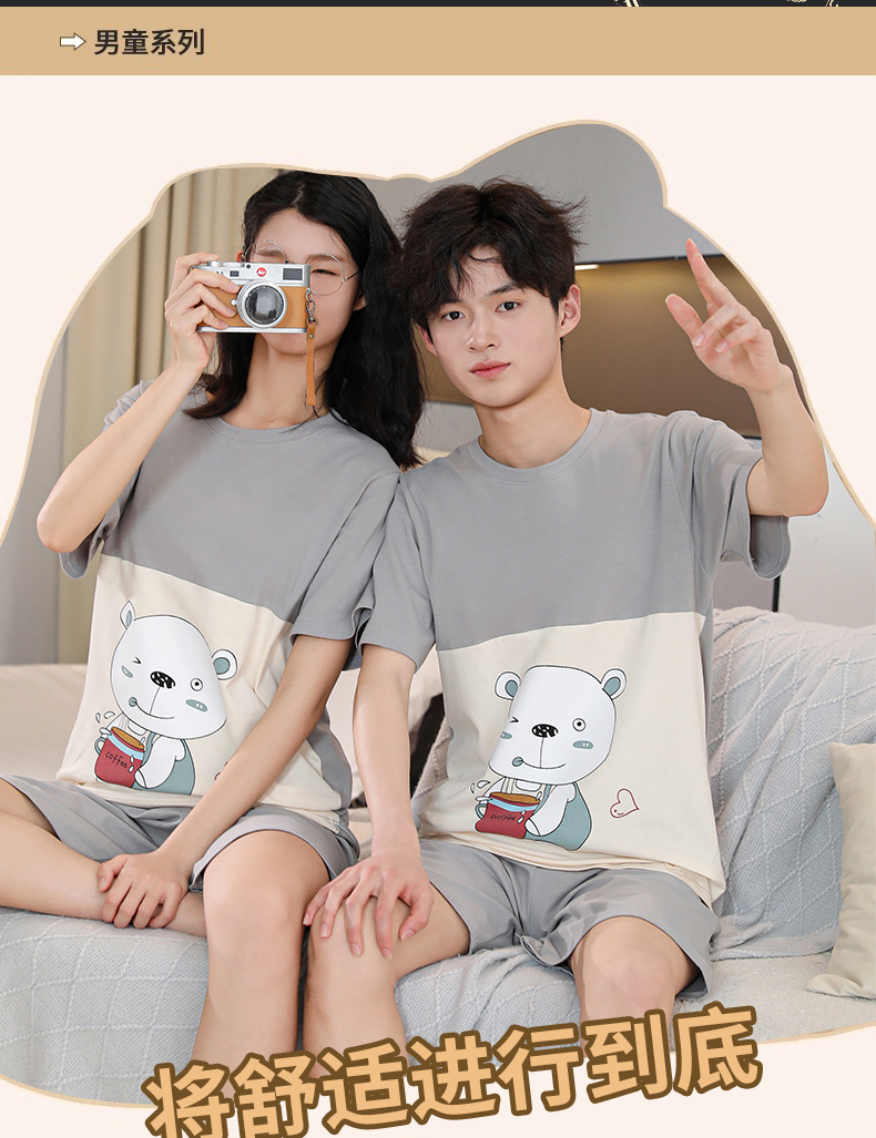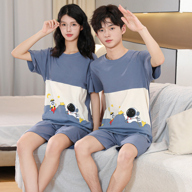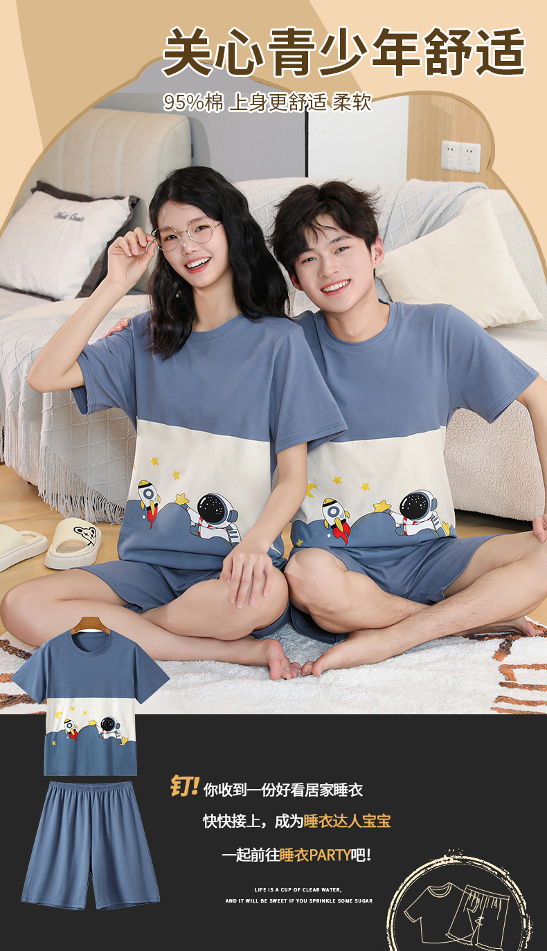 여름 청소년 홈 의류 소년 소녀 반팔 반바지 큰 어린이 잠옷 세트 반팔 원피스 잠옷스토어 가기