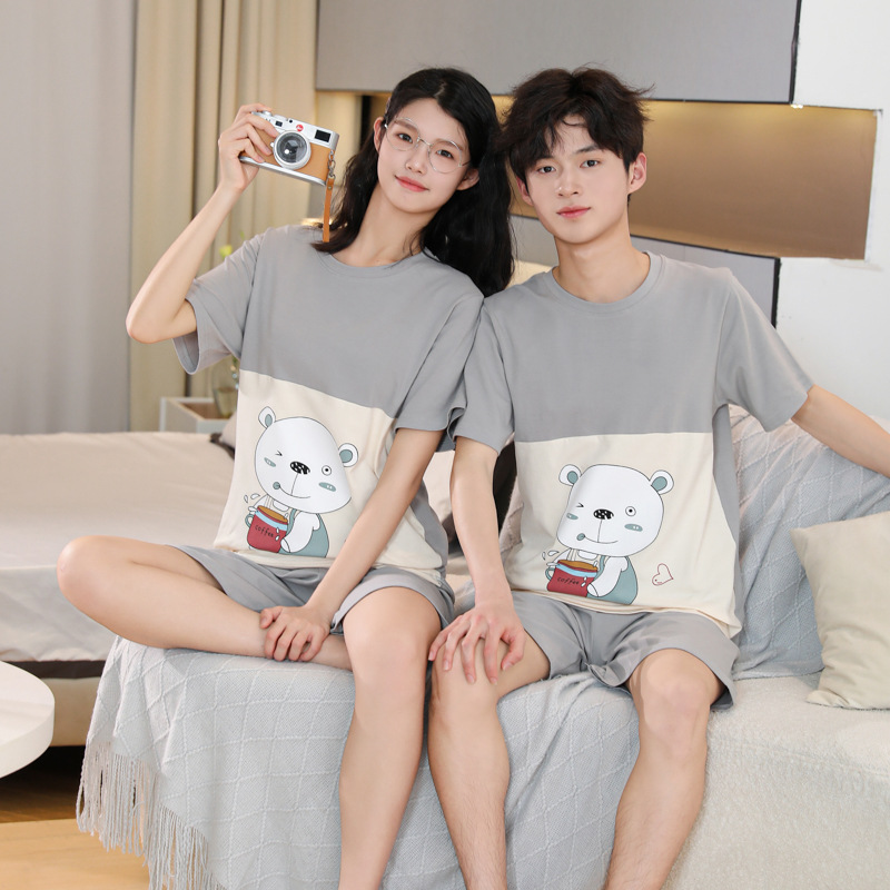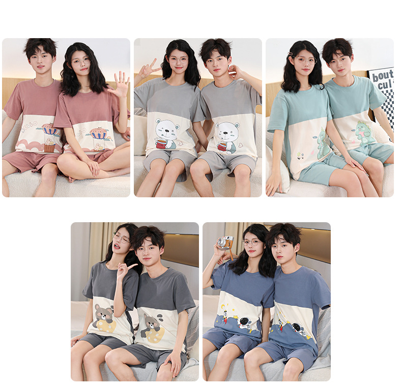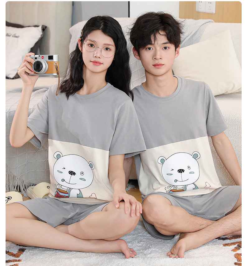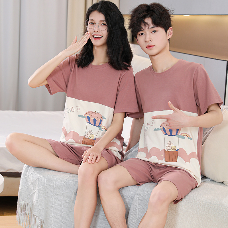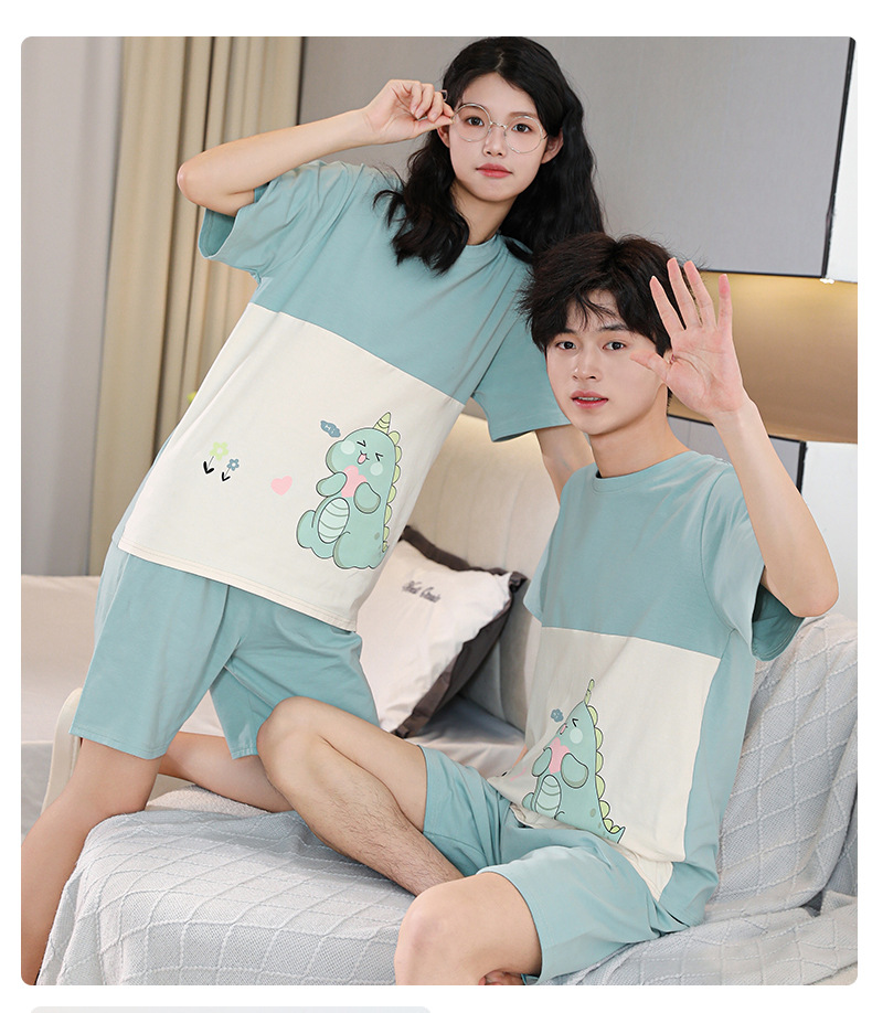 여름 청소년 홈 의류 소년 소녀 반팔 반바지 큰 어린이 잠옷 세트 반팔 원피스 잠옷스토어 가기