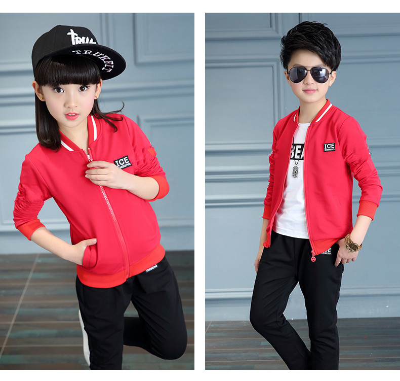 국경을 넘나 드는 어린이 의류 봄과 가을 어린이 스포츠 2 종 소년 소녀를위한 긴팔 카디건 운동복
