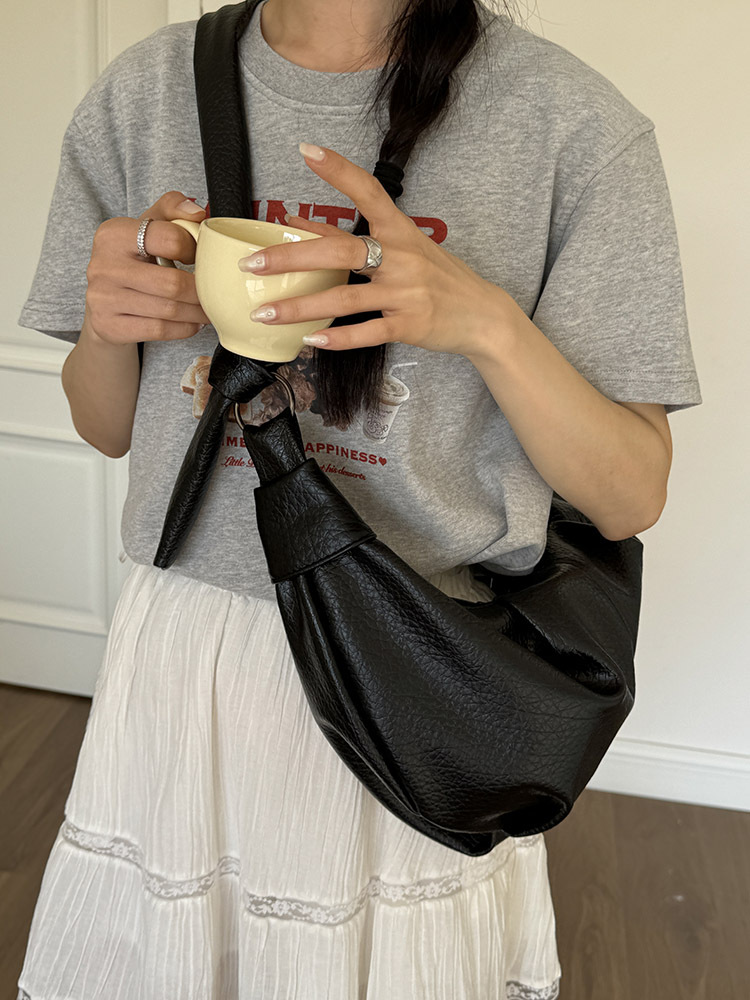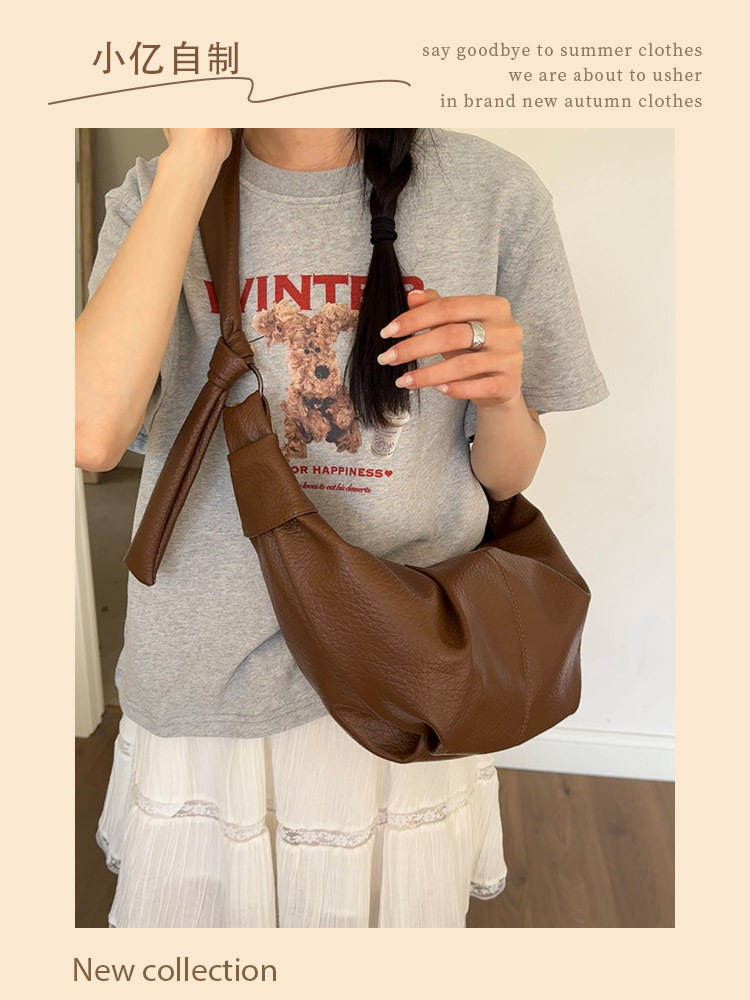 한국 스타일, 대용량 레트로 부드러운 피부 주름 만두 가방 게으른 스타일 캐주얼 올 매치 숄더 새첼