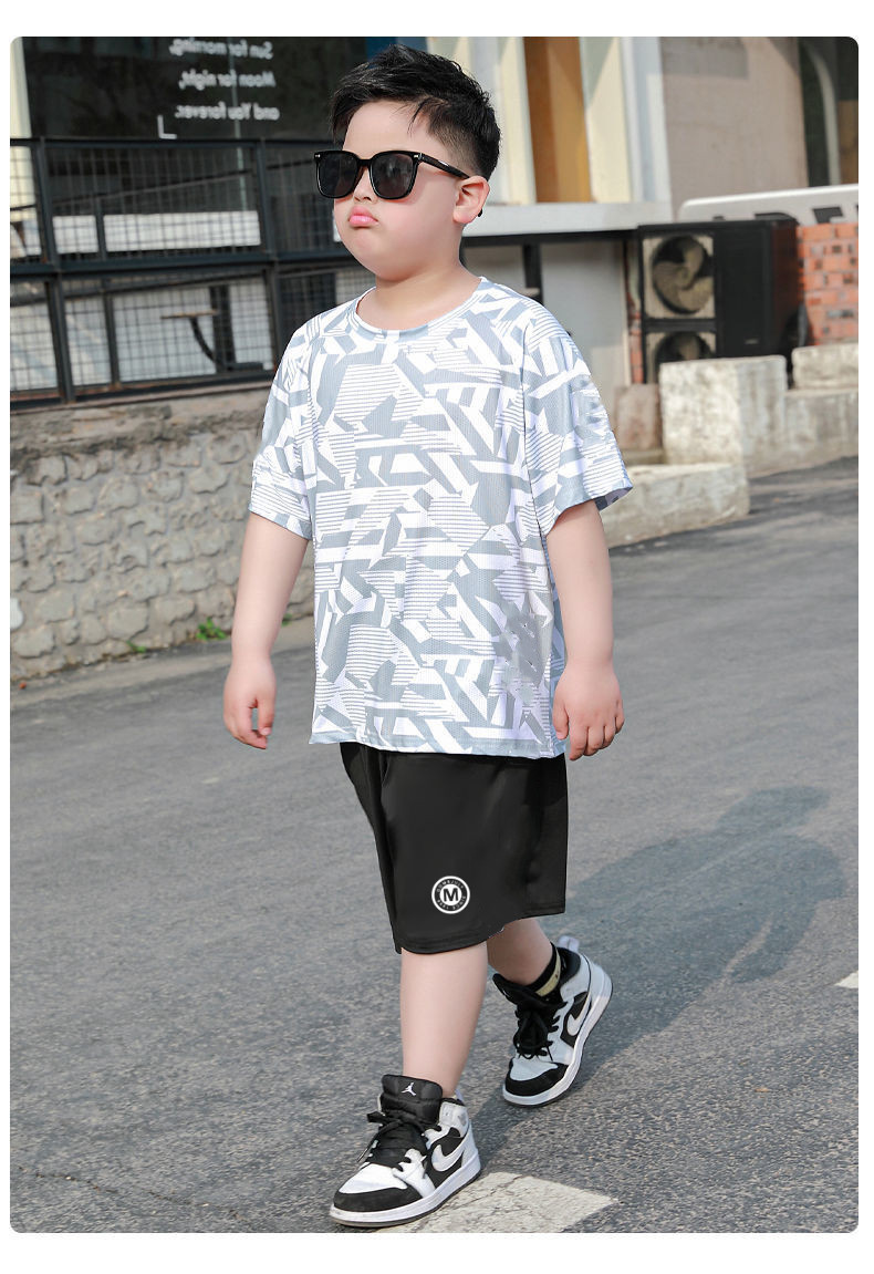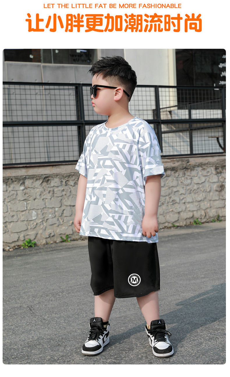 대외 무역 어린이 의류 통통한 소년의 세트 스포츠 볼 세트 여름 플러스 비료 플러스 느슨한 빠른 건조 옷 반팔 투피스 세트