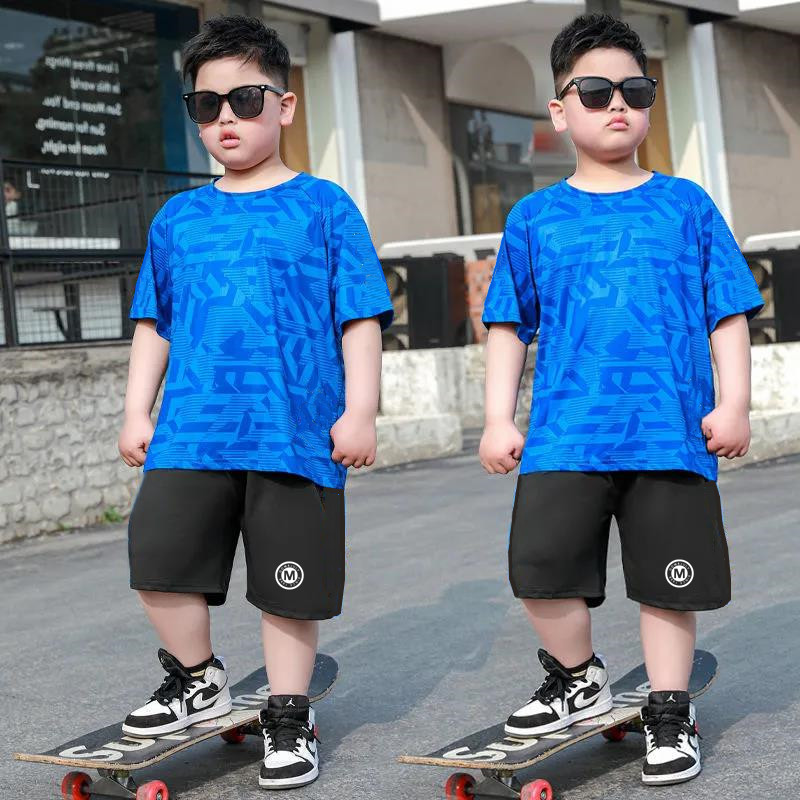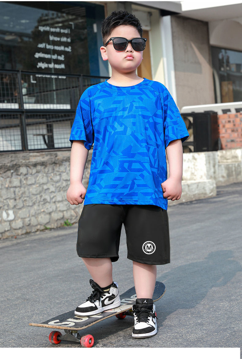 대외 무역 어린이 의류 통통한 소년의 세트 스포츠 볼 세트 여름 플러스 비료 플러스 느슨한 빠른 건조 옷 반팔 투피스 세트스토어 가기