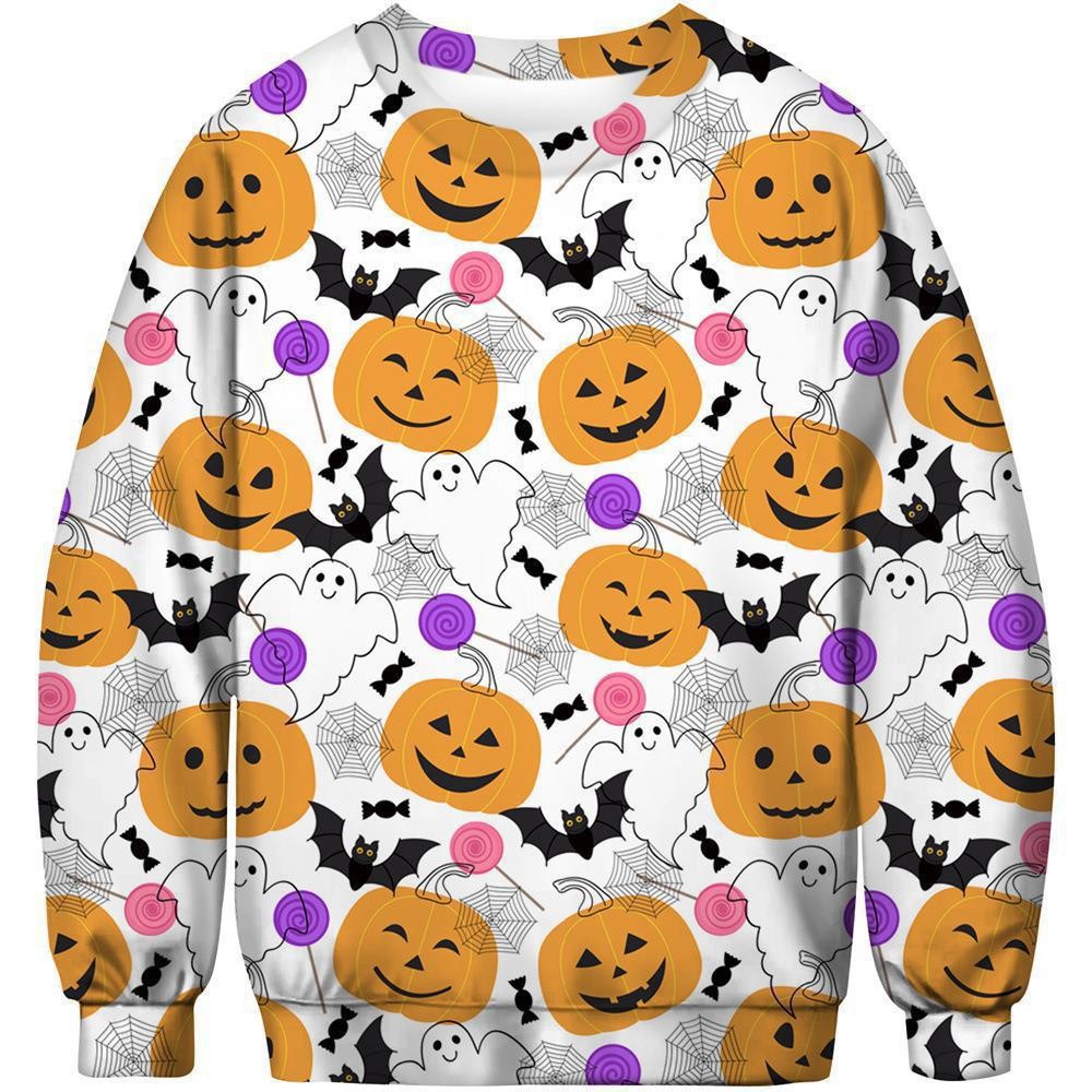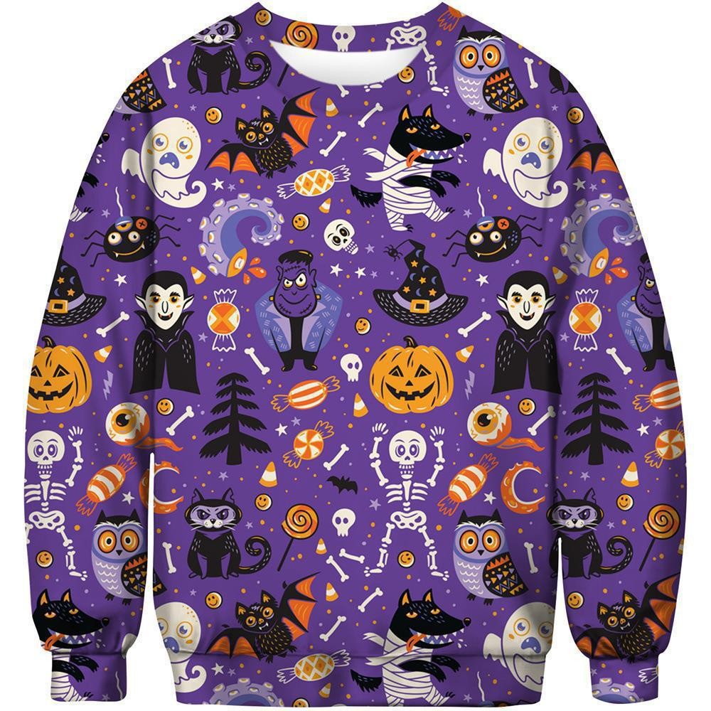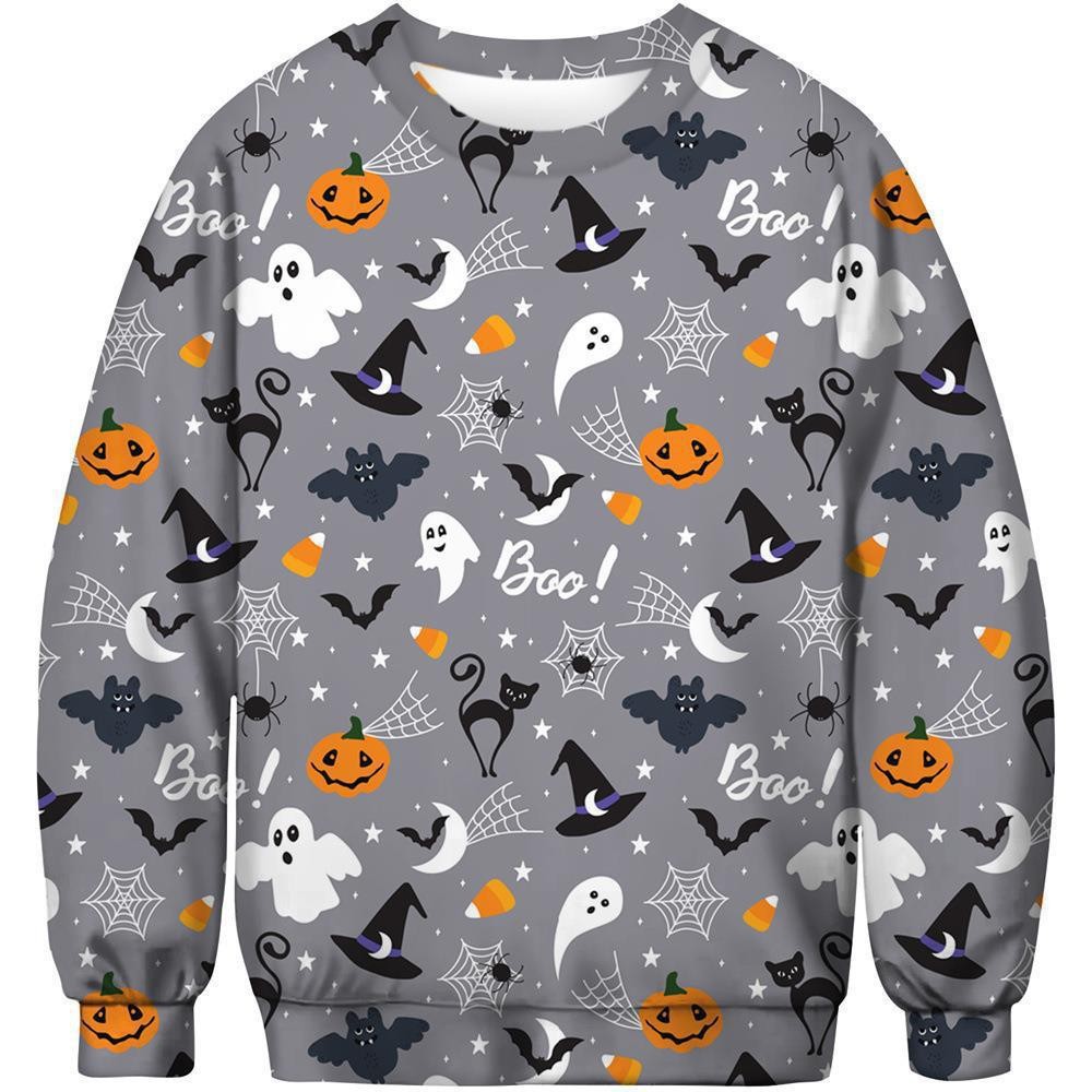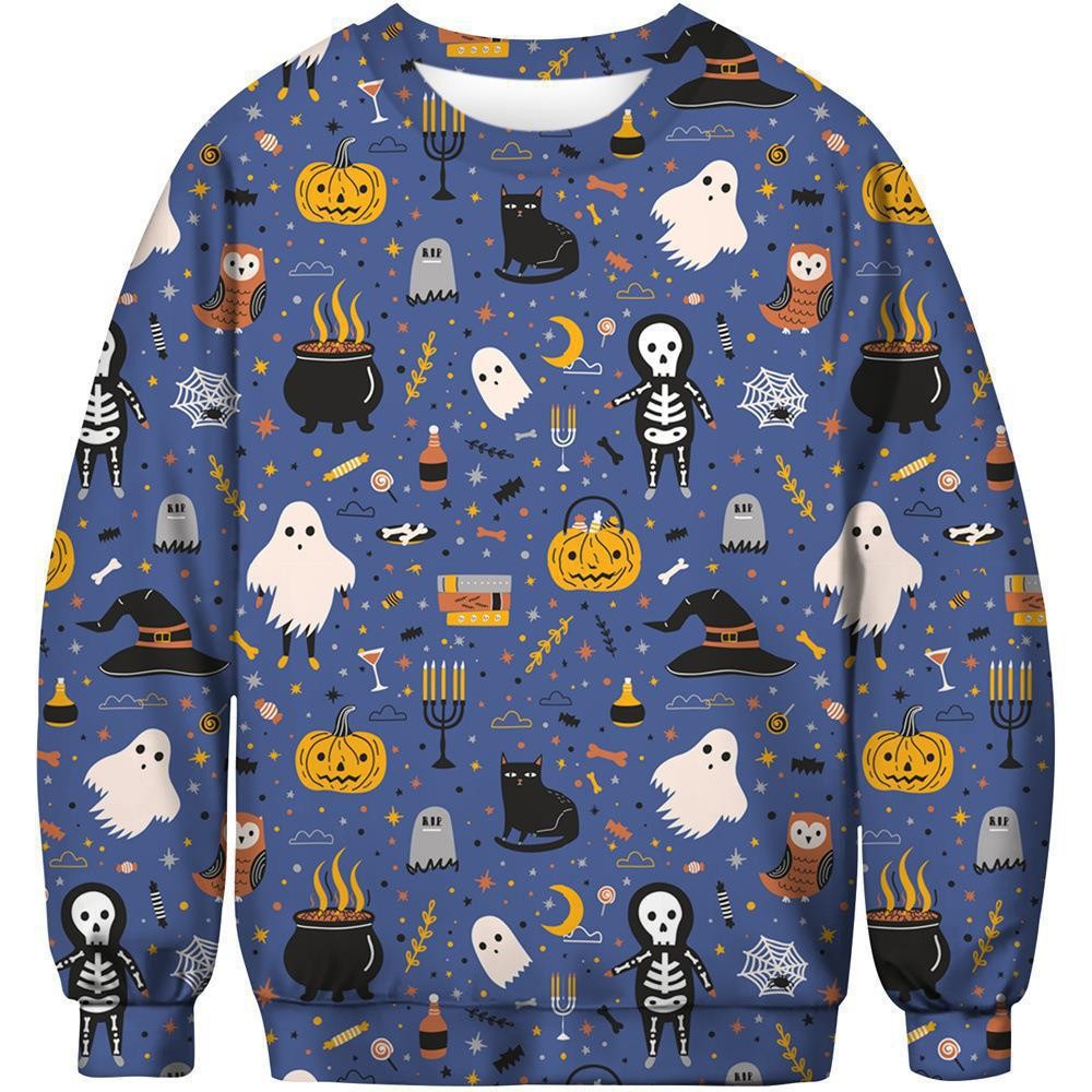 패션 봄과 가을 새로운 독립 역 3D 인쇄 할로윈 유령 시리즈 남자 느슨한 캐주얼 라운드 넥 스웨트 셔츠