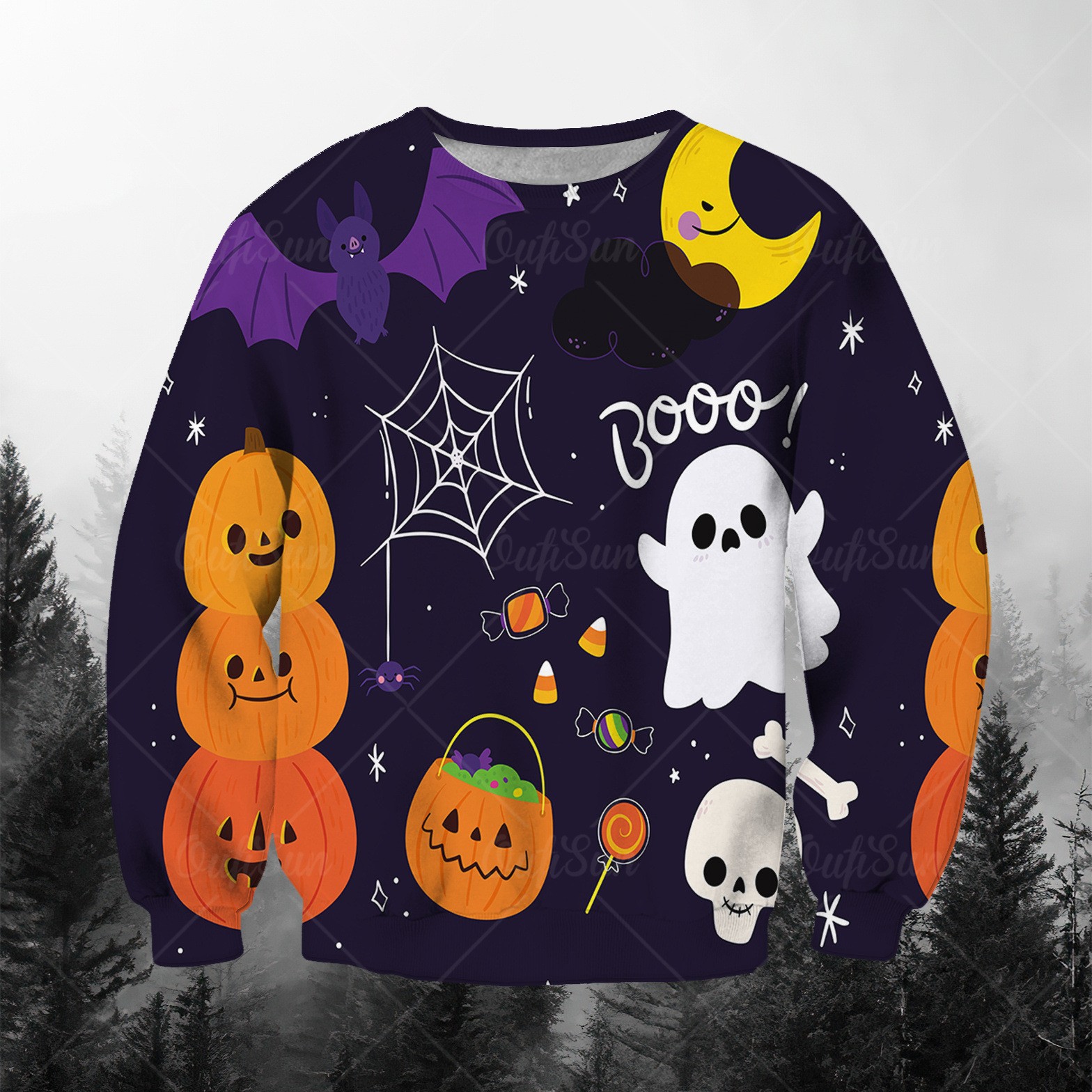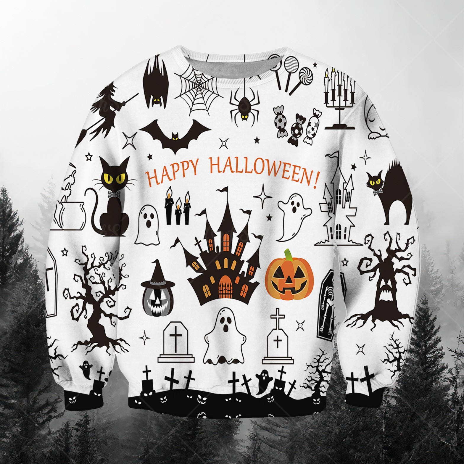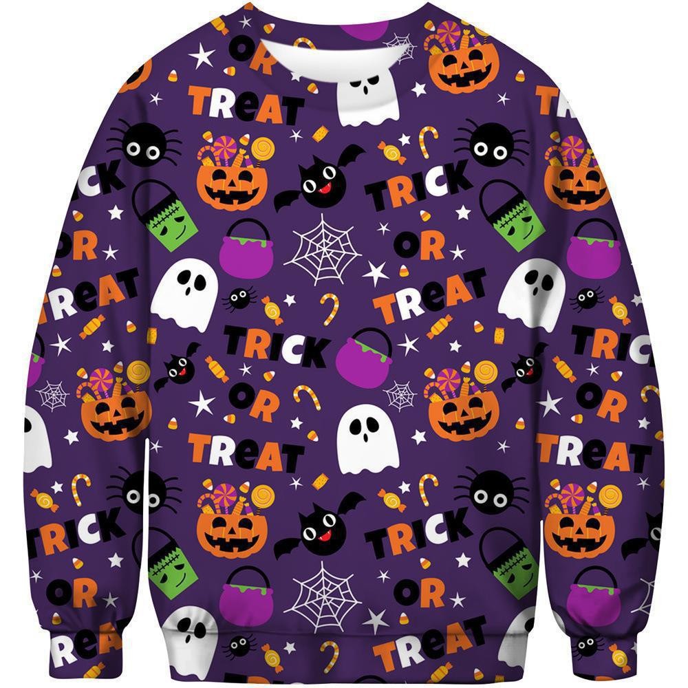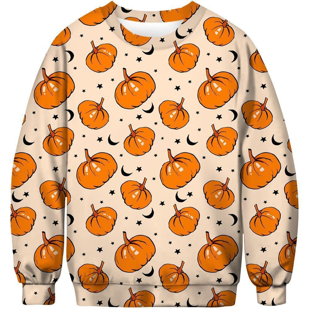 패션 봄과 가을 새로운 독립 역 3D 인쇄 할로윈 유령 시리즈 남자 느슨한 캐주얼 라운드 넥 스웨트 셔츠