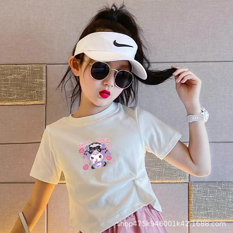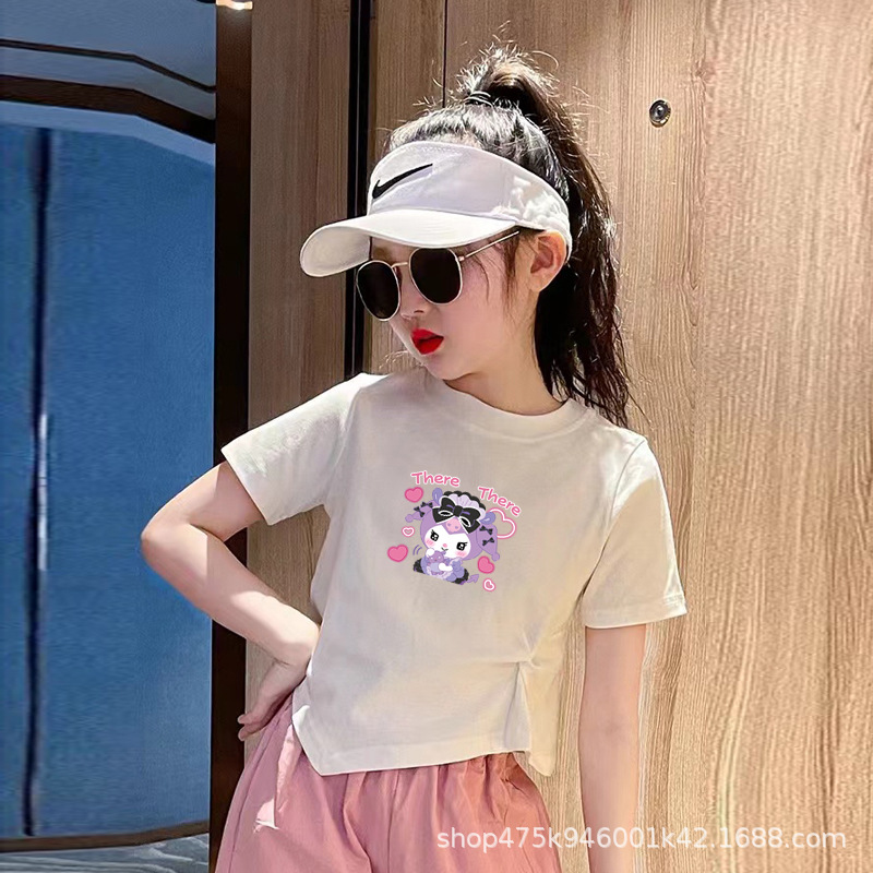 도매 국경 중소 어린이 반팔 티셔츠 코튼 여름 소녀 쿨미 슬림 핏 짧은 배꼽 탑스토어 가기