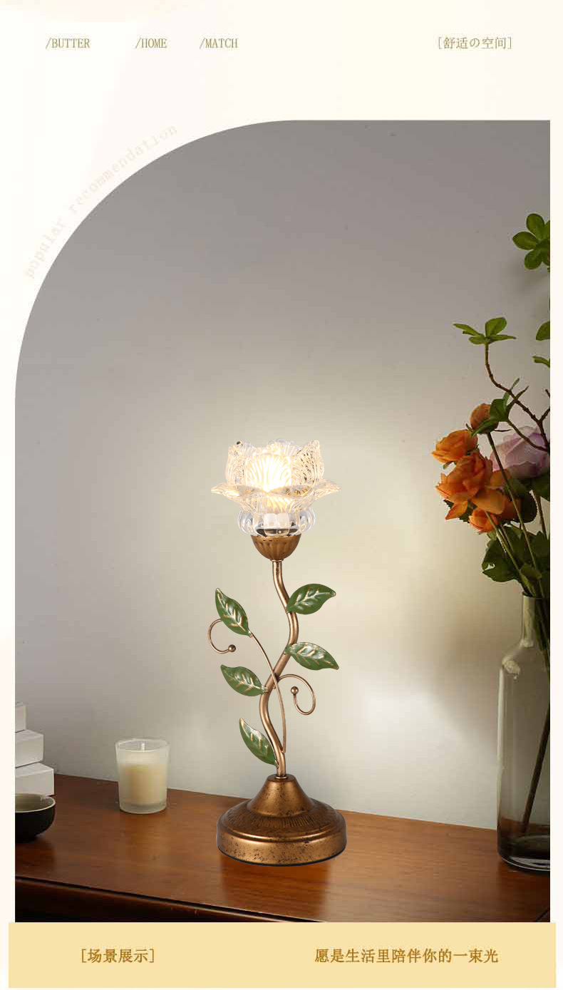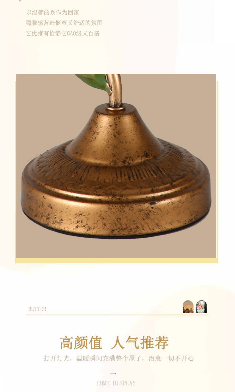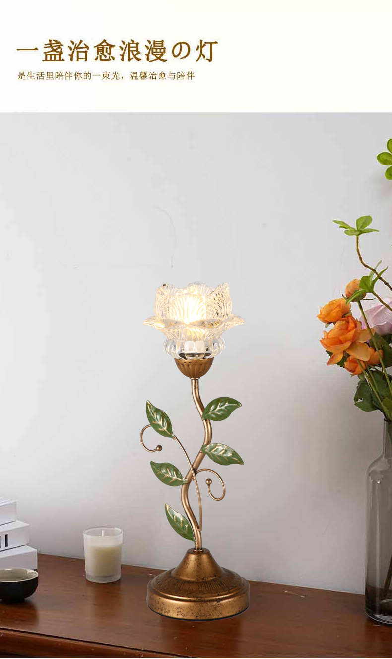 프랑스 복고풍 테이블 램프, 미국 전원풍 거실 조명, 현대적이고 심플한 창의적인 꽃 장식 침실 침대 옆 테이블 램프스토어 가기