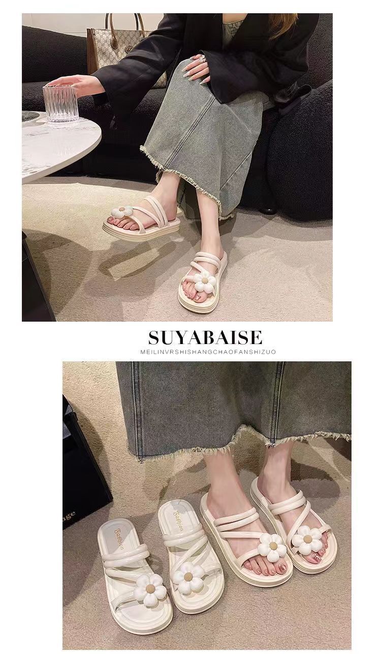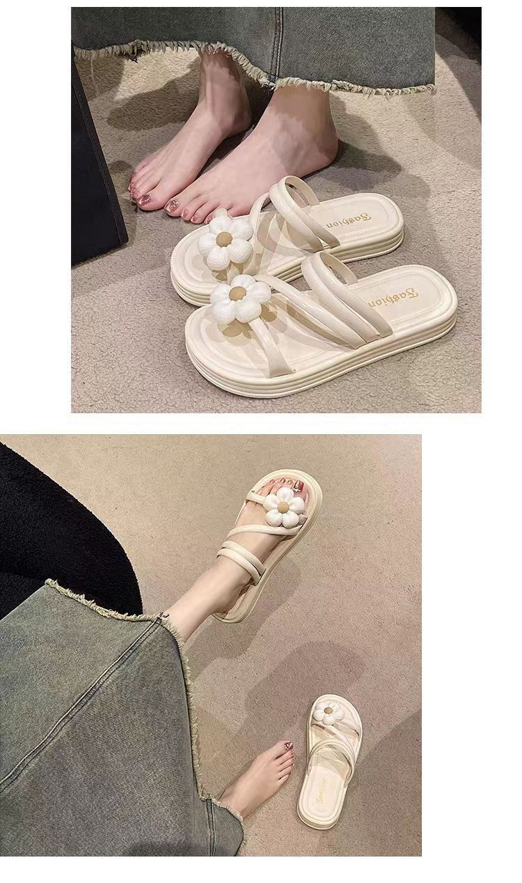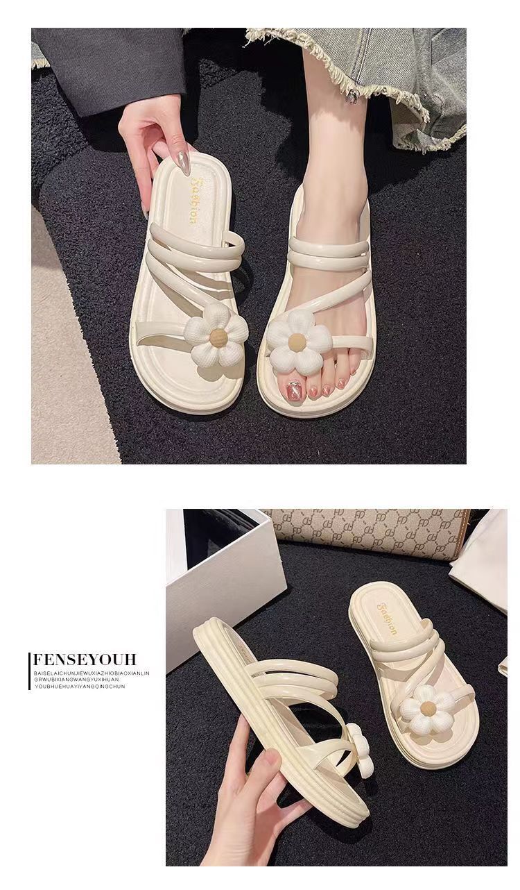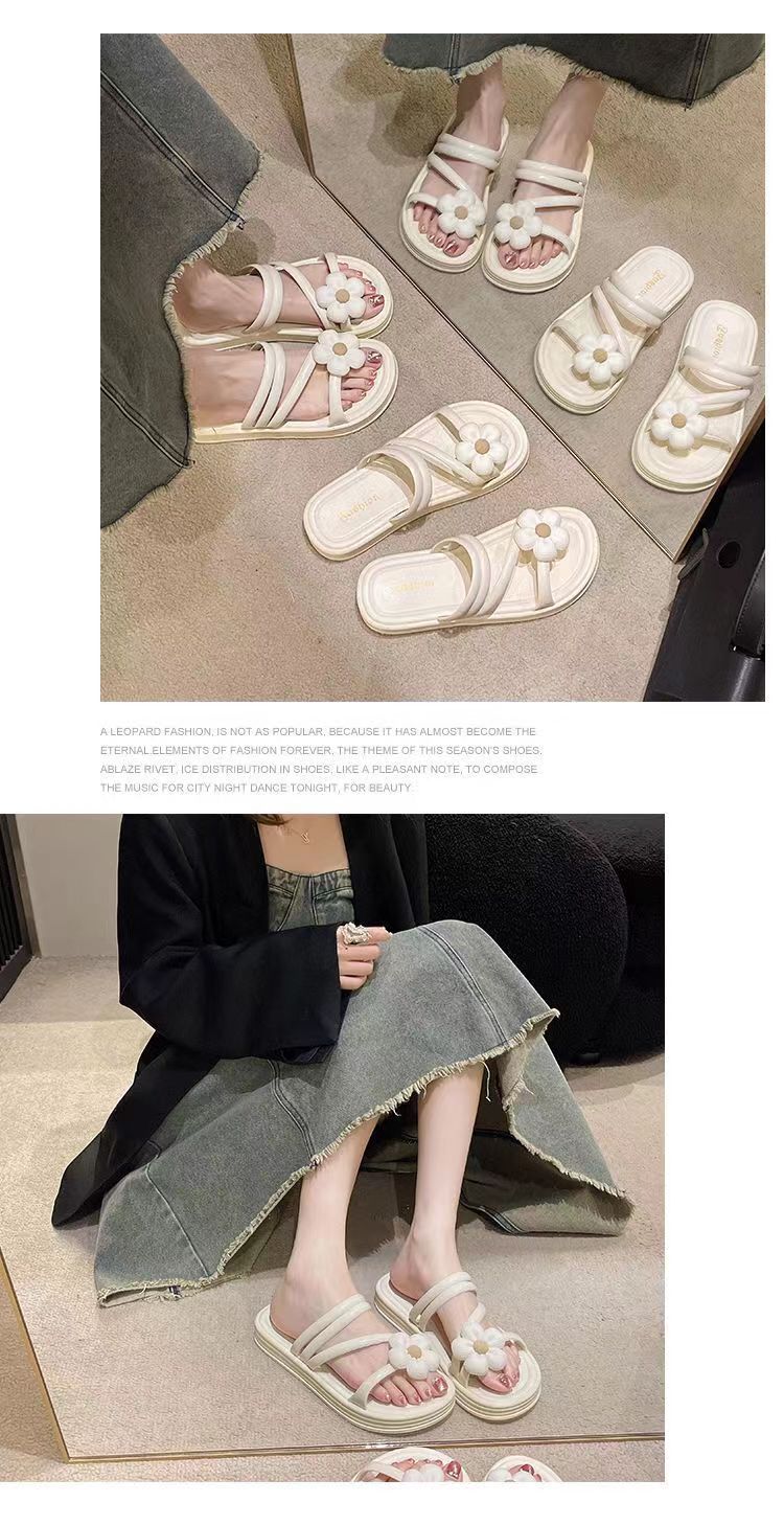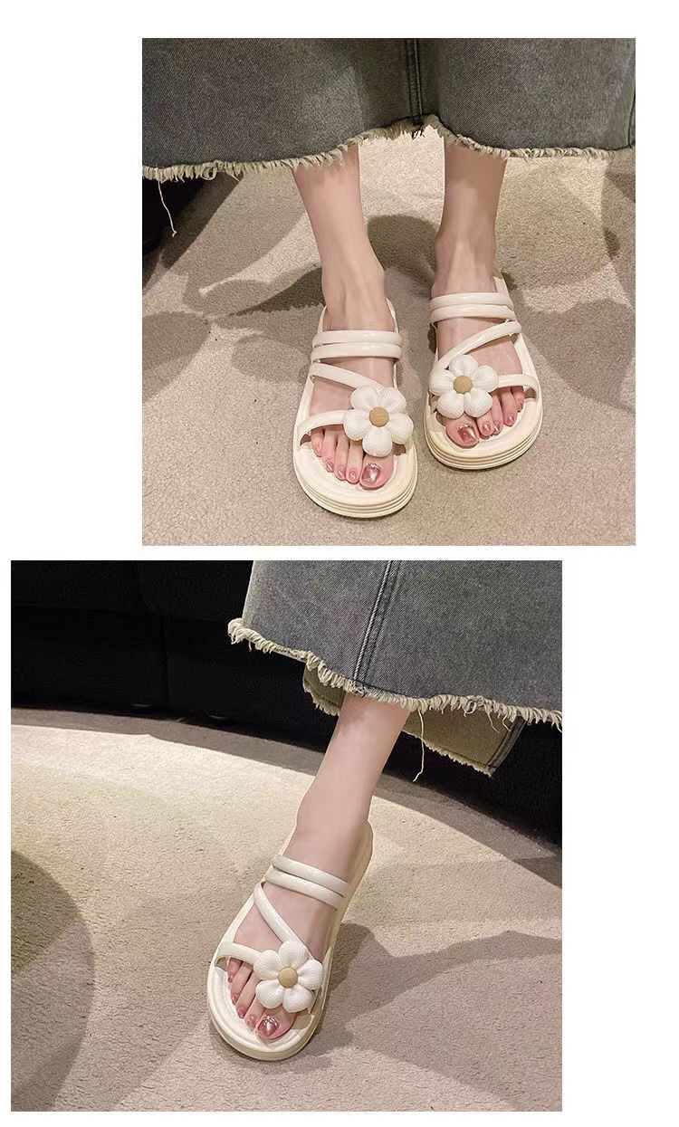2024 새로운 꽃 샌들 및 슬리퍼 평면 실내 및 실외 달콤한 슬리퍼 여성 인터넷 인기있는 여성 여름 공주 스타일 로마 샌들스토어 가기