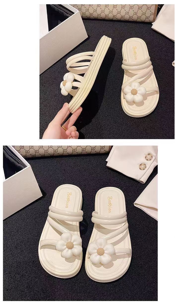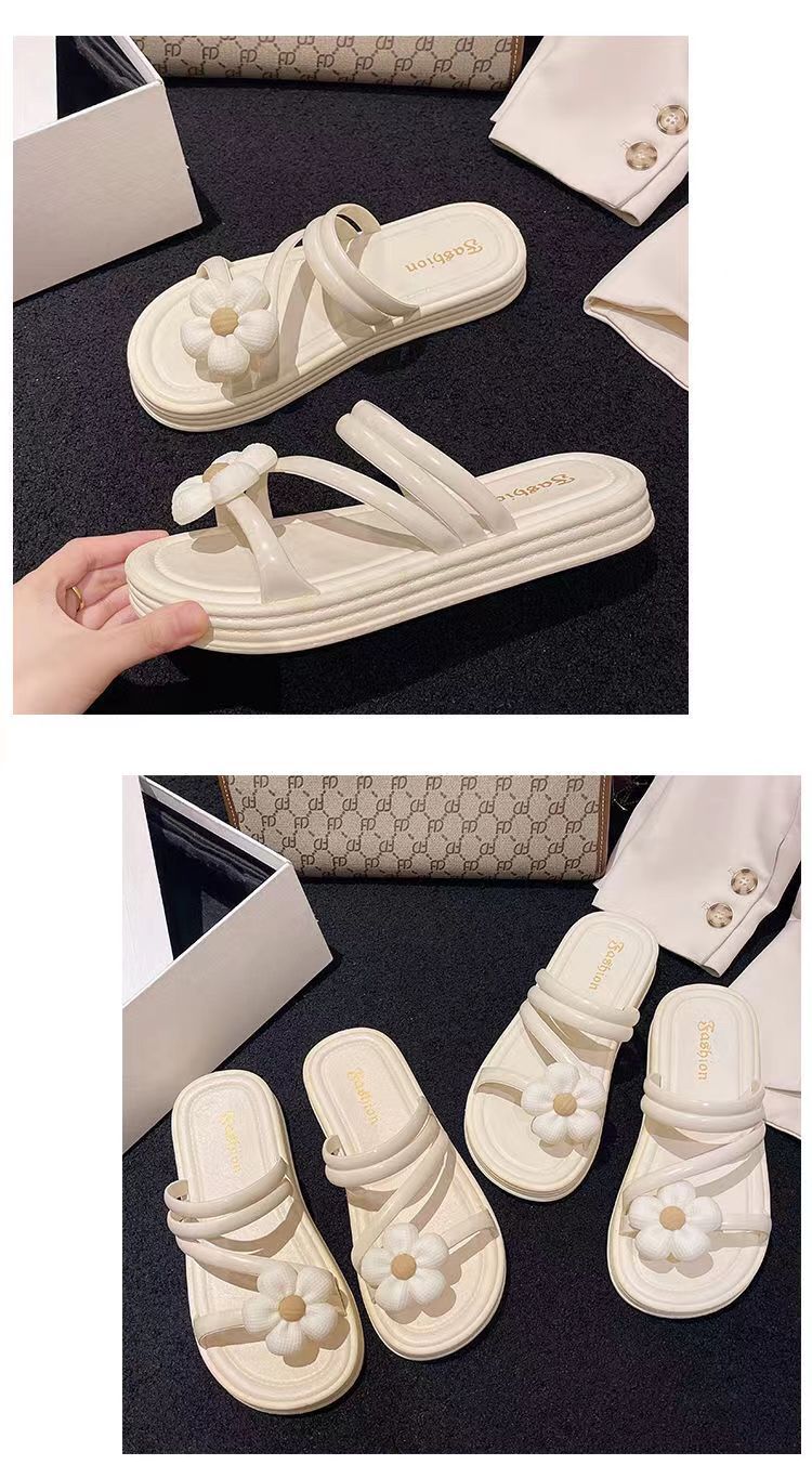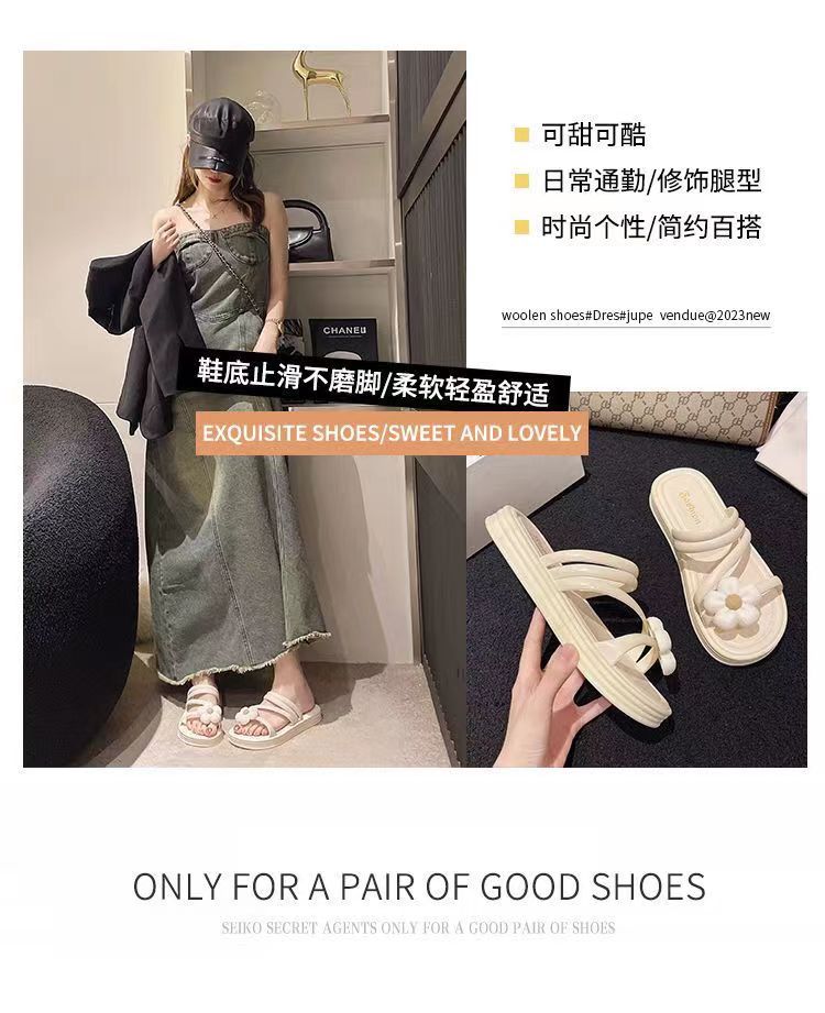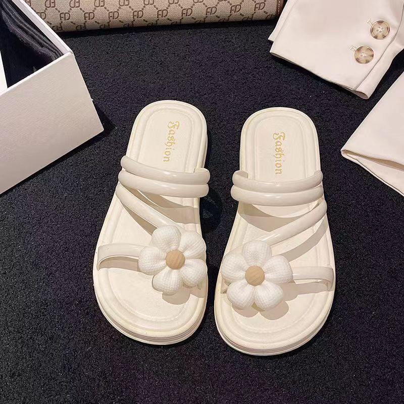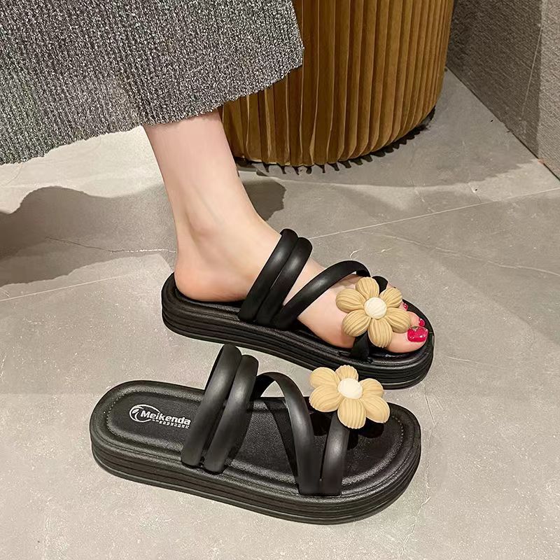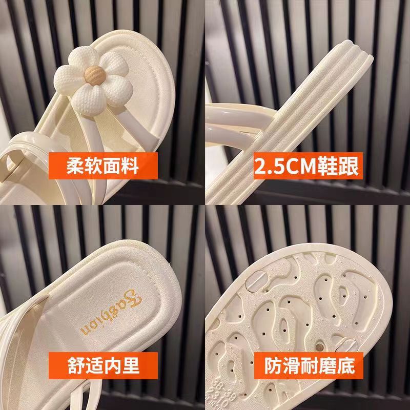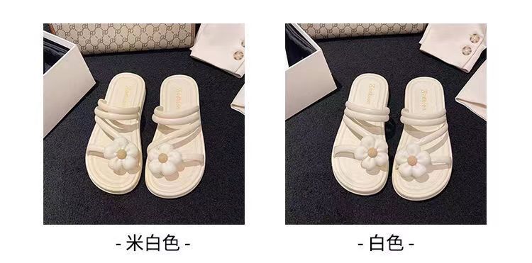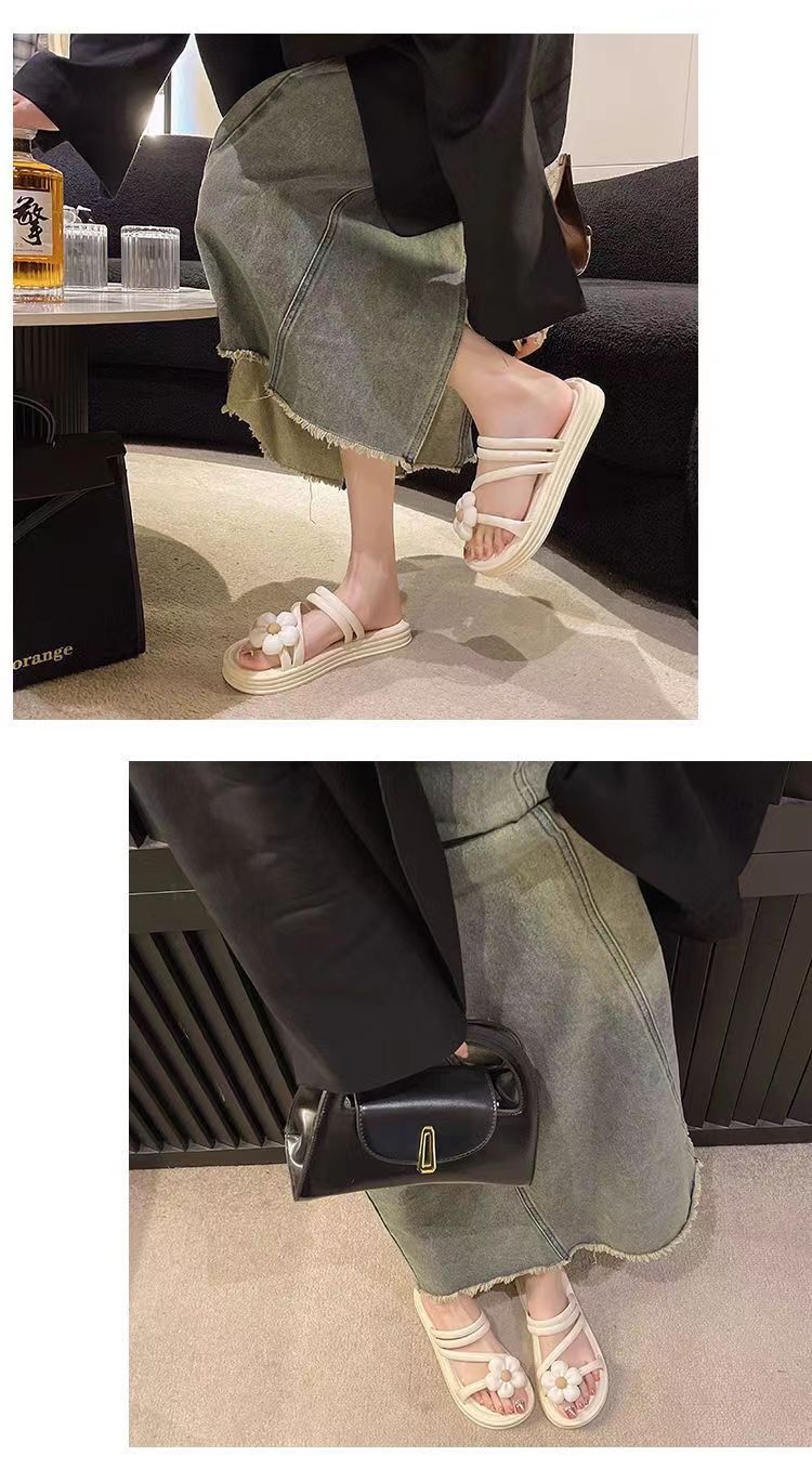 2024 새로운 꽃 샌들 및 슬리퍼 평면 실내 및 실외 달콤한 슬리퍼 여성 인터넷 인기있는 여성 여름 공주 스타일 로마 샌들스토어 가기