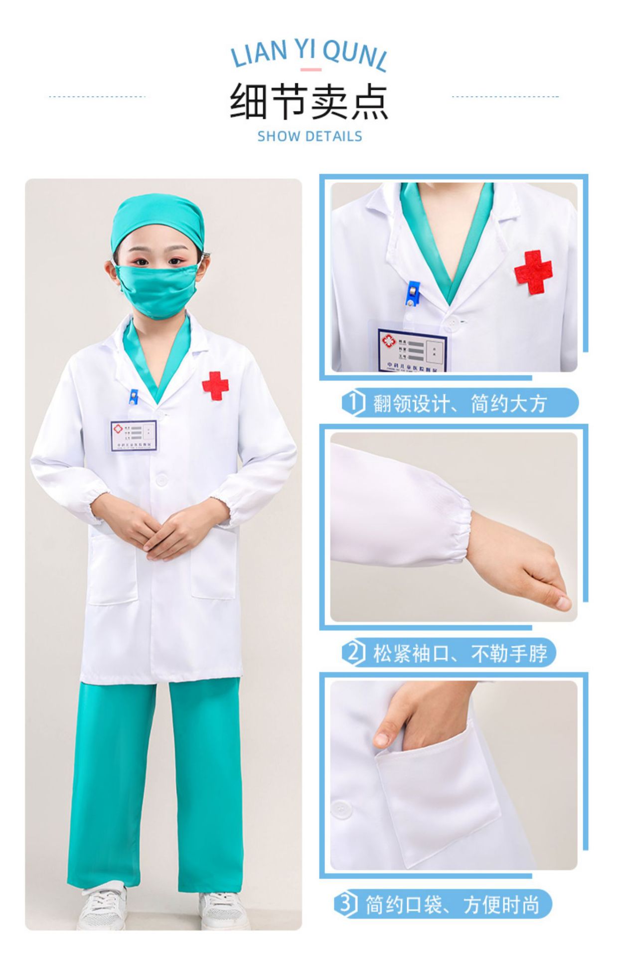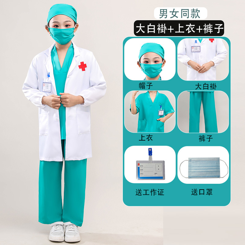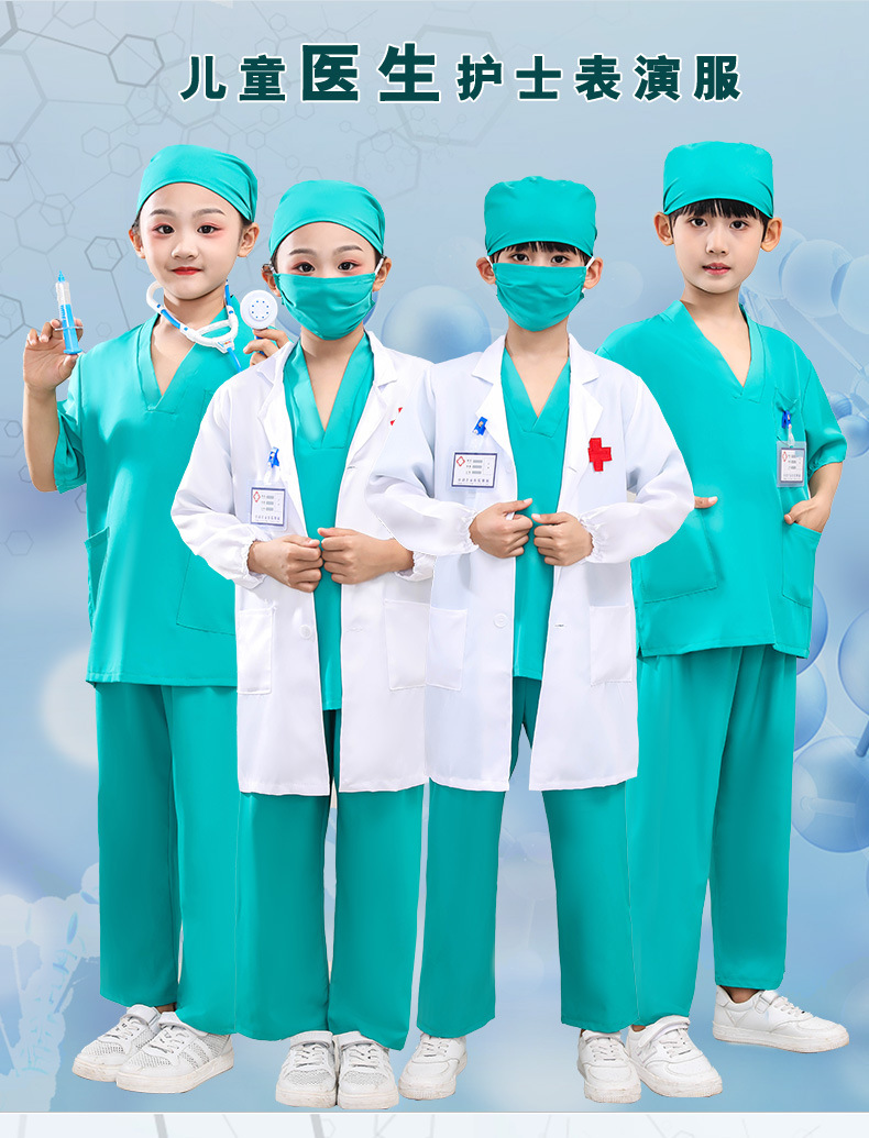 어린이 간호사 의류 의사 롤 플레잉 수술 의류 유치원 직업, 전염병 공연 의류 화이트 코트에 맞서 싸우다