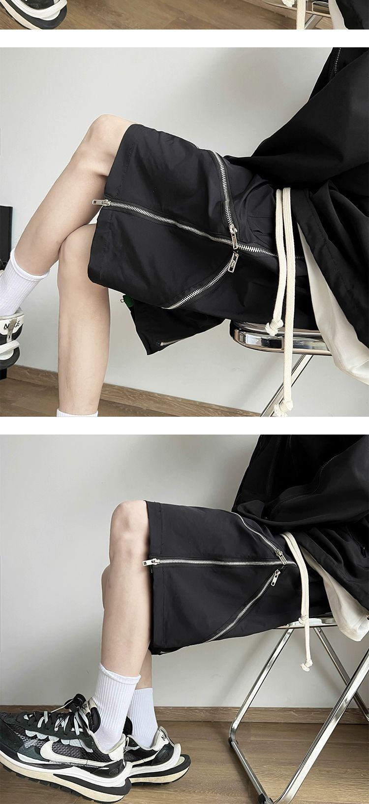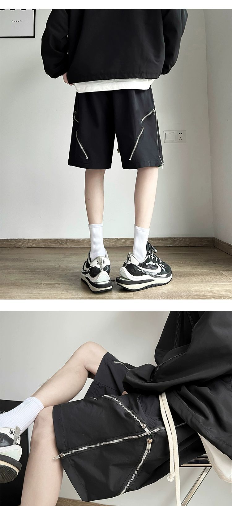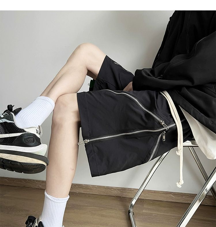 아메리칸 스타일 하이 스트리트 지퍼 기능성 툴링 반바지 남성 2024 여름 충전 바지 유행 브랜드 디자인 센스 루즈 바지