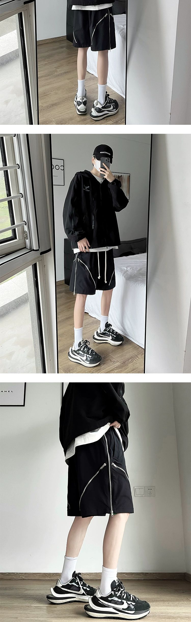 아메리칸 스타일 하이 스트리트 지퍼 기능성 툴링 반바지 남성 2024 여름 충전 바지 유행 브랜드 디자인 센스 루즈 바지스토어 가기