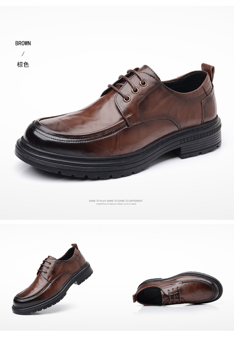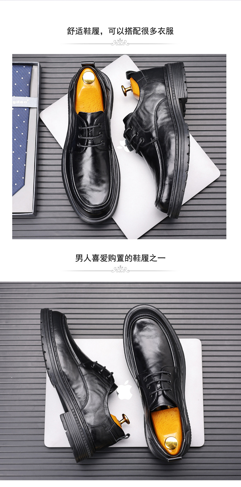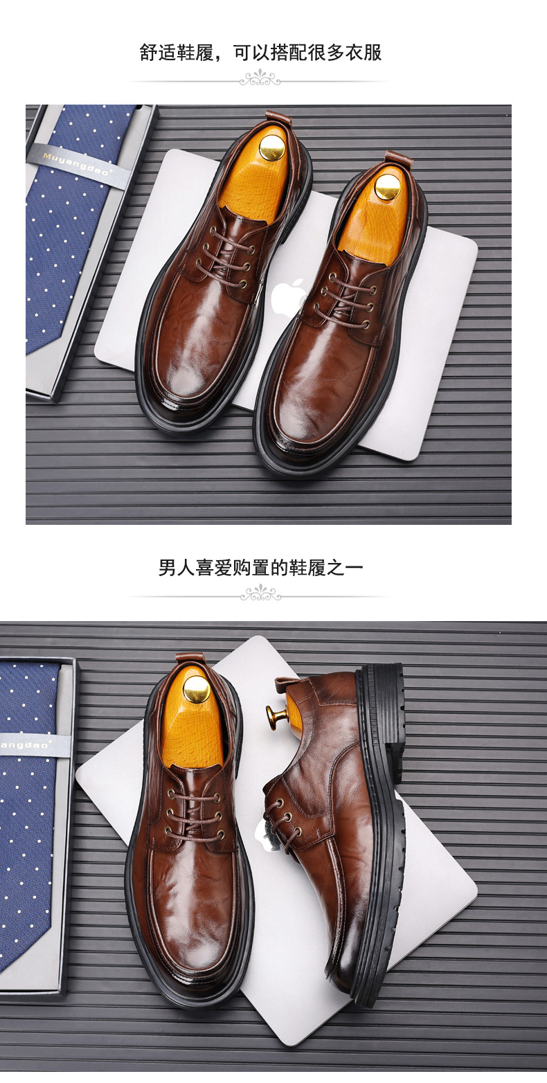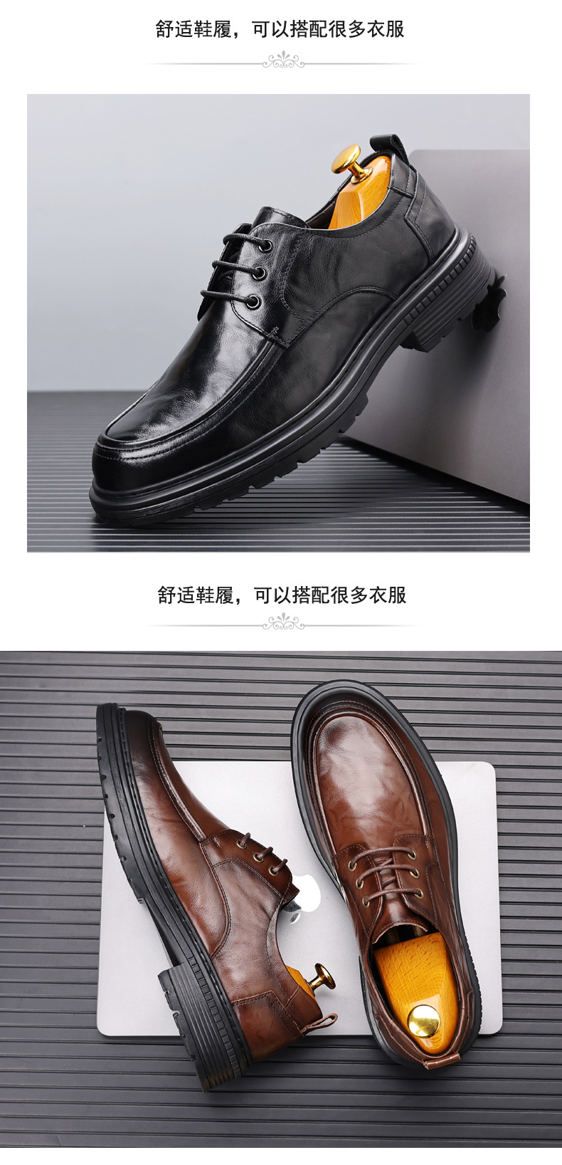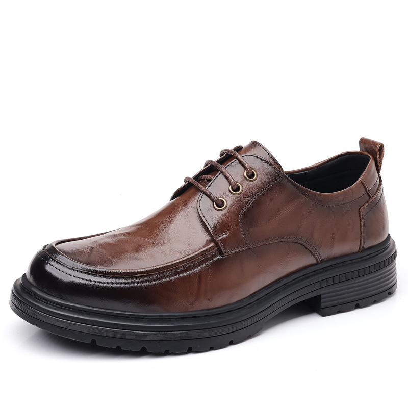 새로운 남성 탑 레이어 Cowhide 캐주얼 가죽 신발 큰 머리 두꺼운 바닥 정품 가죽 비즈니스 원피스 남성 신발 남성용 통기성 싱글 레이어 신발스토어 가기