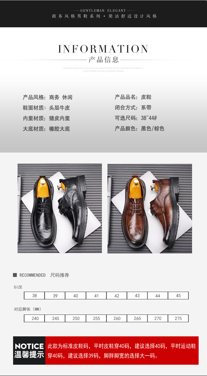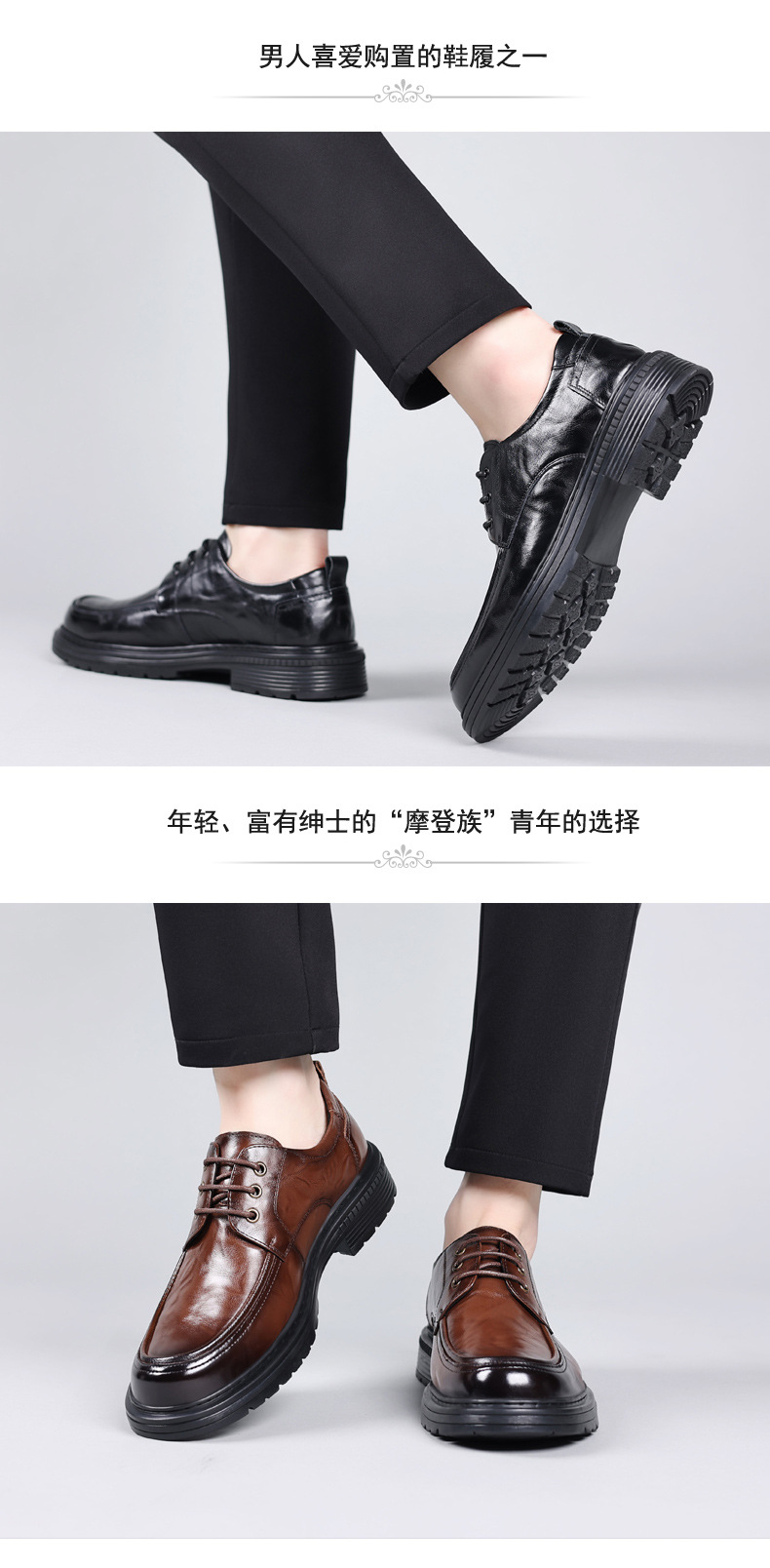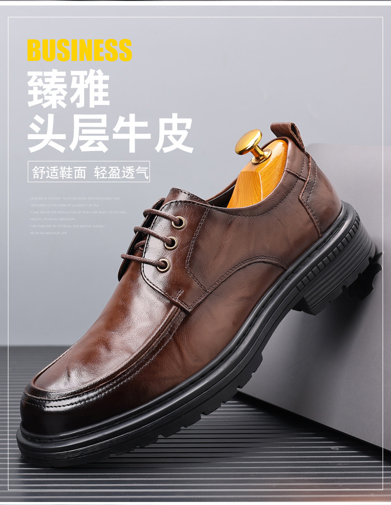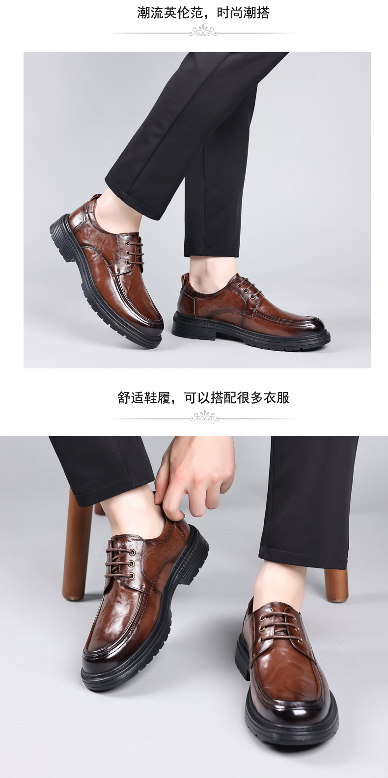 새로운 남성 탑 레이어 Cowhide 캐주얼 가죽 신발 큰 머리 두꺼운 바닥 정품 가죽 비즈니스 원피스 남성 신발 남성용 통기성 싱글 레이어 신발스토어 가기