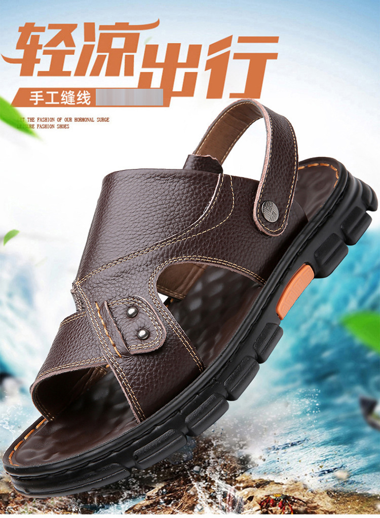 대외 무역 제조 업체 도매 여름 남성 패션 휴식 해변 신발 가죽 빛 통기성 반 슬리퍼 부드러운 바닥 샌들스토어 가기