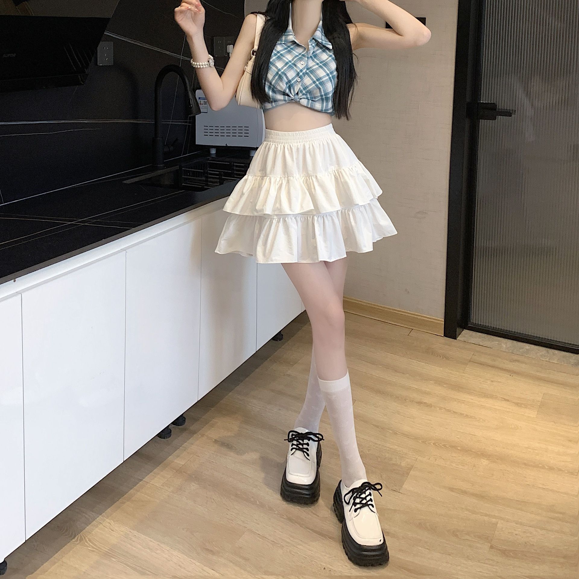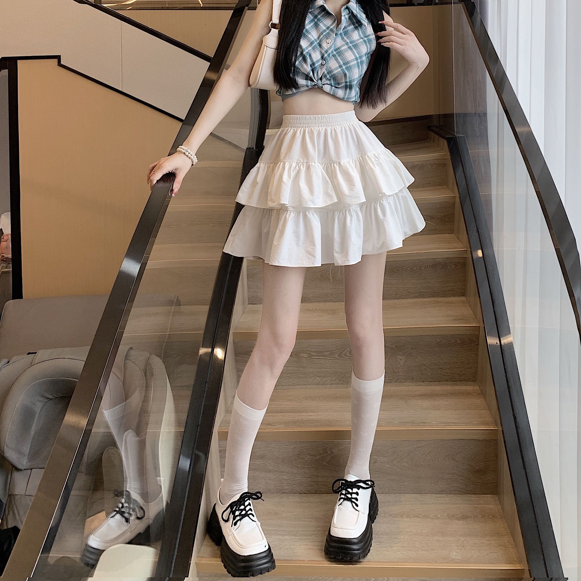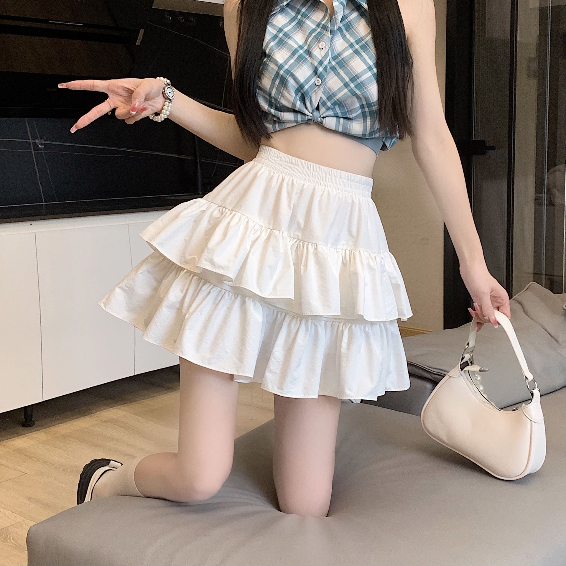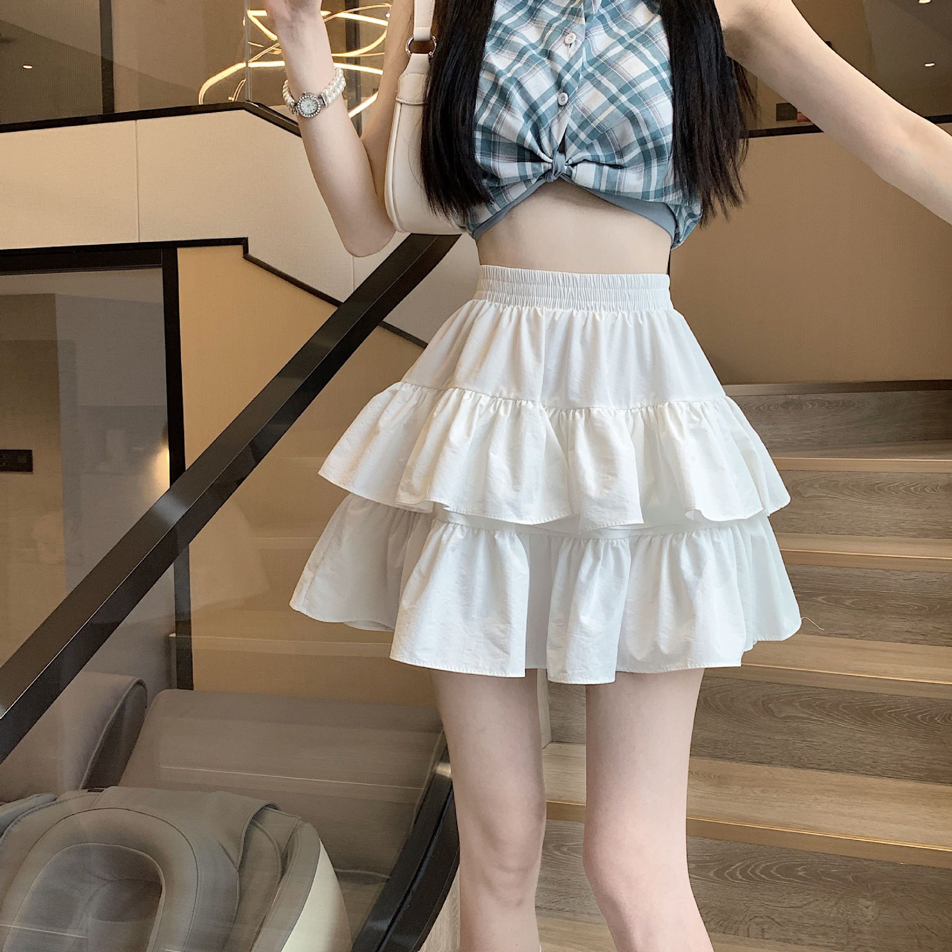 흰색 푹신한 케이크 스커트 여성의 봄과 여름 새로운 높은 허리 슬리밍 스파이스 소녀 작은 주름진 A 자형 우산 스커트 도매스토어 가기
