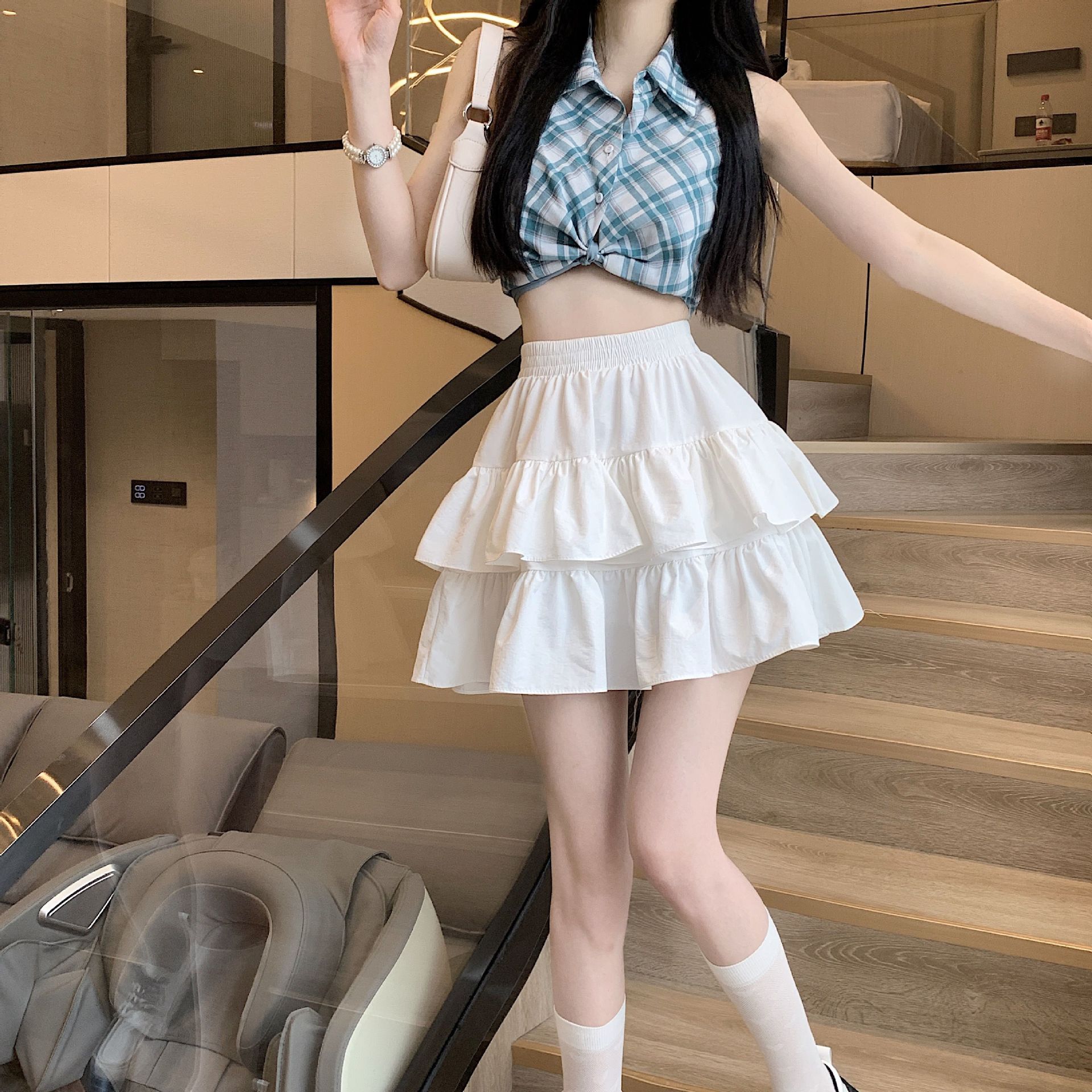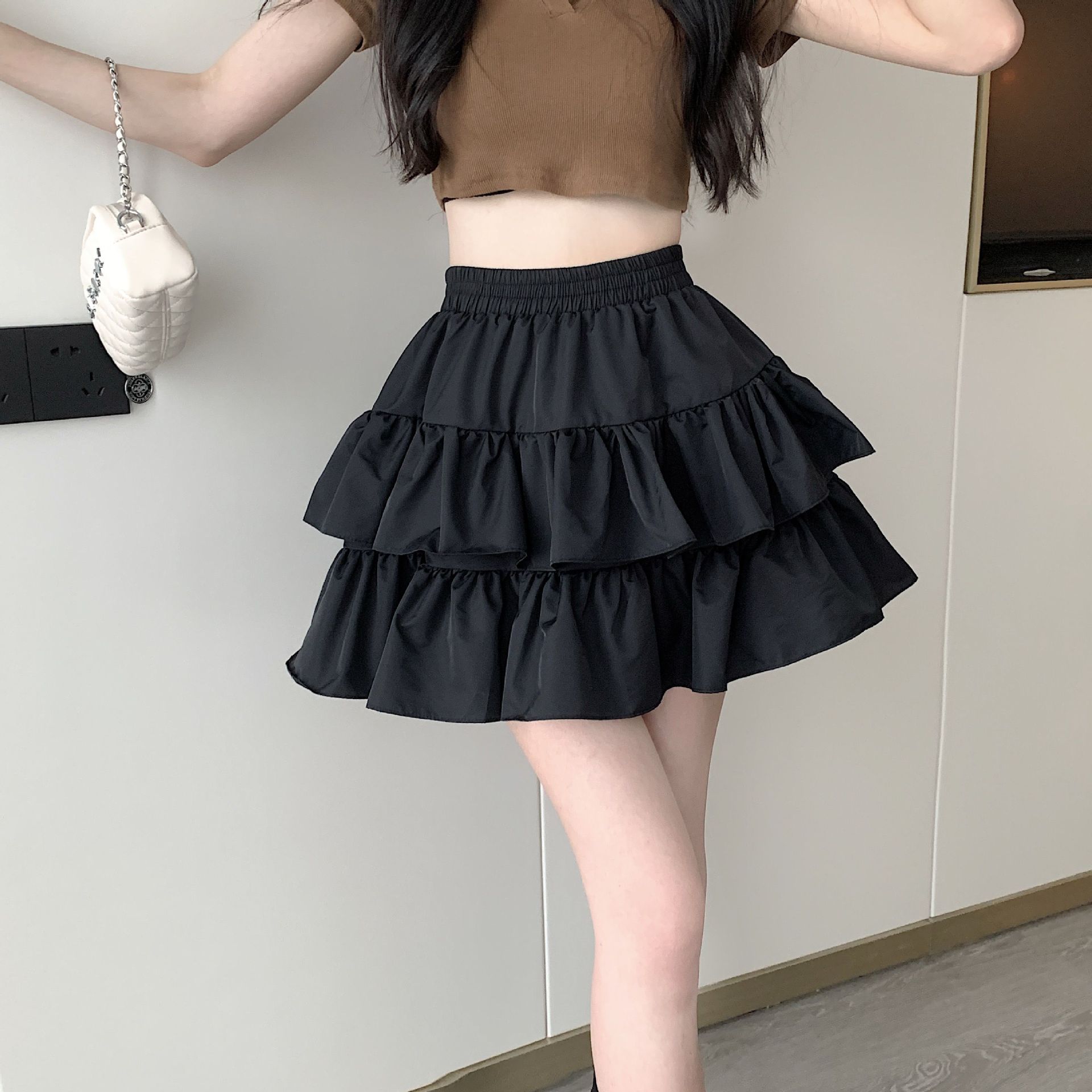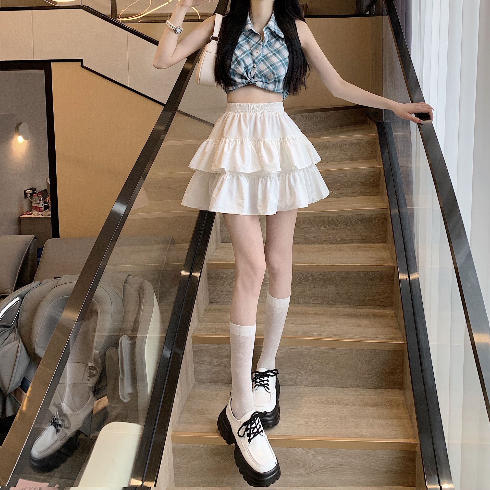 흰색 푹신한 케이크 스커트 여성의 봄과 여름 새로운 높은 허리 슬리밍 스파이스 소녀 작은 주름진 A 자형 우산 스커트 도매스토어 가기