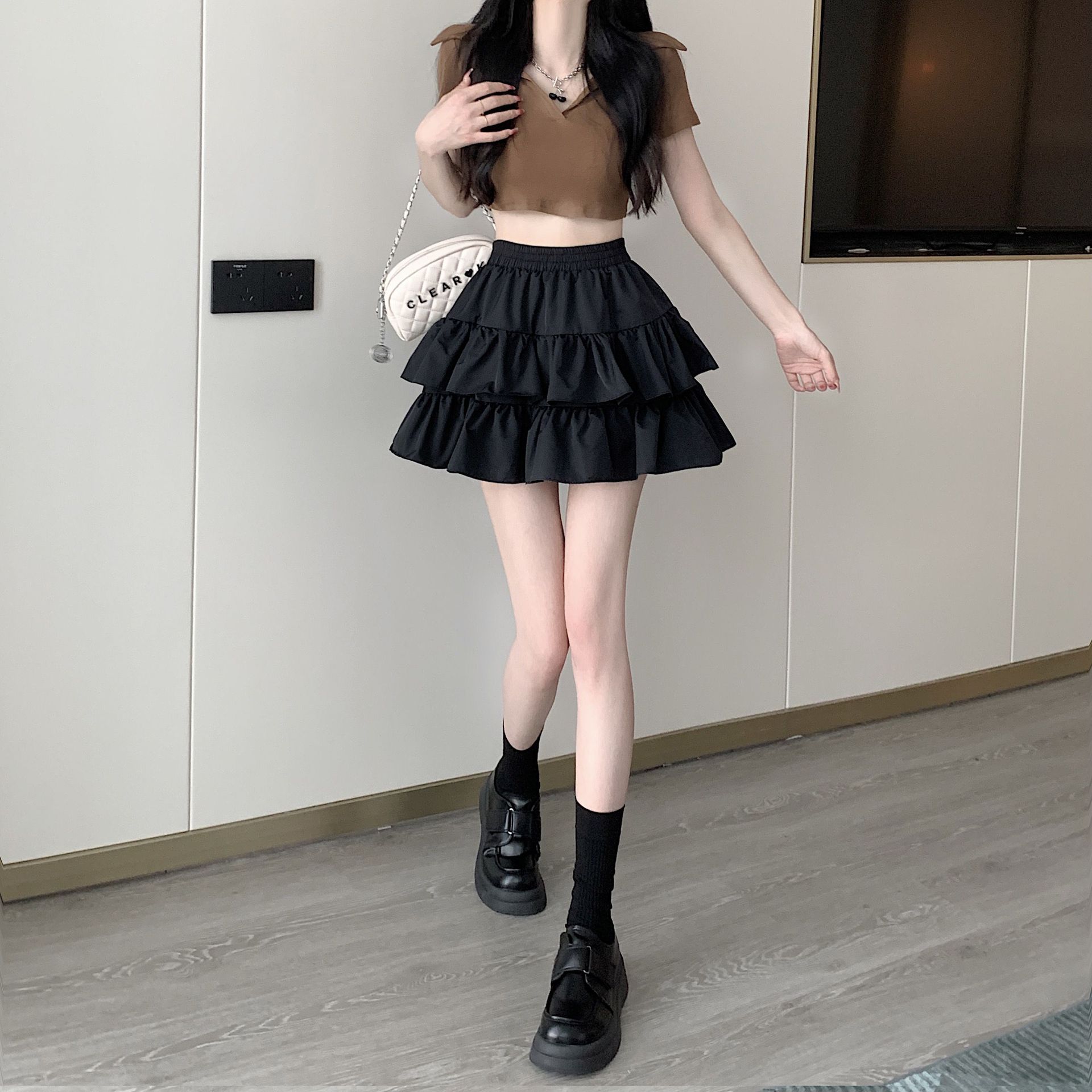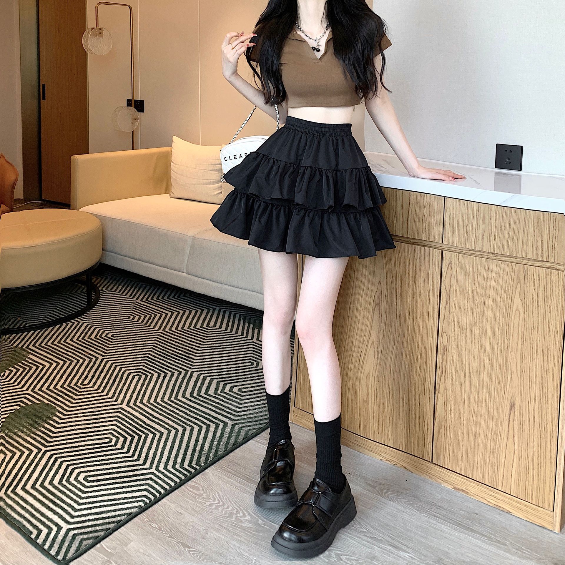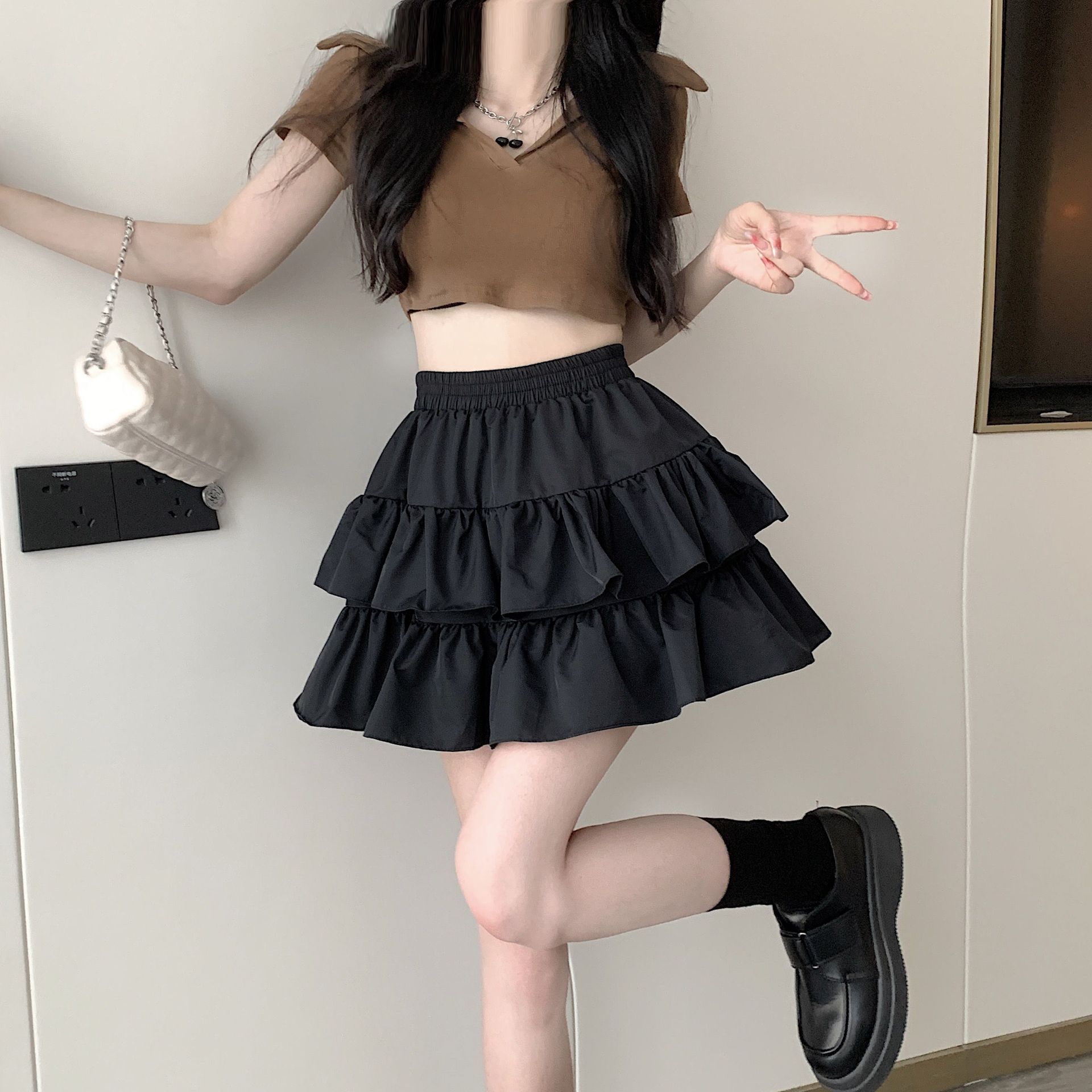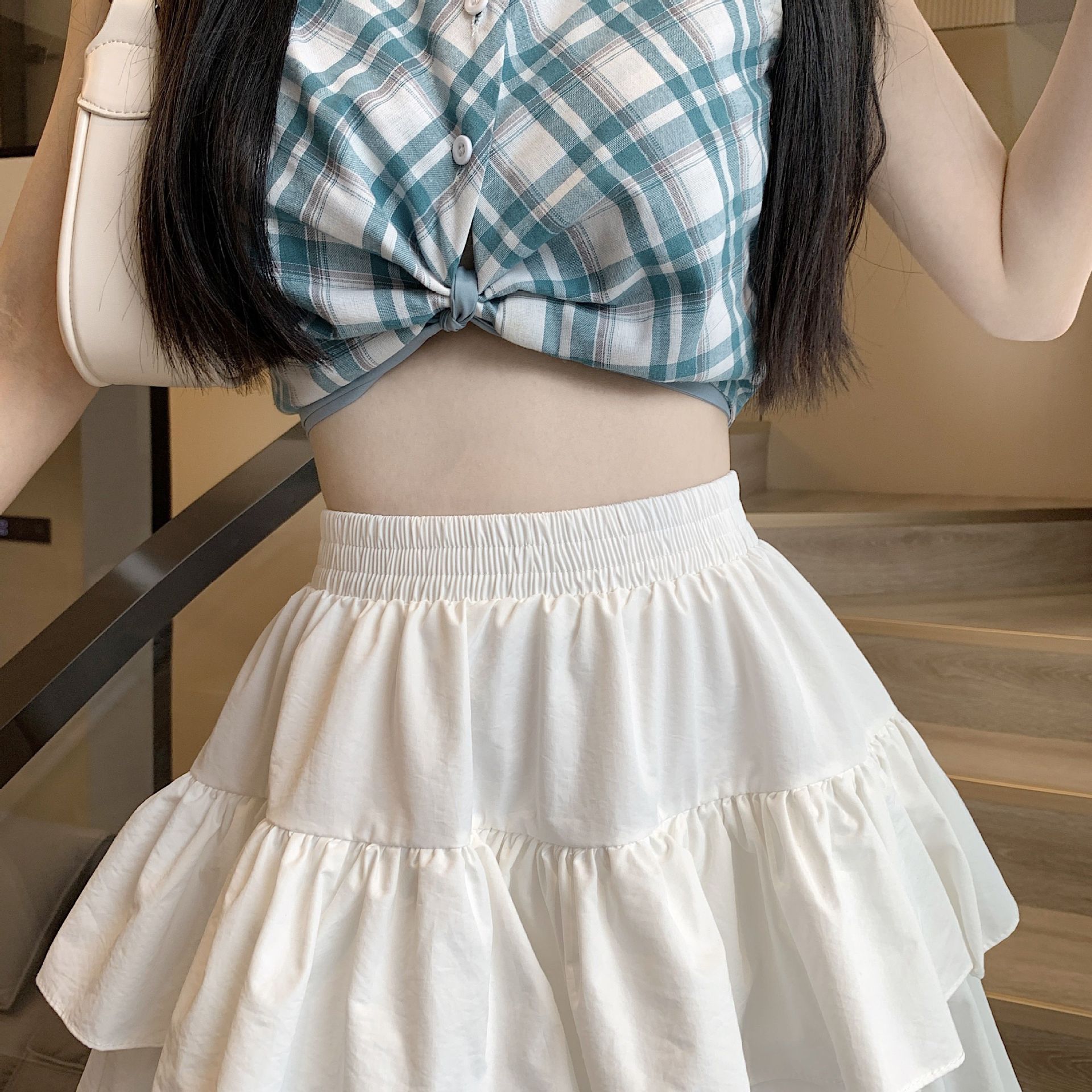 흰색 푹신한 케이크 스커트 여성의 봄과 여름 새로운 높은 허리 슬리밍 스파이스 소녀 작은 주름진 A 자형 우산 스커트 도매스토어 가기