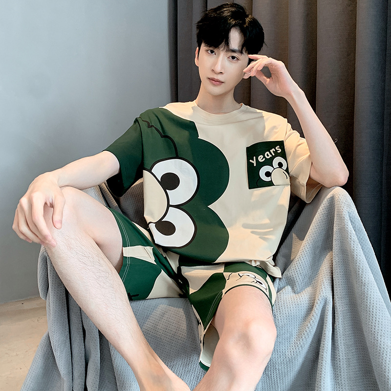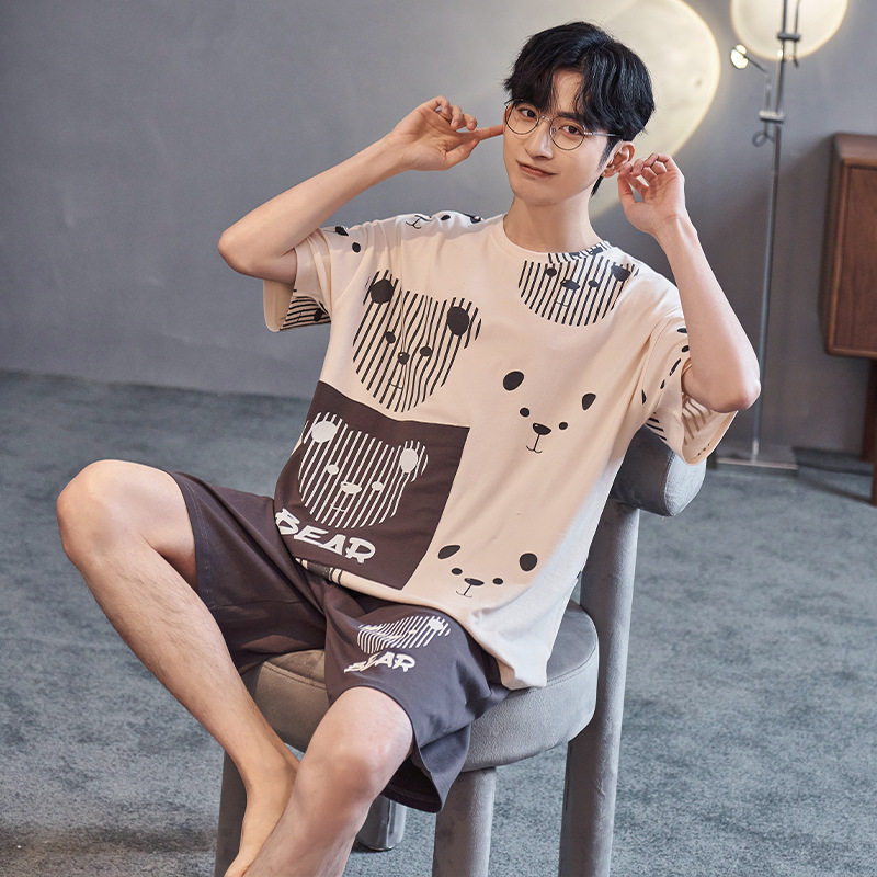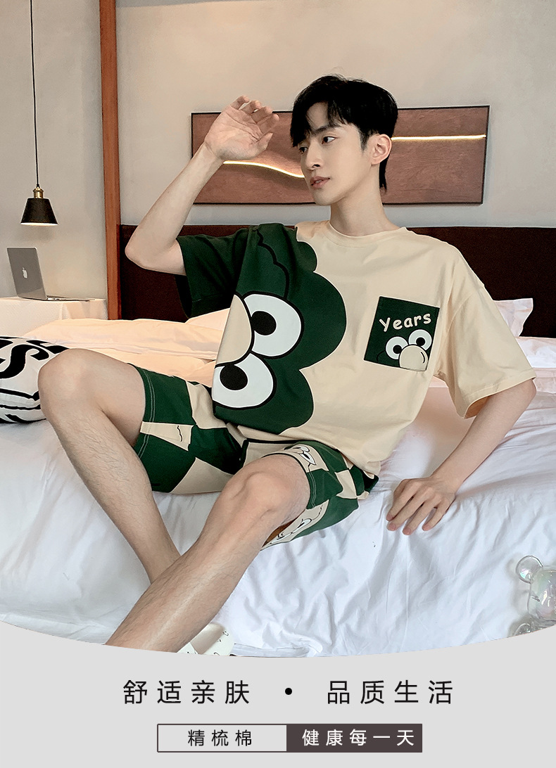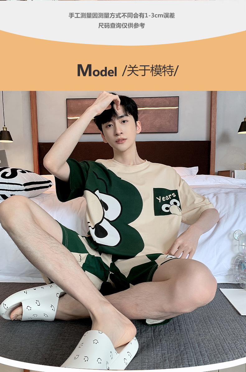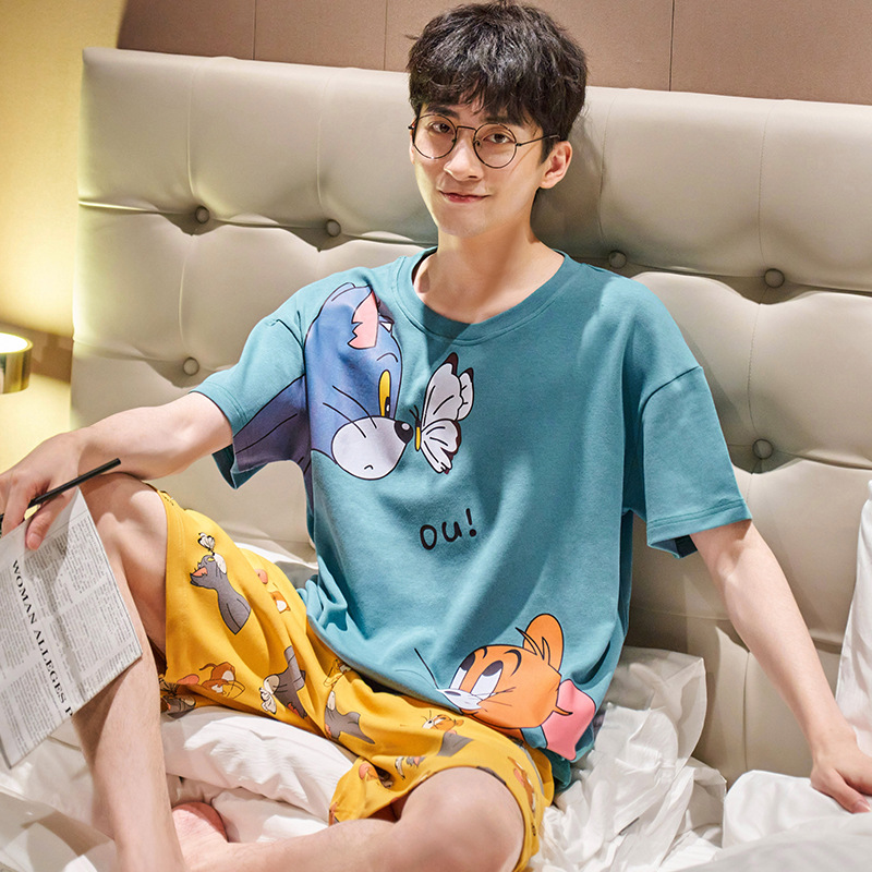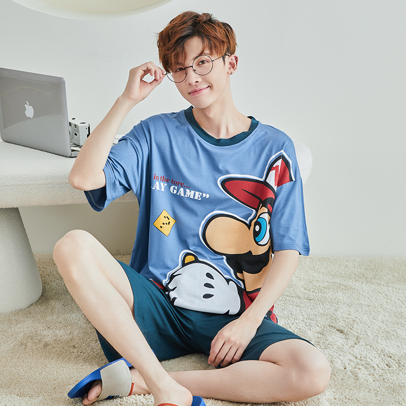 잠옷 남자 여름 얇은 순면 반팔 플러스 사이즈 십대 만화 겉옷 학생 홈 세트스토어 가기