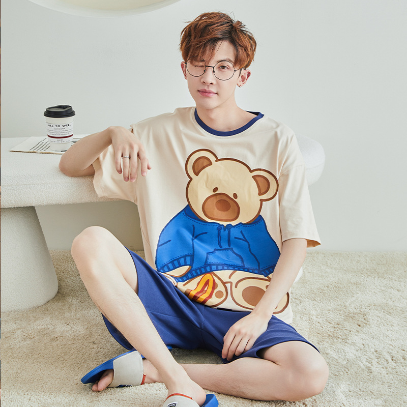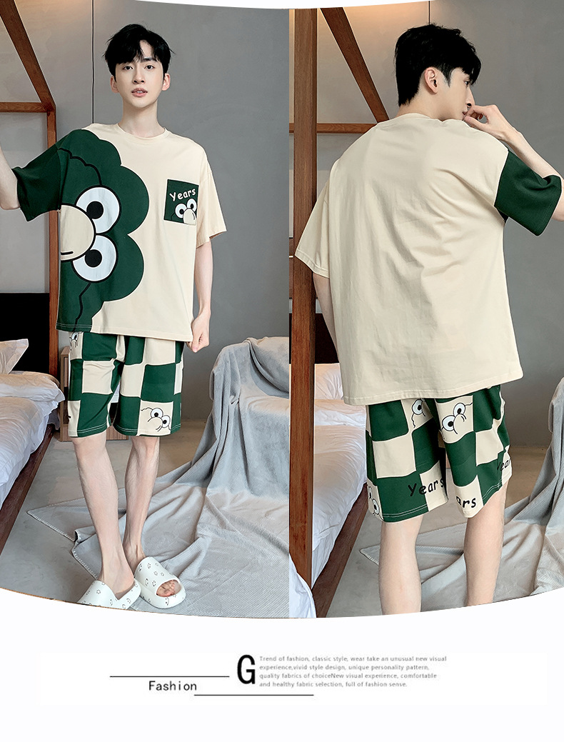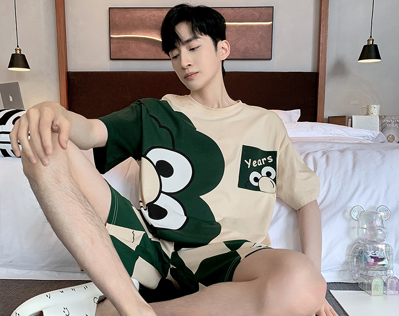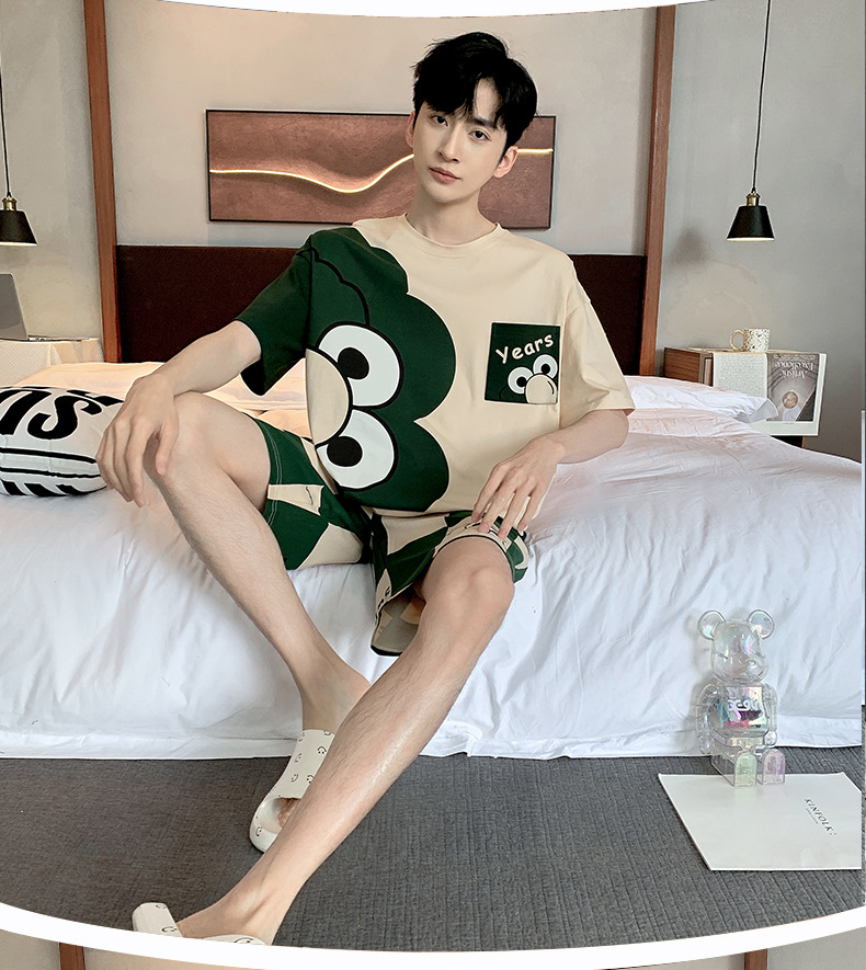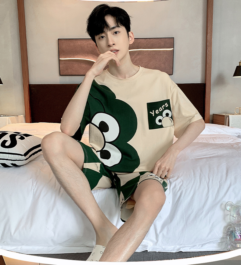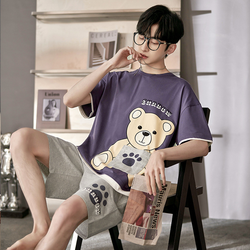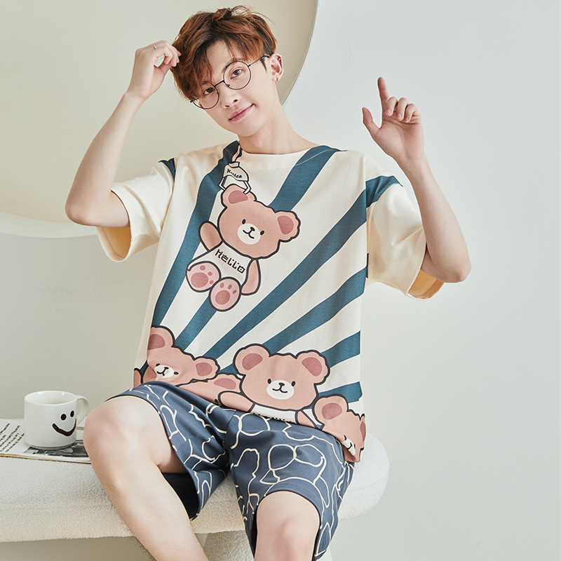 잠옷 남자 여름 얇은 순면 반팔 플러스 사이즈 십대 만화 겉옷 학생 홈 세트스토어 가기