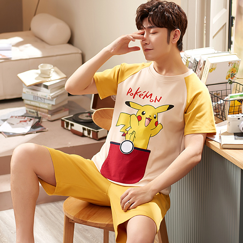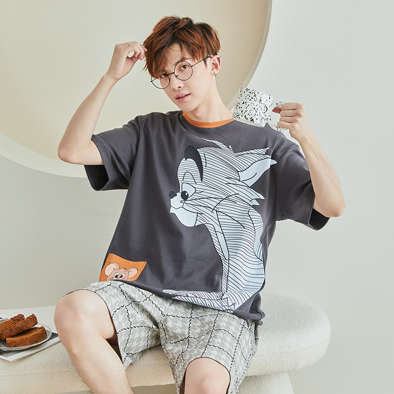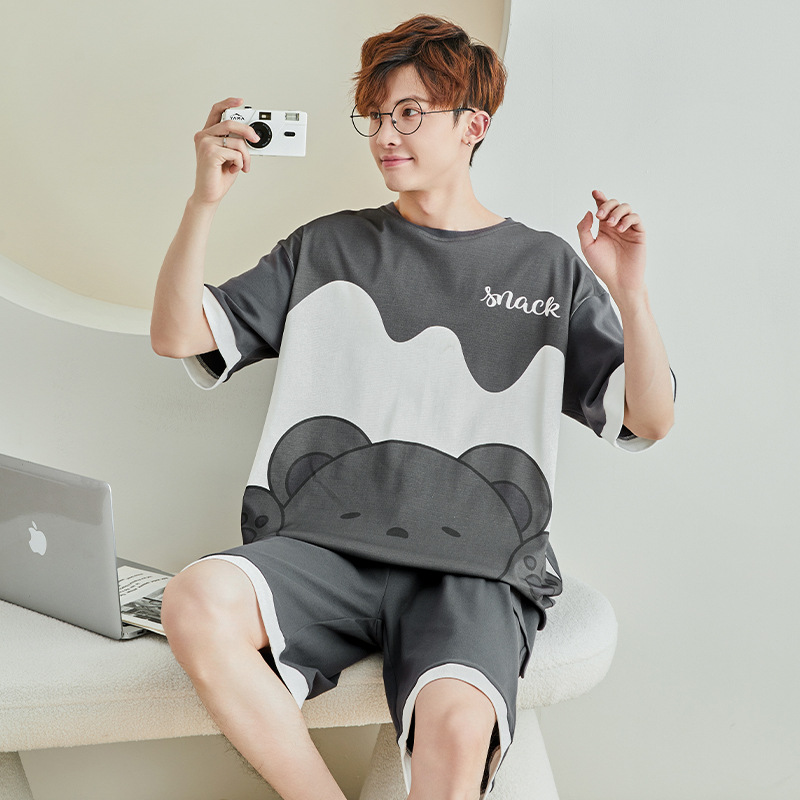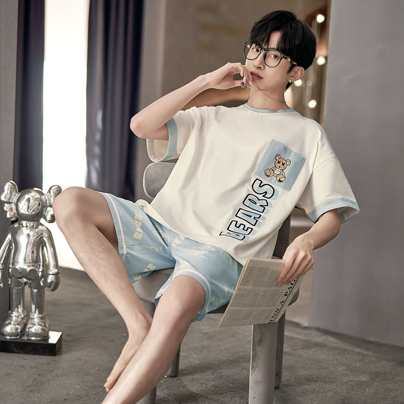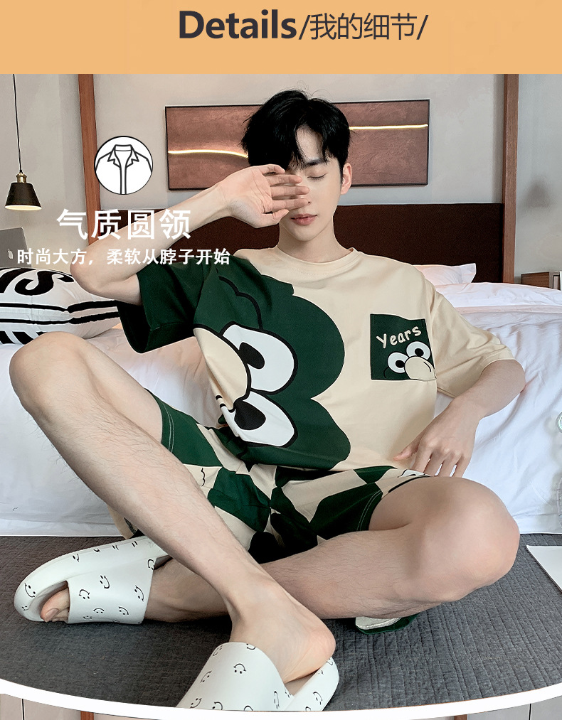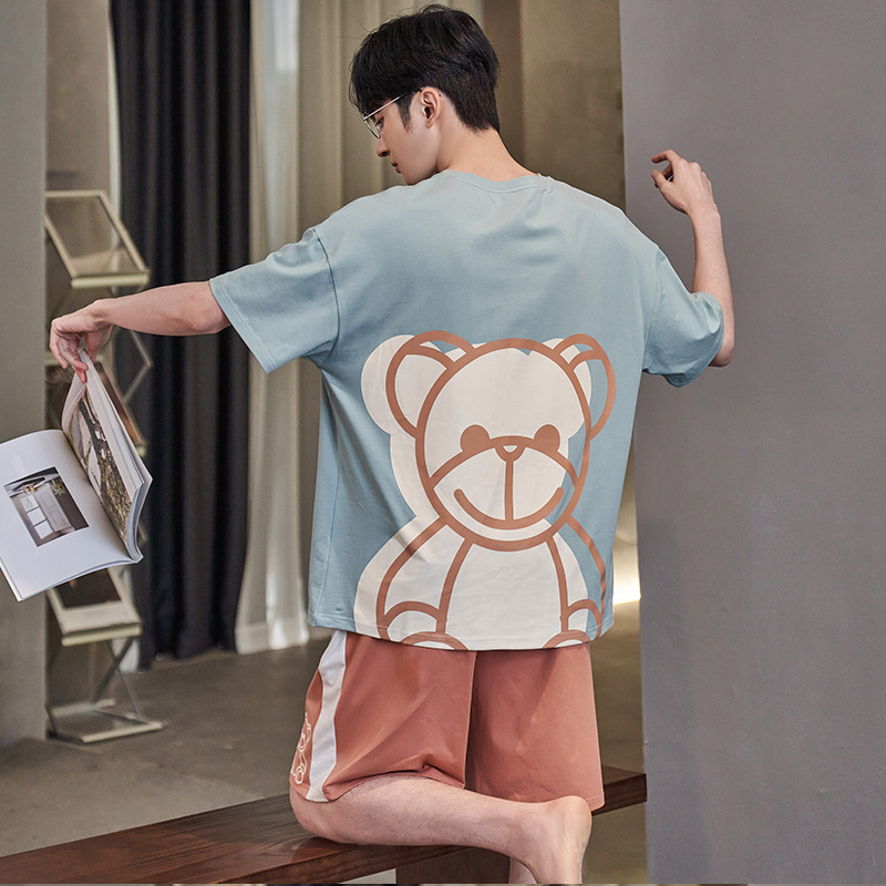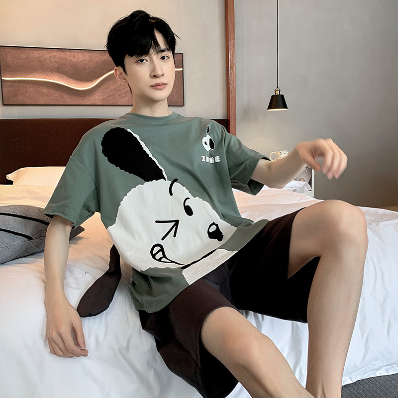 잠옷 남자 여름 얇은 순면 반팔 플러스 사이즈 십대 만화 겉옷 학생 홈 세트스토어 가기