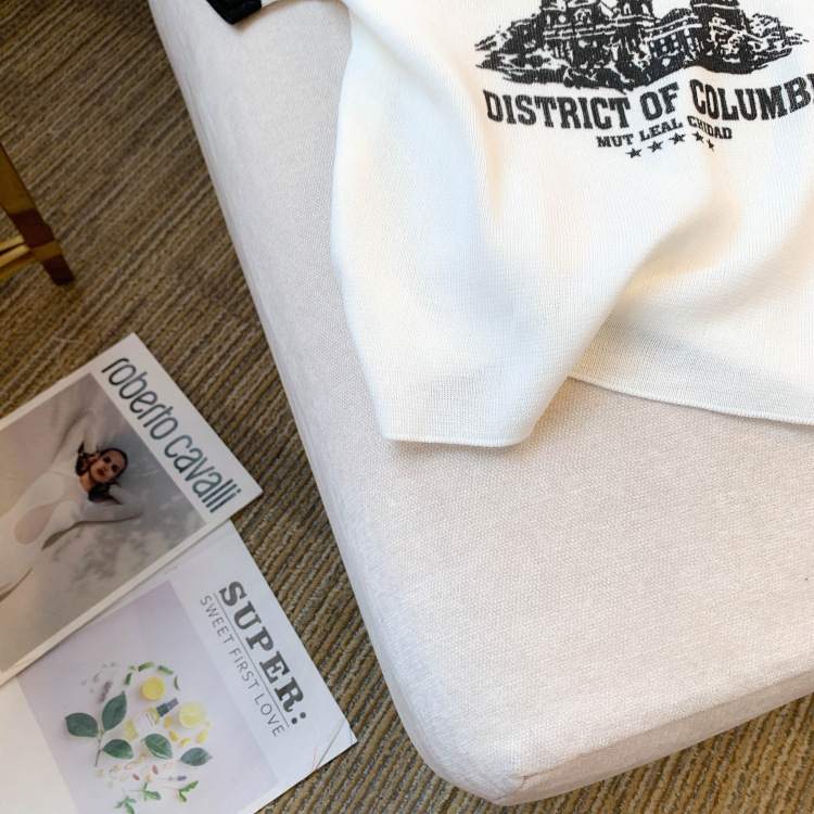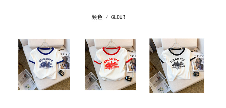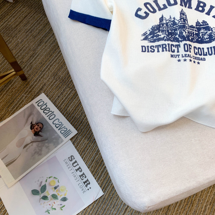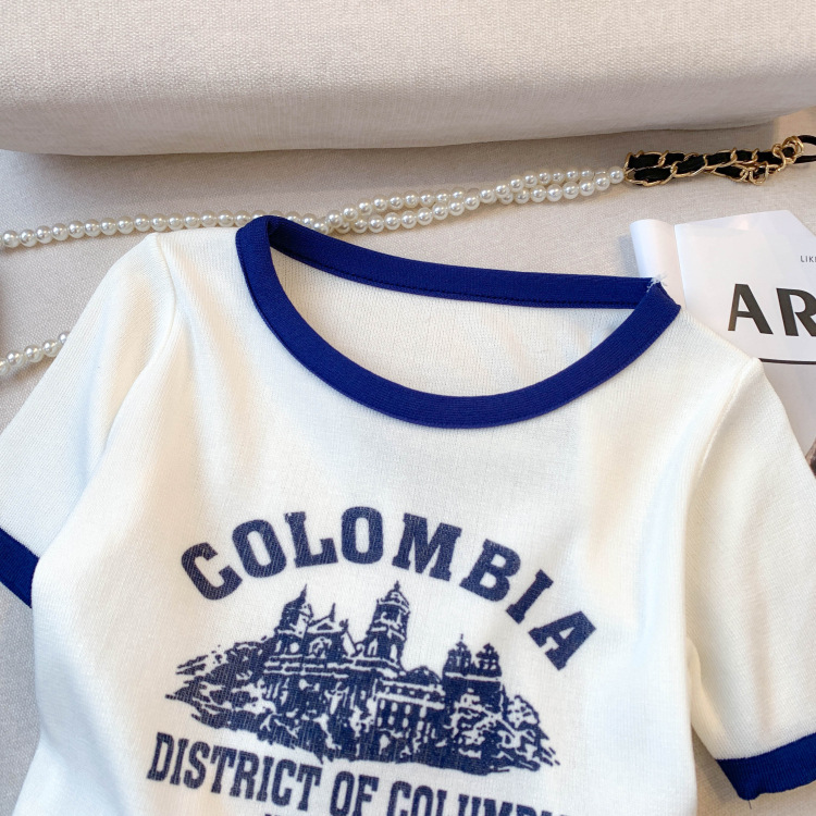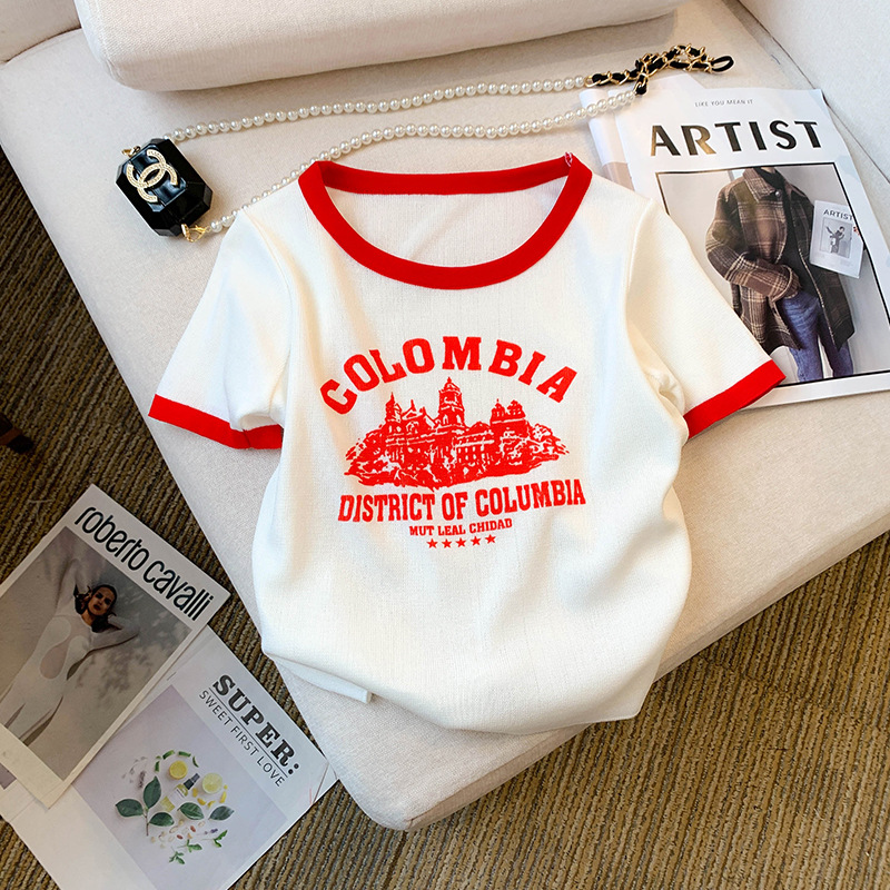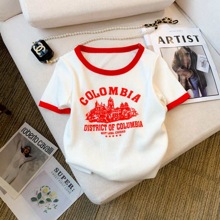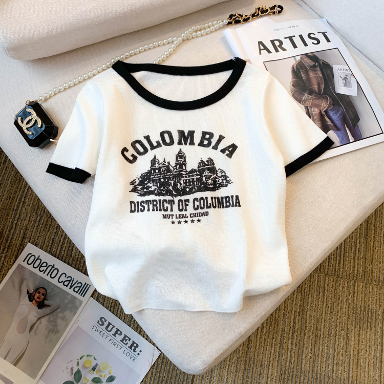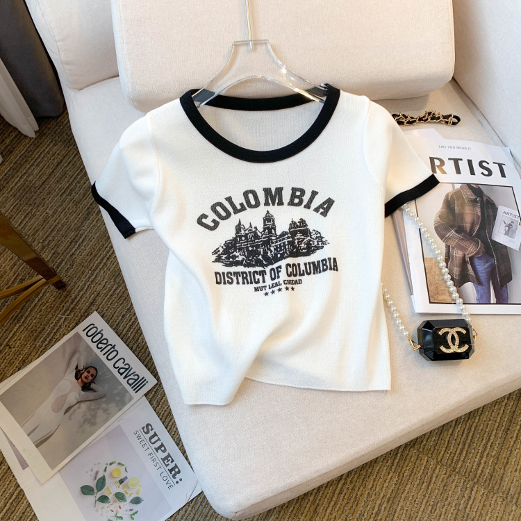 여름 유행 하이 스트리트 게으른 스타일 중장 스티칭 대조 컬러 탑 여성용 퓨어 코튼 반팔 티셔츠 여성용 한국식 니트스토어 가기