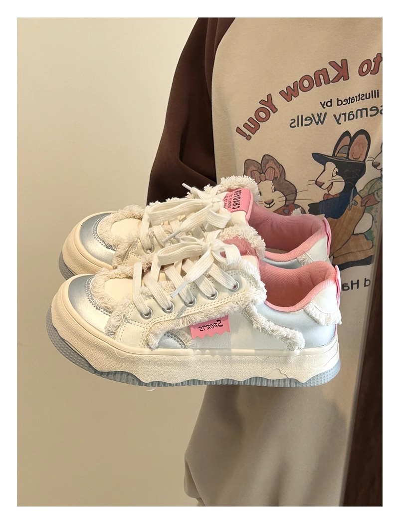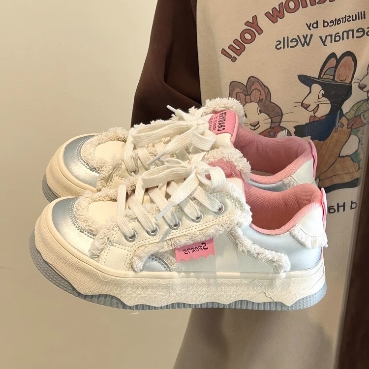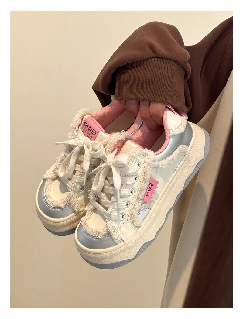 2025년 신상 여성용 두꺼운 밑창 흰색 운동화, 봄 가을 학생용 다용도 시크 슈즈, 캔버스 캐주얼 경량 스니커즈스토어 가기