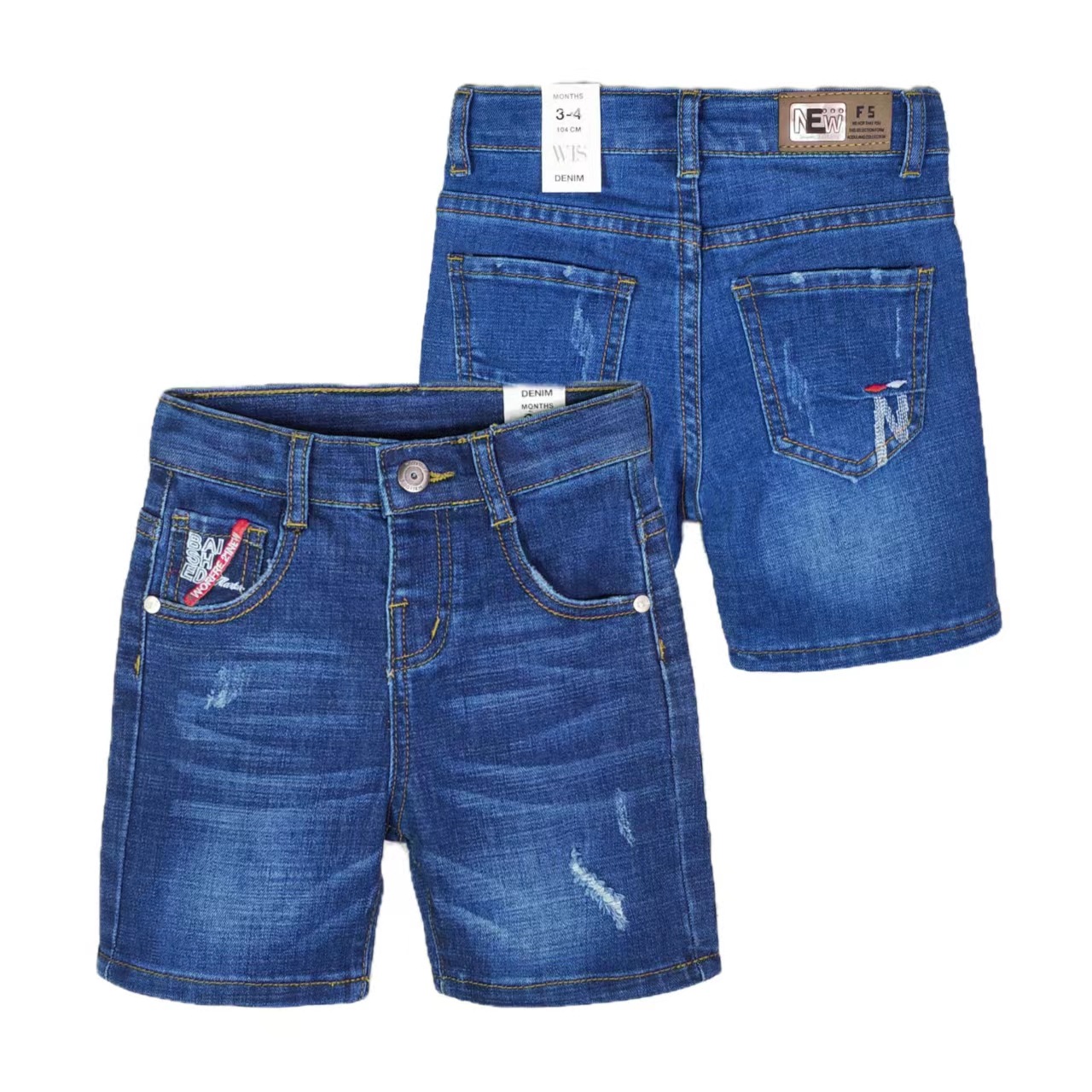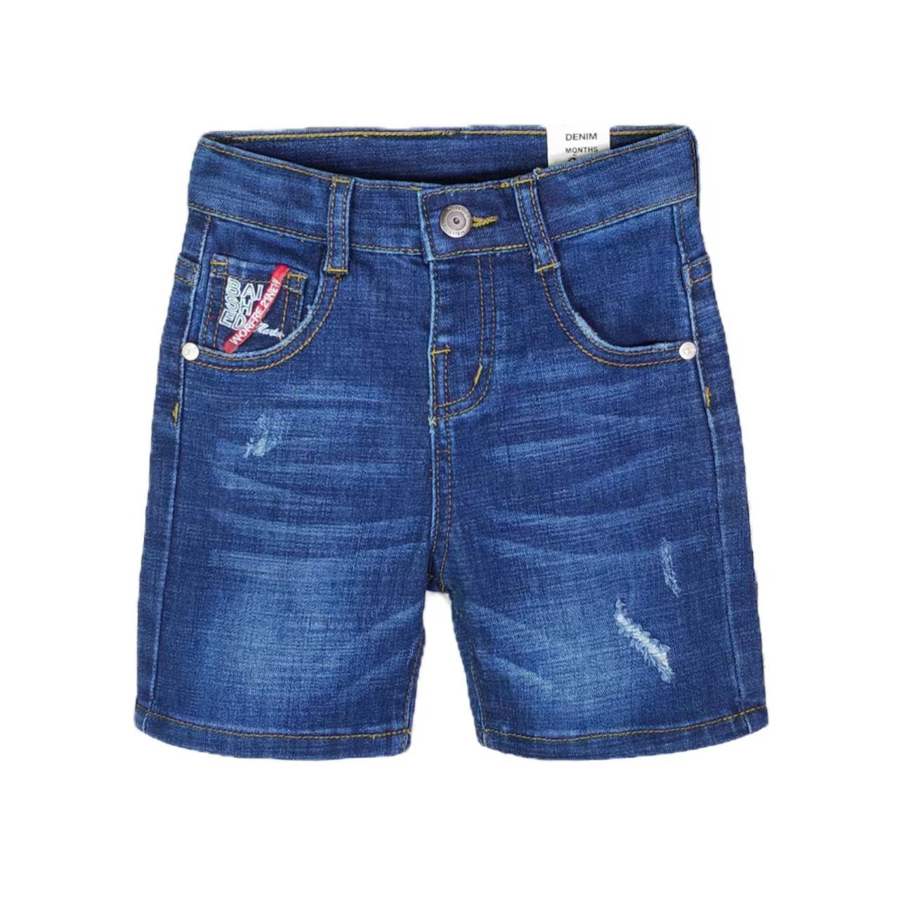 2024 년 봄과 여름 새로운 도착 소년의 미드 빅 키즈 다크 블루 데님 높은 허리 반바지 편안한 피부 친화적 인 느슨한 통기성 하이 스트리트 반바지스토어 가기